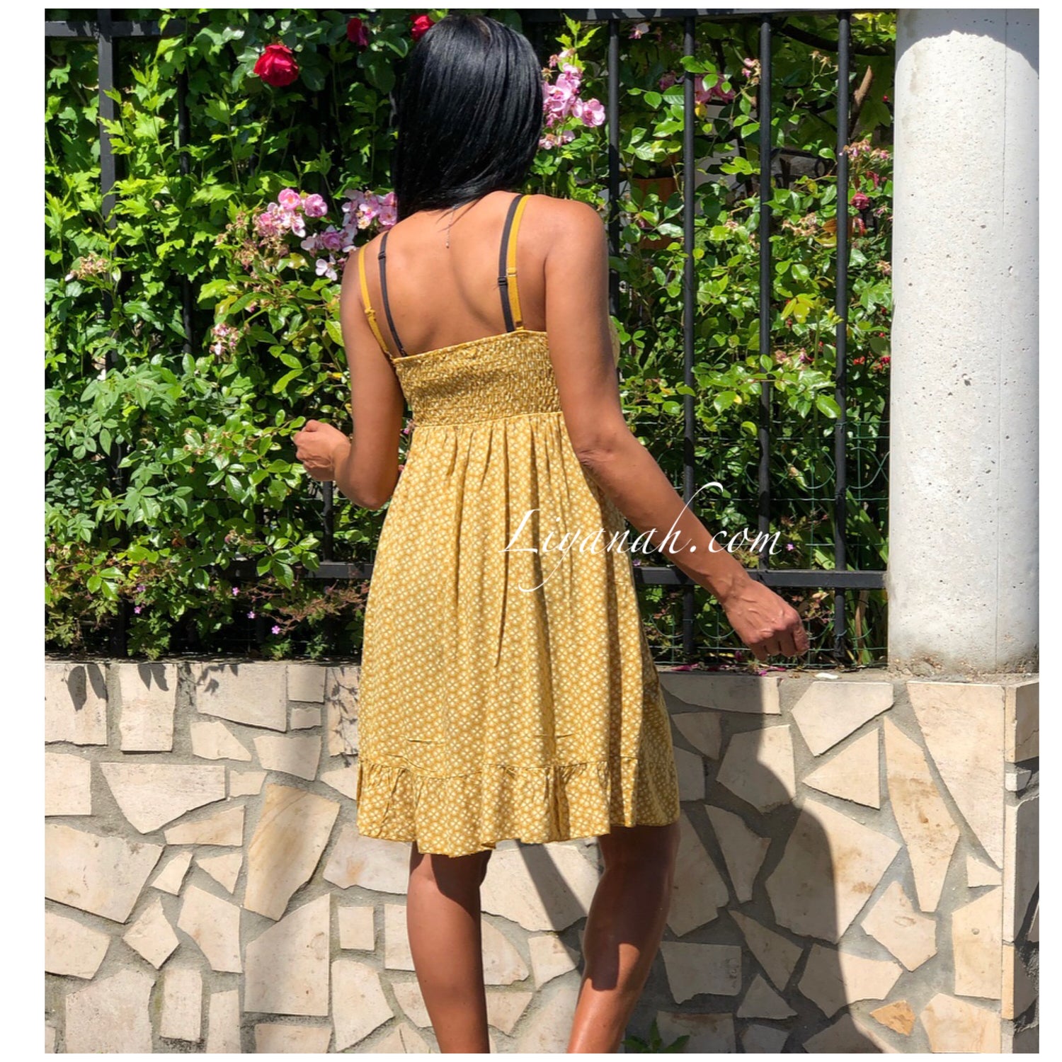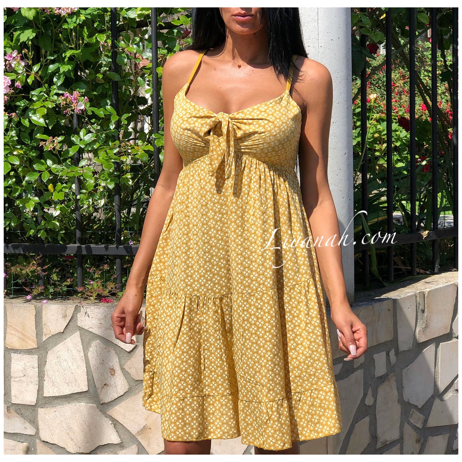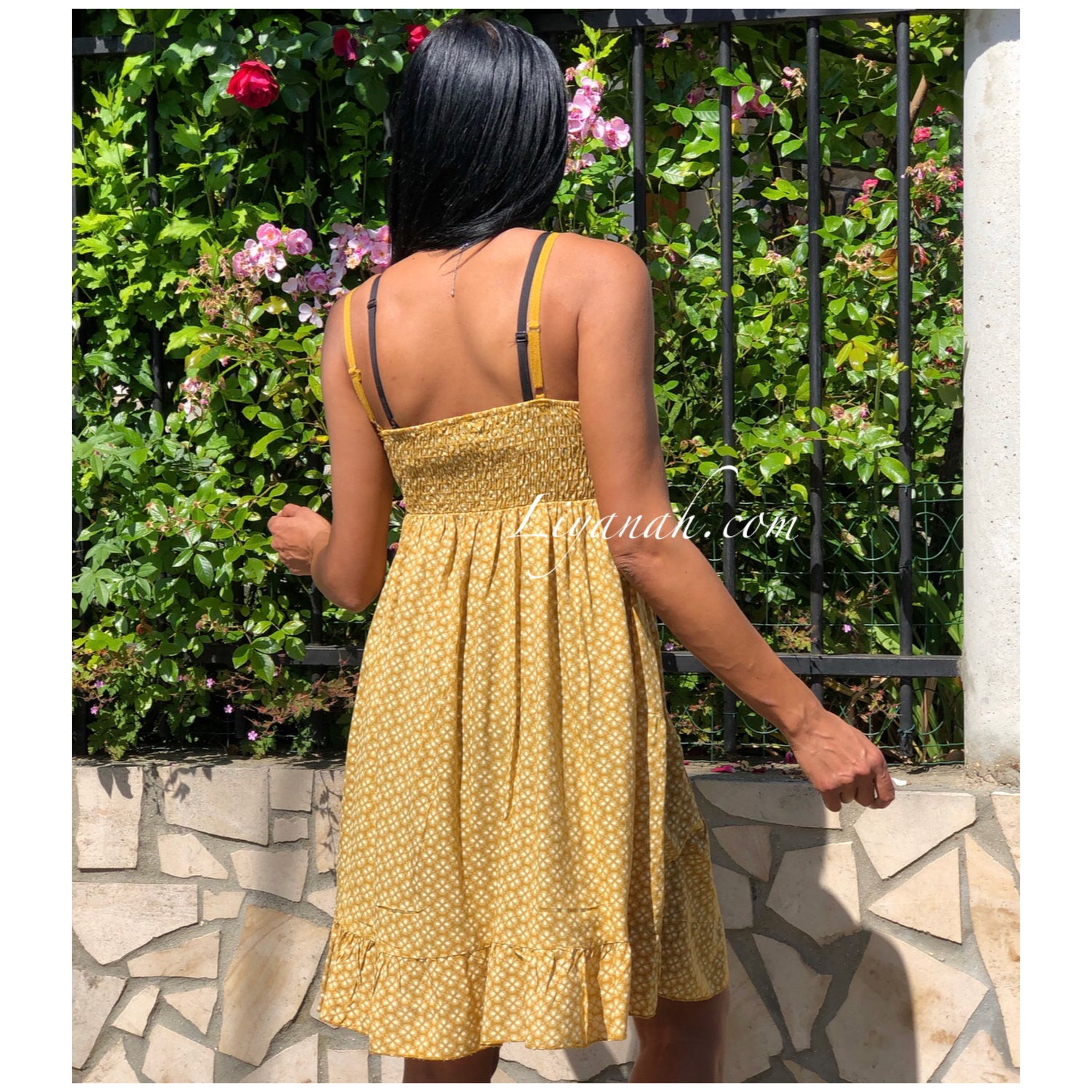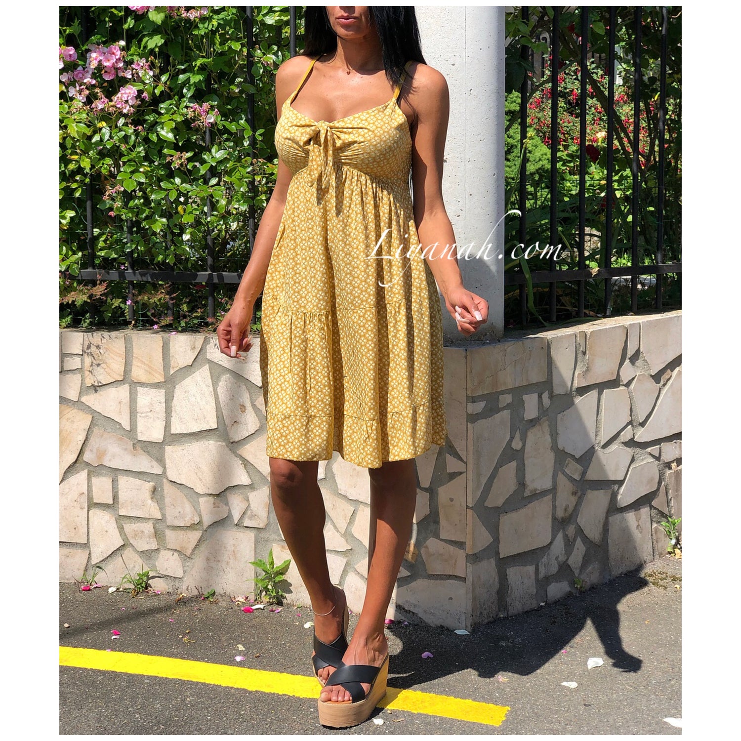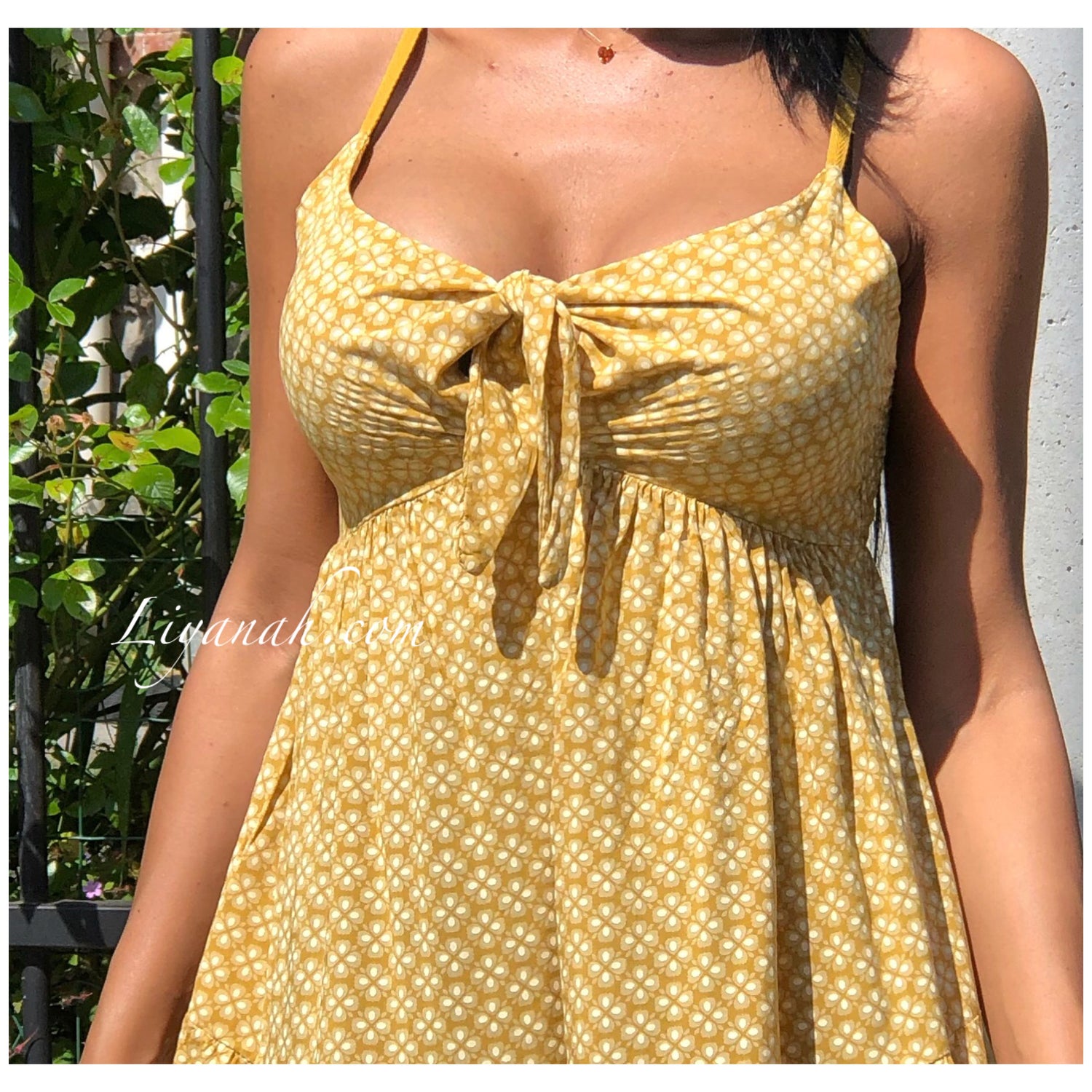 ROBE Courte à enfiler !!! Robe à Imprimée fleurie Évasée, fluide et décontractée, bretelles réglables, décolleté et noeud à nouer à la poitrine - Taille Unique pour une taille 34 au 38 - 100% Viscose - Matière légère, Fluide et légèrement transparente - AGRÉABLE À PORTER