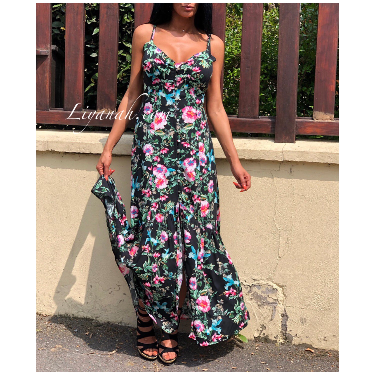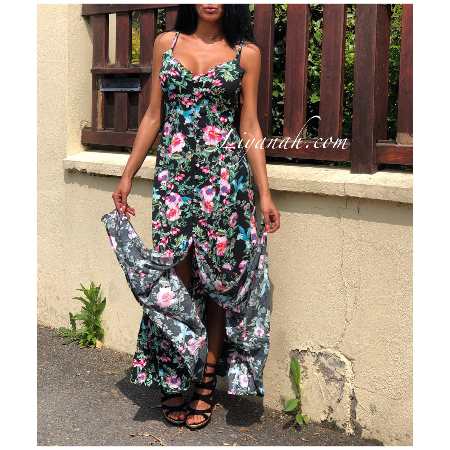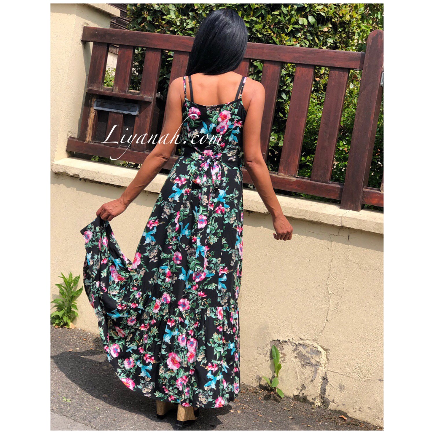 Robe Longue Modèle FYSALA - Robe très longue avec un Imprimé floral sur l’ensemble de la Robe - Fermeture boutons à l’avant et bretelles réglables - noeud à nouer dans le dos, échancrée à l’avant - 100% POLYESTER - Taille S au XL (Notre modèle porte la taille S et mesure 1m70)