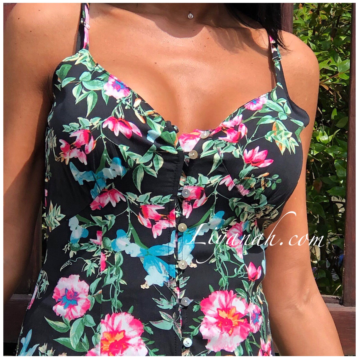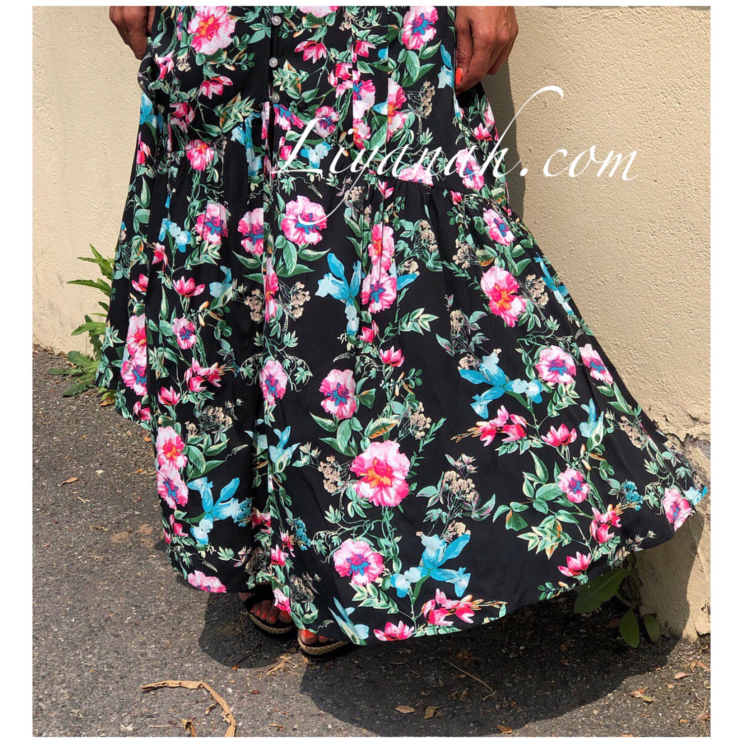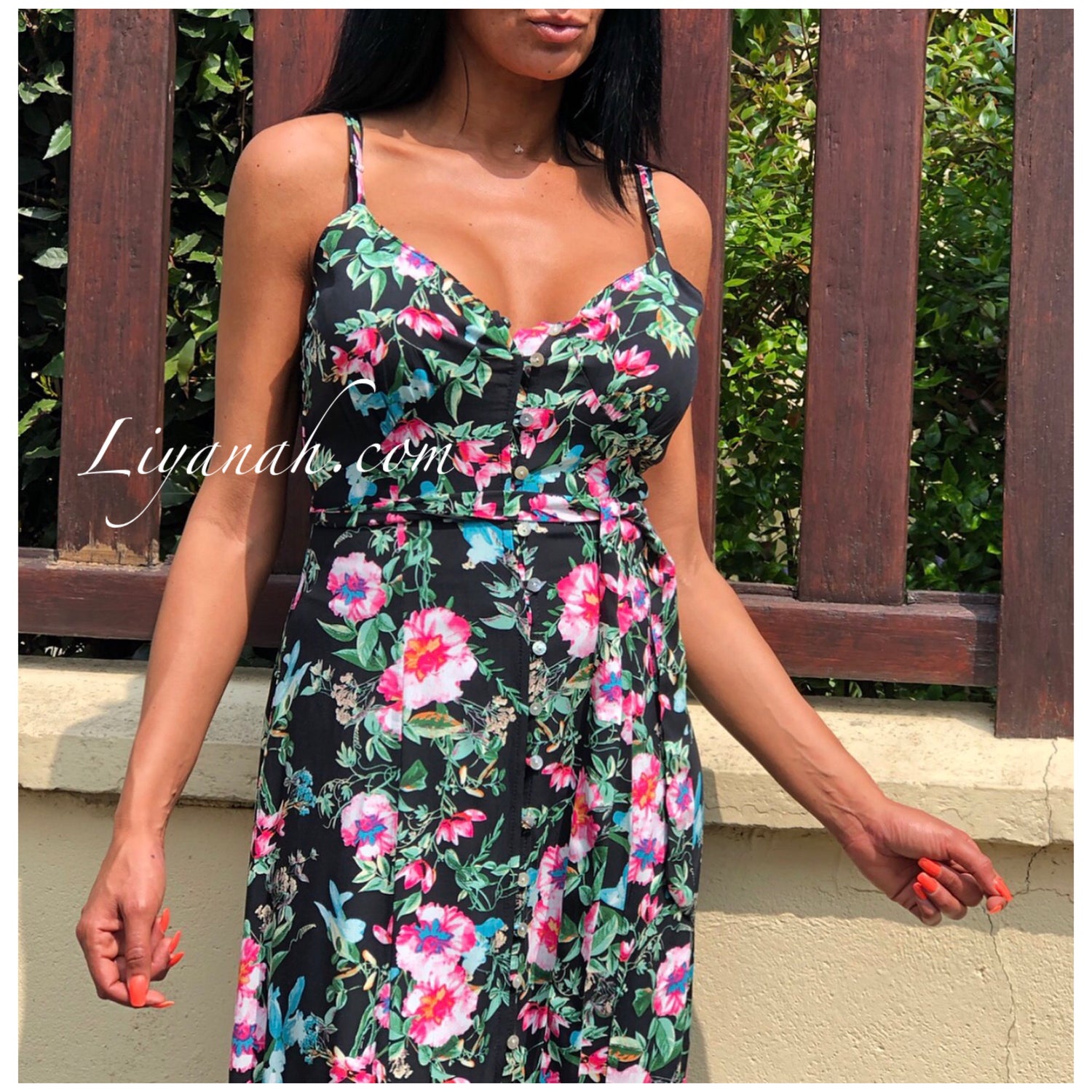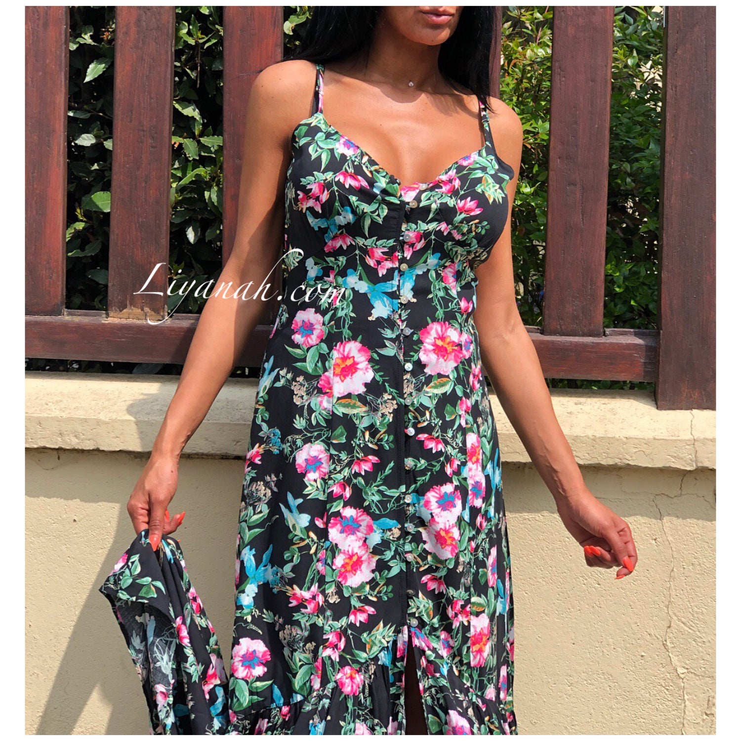 Robe Longue Modèle FYSALA - Robe très longue avec un Imprimé floral sur l’ensemble de la Robe - Fermeture boutons à l’avant et bretelles réglables - noeud à nouer dans le dos, échancrée à l’avant - 100% POLYESTER - Taille S au XL (Notre modèle porte la taille S et mesure 1m70)