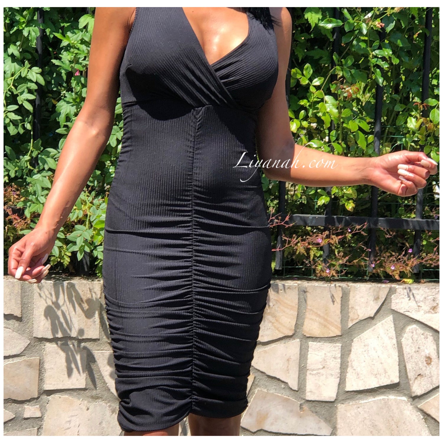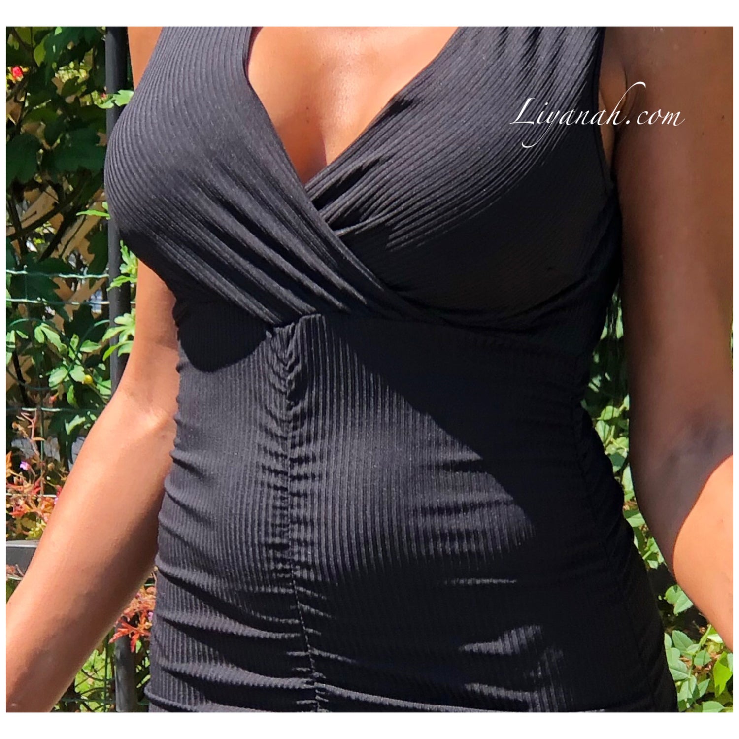 Robe sans manche près du corps à enfiler, plissée sur le bas et décolleté, coupe près du corps, matière douce et agréable à porter - 95% Viscose 5% Elasthanne - Taille Unique du 34 au 38