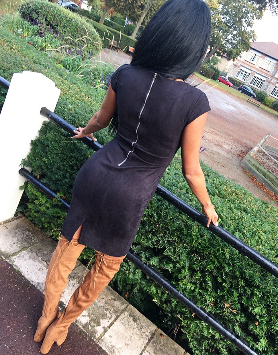 Robe Suédine ANIYA 💋 NOIR 90% Polyester 10% Spandex Fermeture Zip au dos couleur argent Longueur 95 cm Taille S / M et L Couleurs disponibles également en Gris et Beige