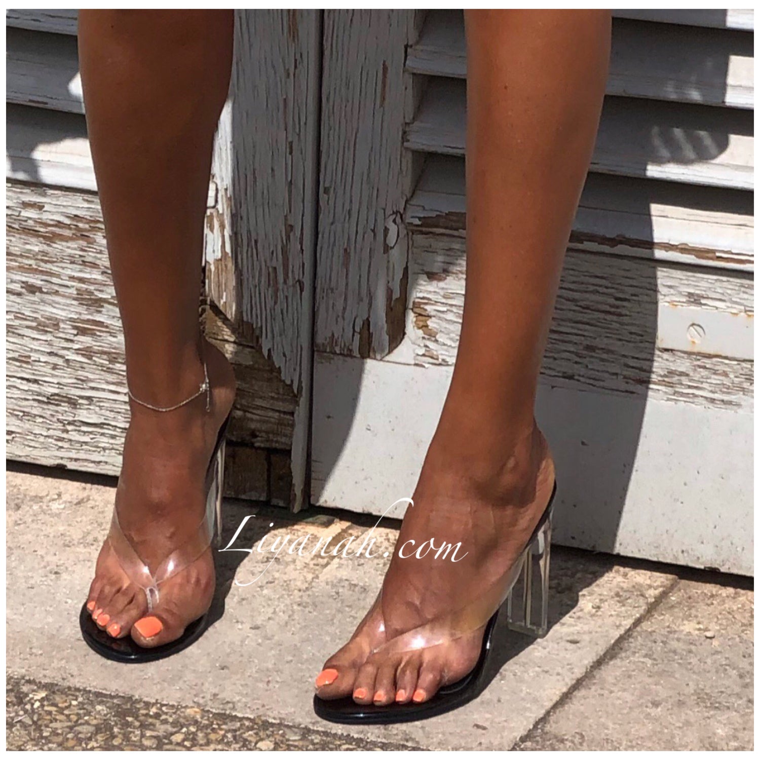 Sandales à talons Tong Modèle KERA - Des sandales à talons qui combinent l’élégance et la décontraction. Un Talon bloc transparent et sur le dessus forme tong transparent. Elles se portent selon vos envies !!! En Jean ou Robe ... De nuit Comme de jour - hauteur du talon ~ 11,5 cm Pointures du 36 au 41 (Pour des raisons d'hygiène, les sandales ne sont ni repris ni échangé.)