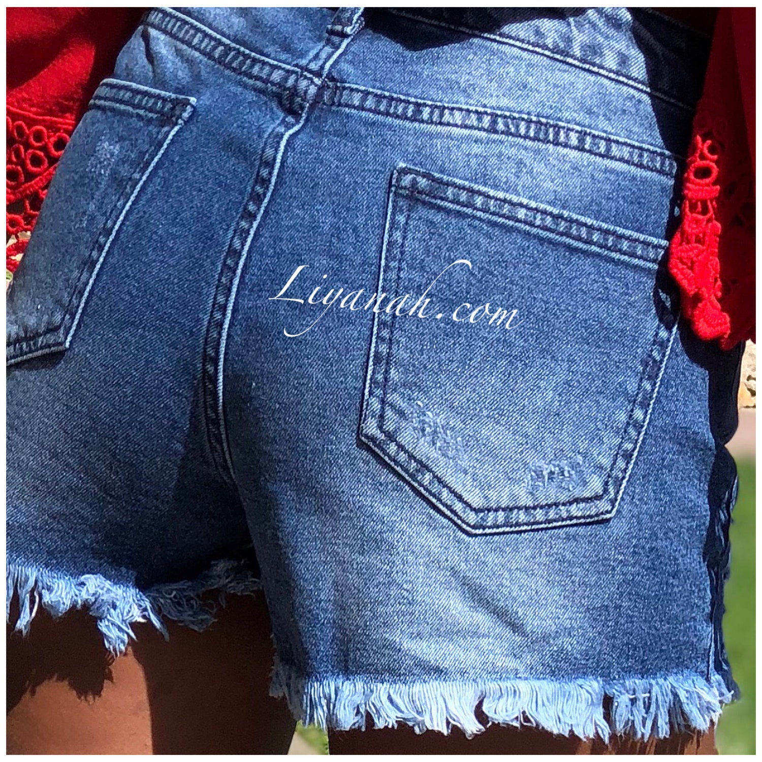 SHORT DARK BLUE JEAN Destroy Modèle LOUYAZA