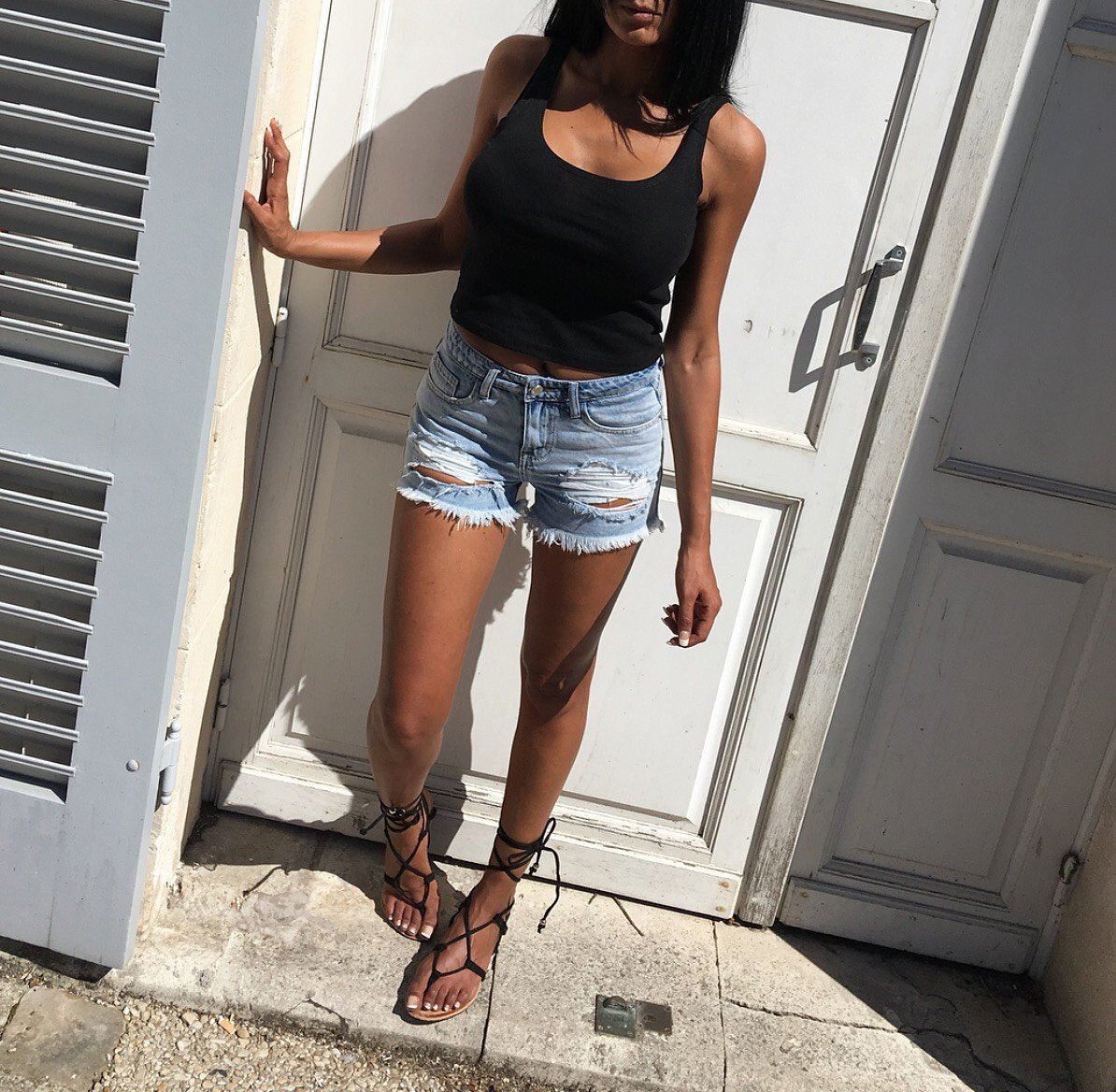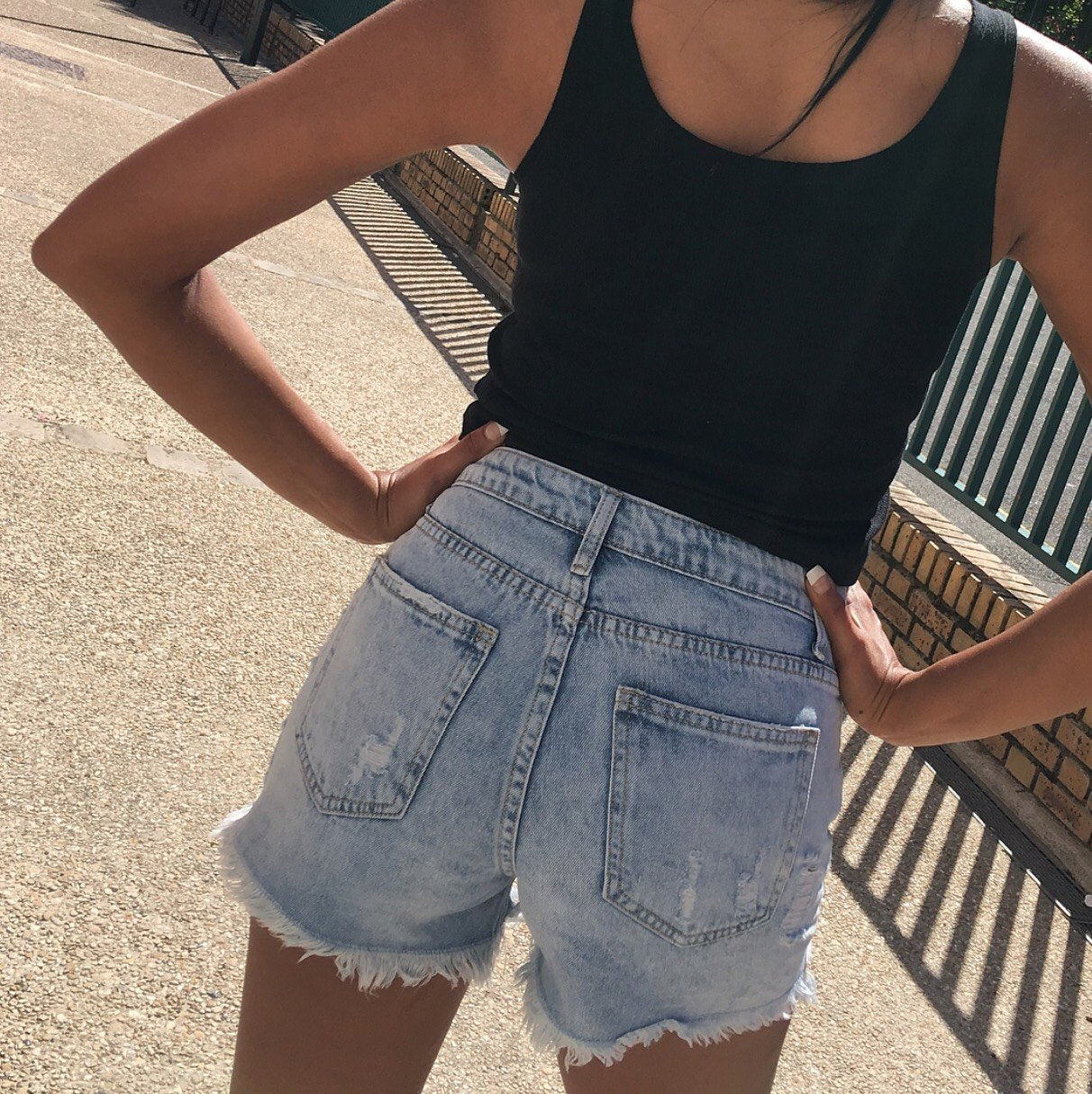 SHORT JEAN Destroy ASCHA Totalement en Kiff sur ce Short Taille Haute en jean destroy avec ses détails déchirures !!! Et ses poches légèrement apparentes !!! Taille haute, effet déchiré, poches apparentes, Short effet Boyfriend - 100% COTTON Fermeture avant par ZIP et bouton 4 poches Taille Équivalence ~ XS - 34 S - 36 M - 38 L - 40 XL -42