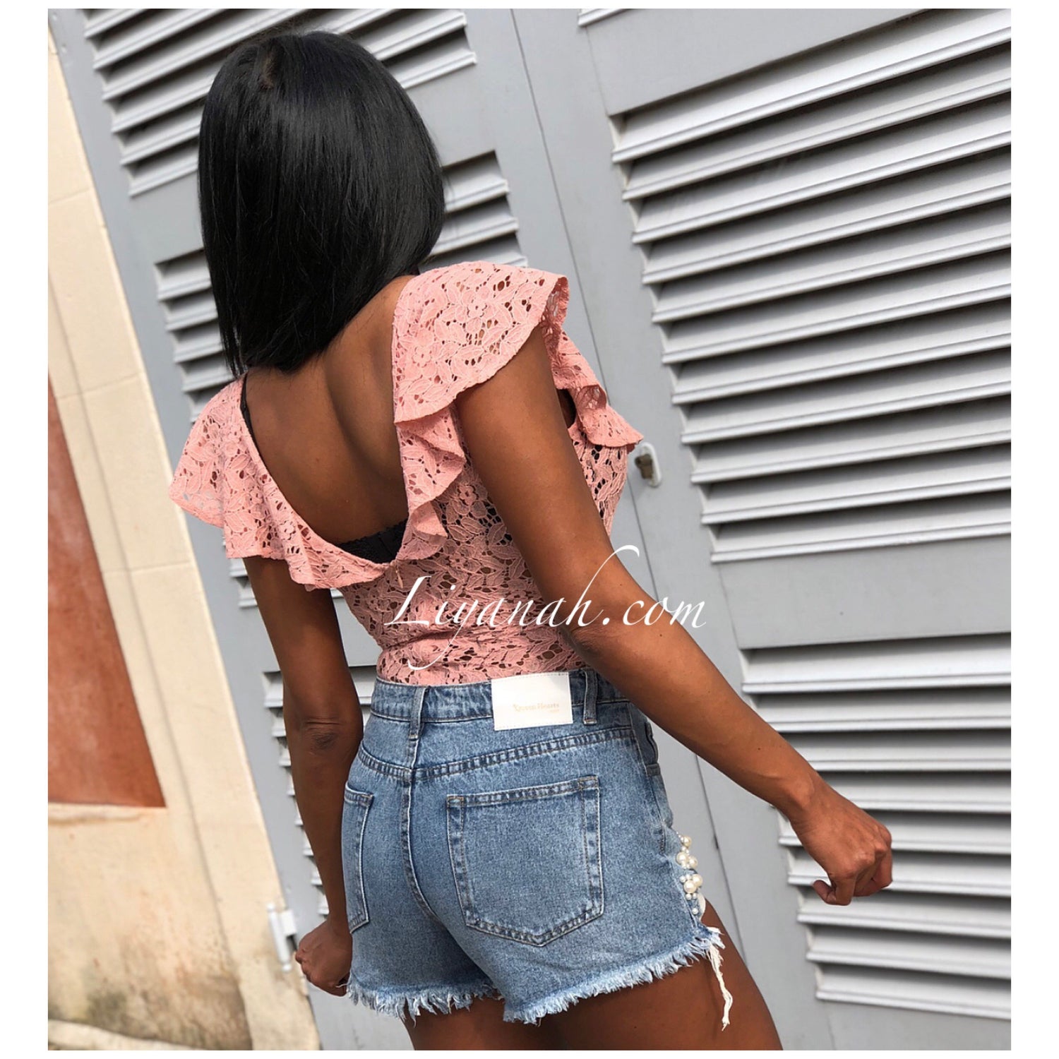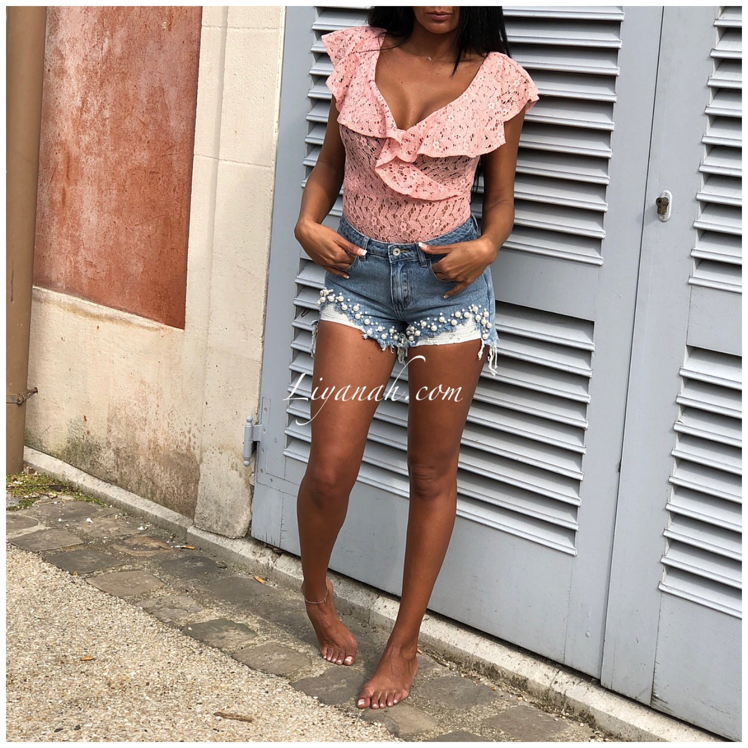 SHORT JEAN Destroy Perles Modèle JANYALA