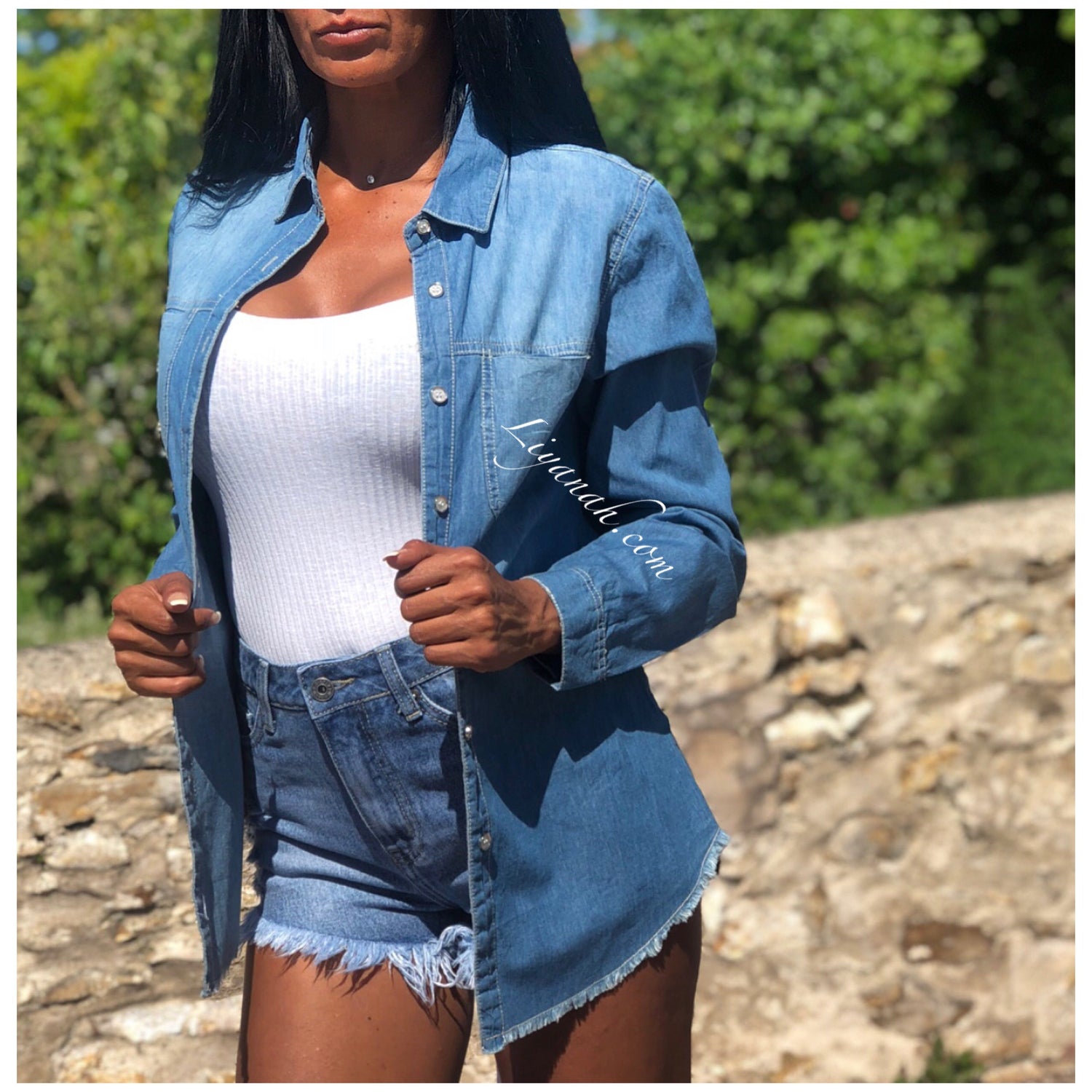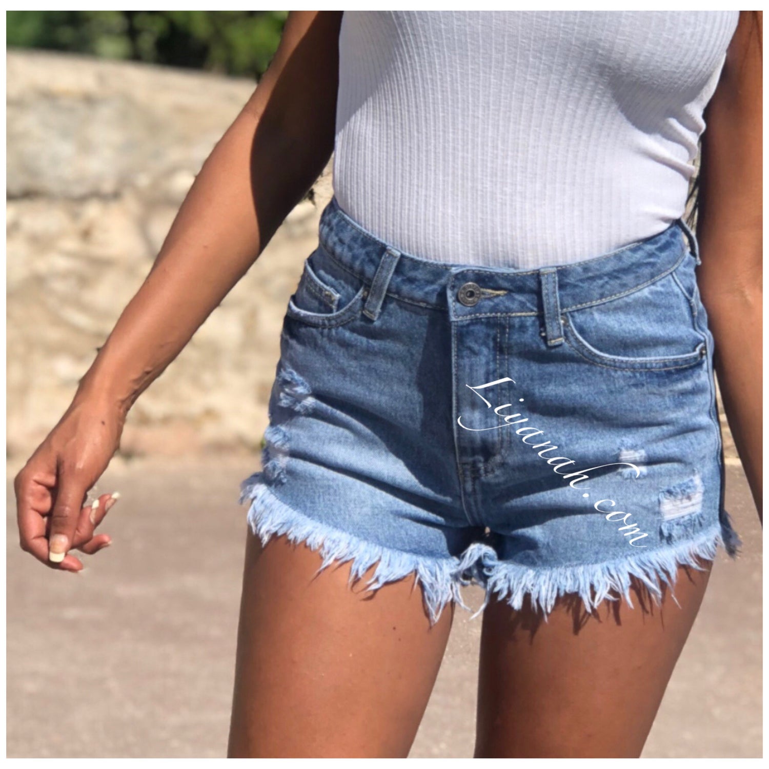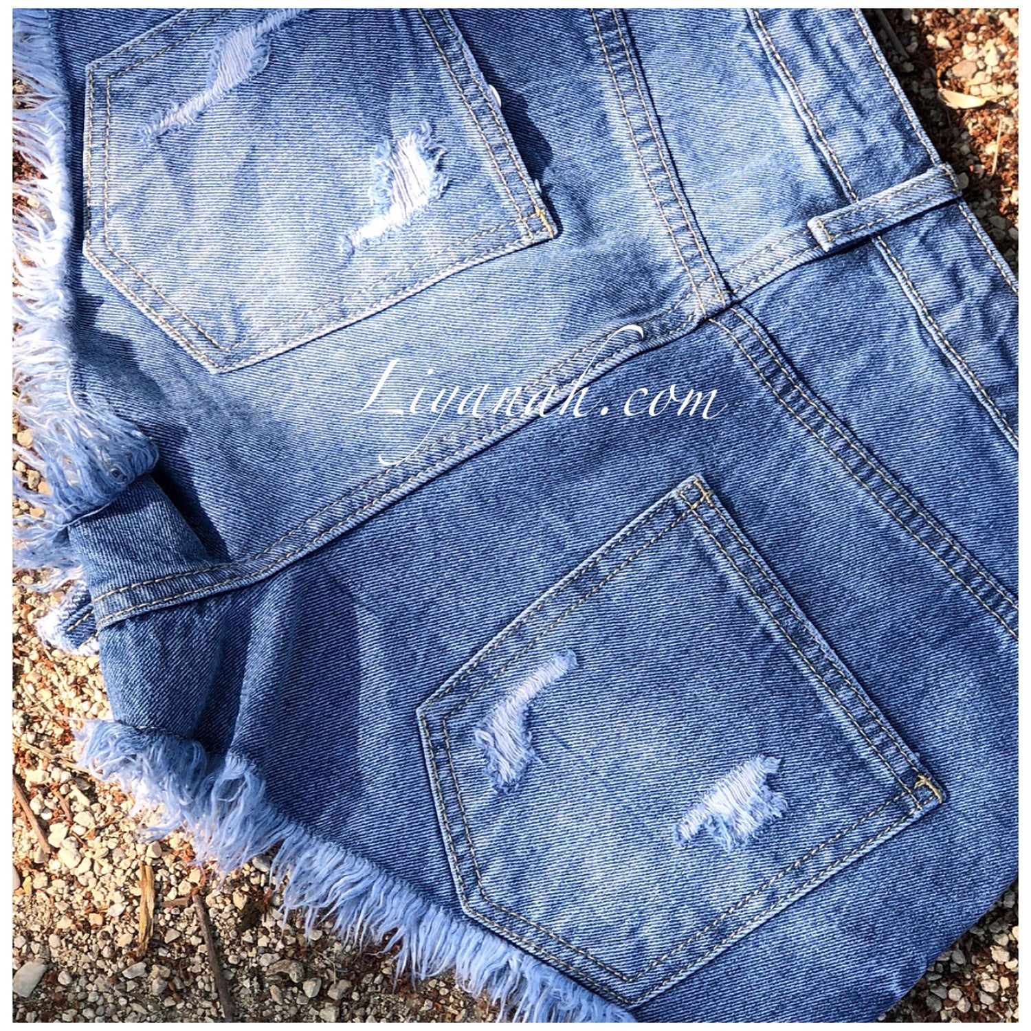 SHORT LIGHT BLUE JEAN Destroy Modèle LOUYENA