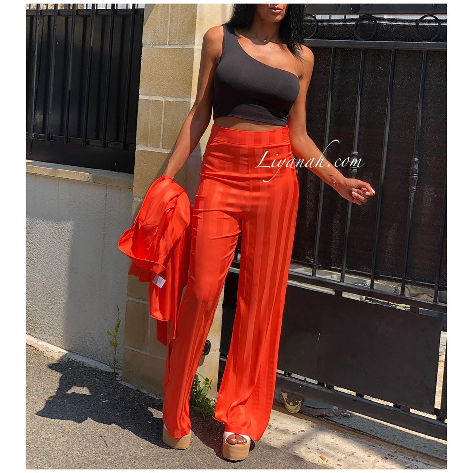 Tailleur Veste + Pantalon Modèle NAYARA ORANGE - Le modèle NAYARA, plus cool, plus décontracté, plus fluide mais tout aussi chic.