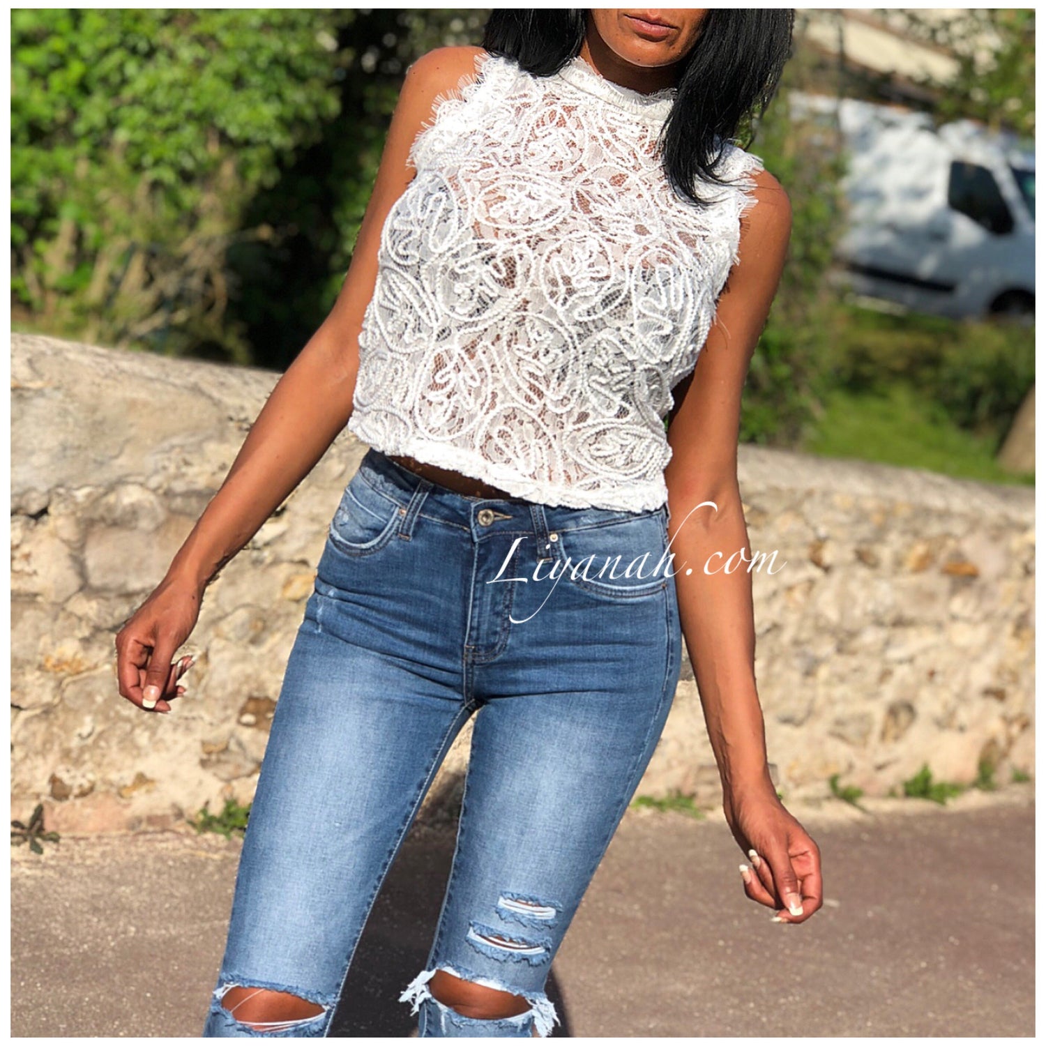 Top Dentelle Modèle LUNY BLANC ❤️ Craquez pour ce Top en Dentelle Transparent !!! Portez le avec un jean boyfriend ou skinny des talons pour un effet chic et décontracté à la fois !!!! Ou même avec un short ... Il rehaussera toutes vos tenues !!! Fermeture ZIP au dos - 100% Polyester (Taille SM à ML) Disponible en Noir ou Blanc