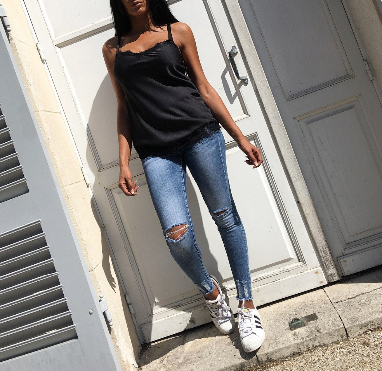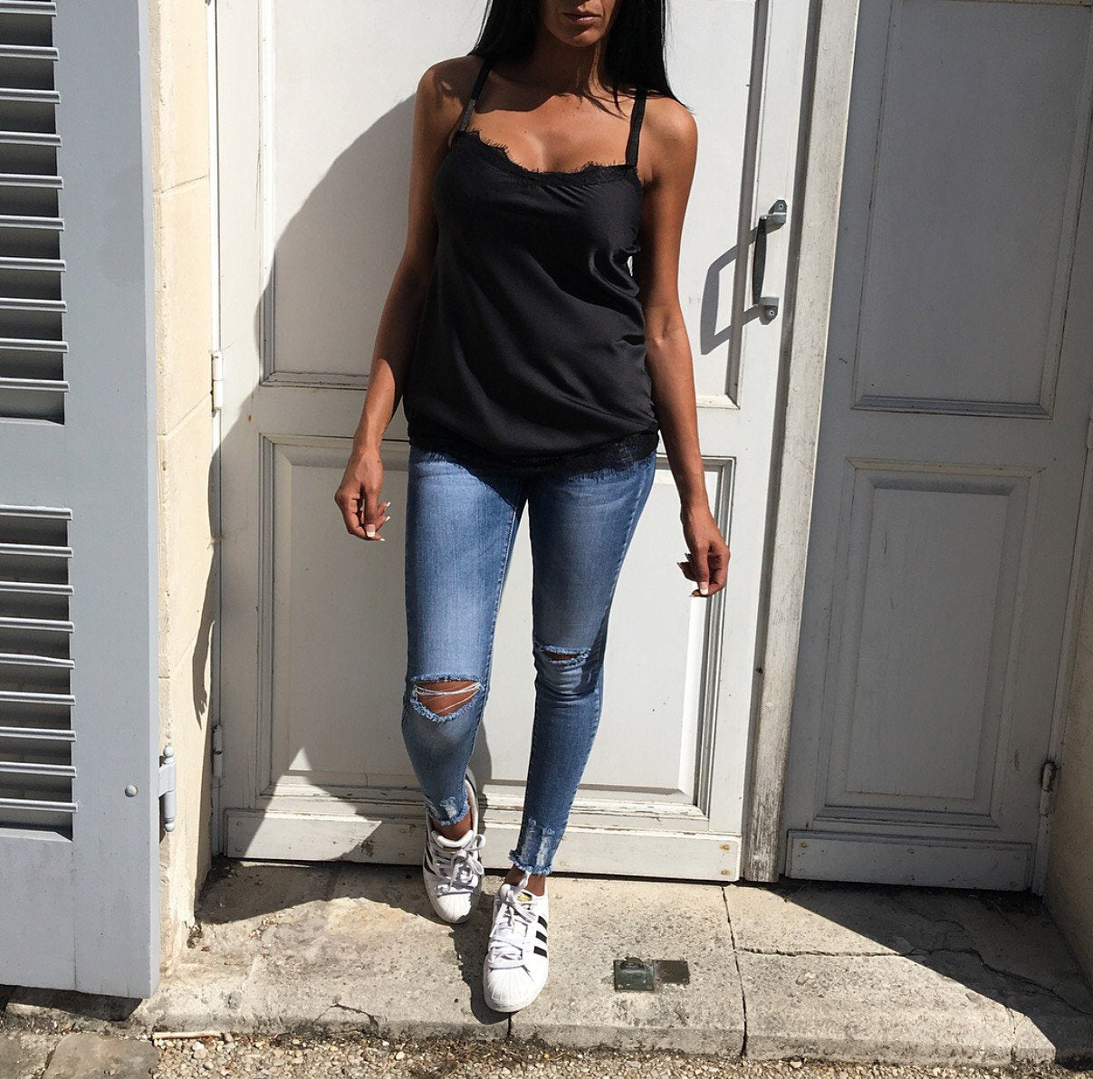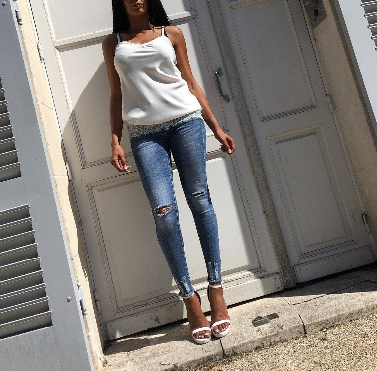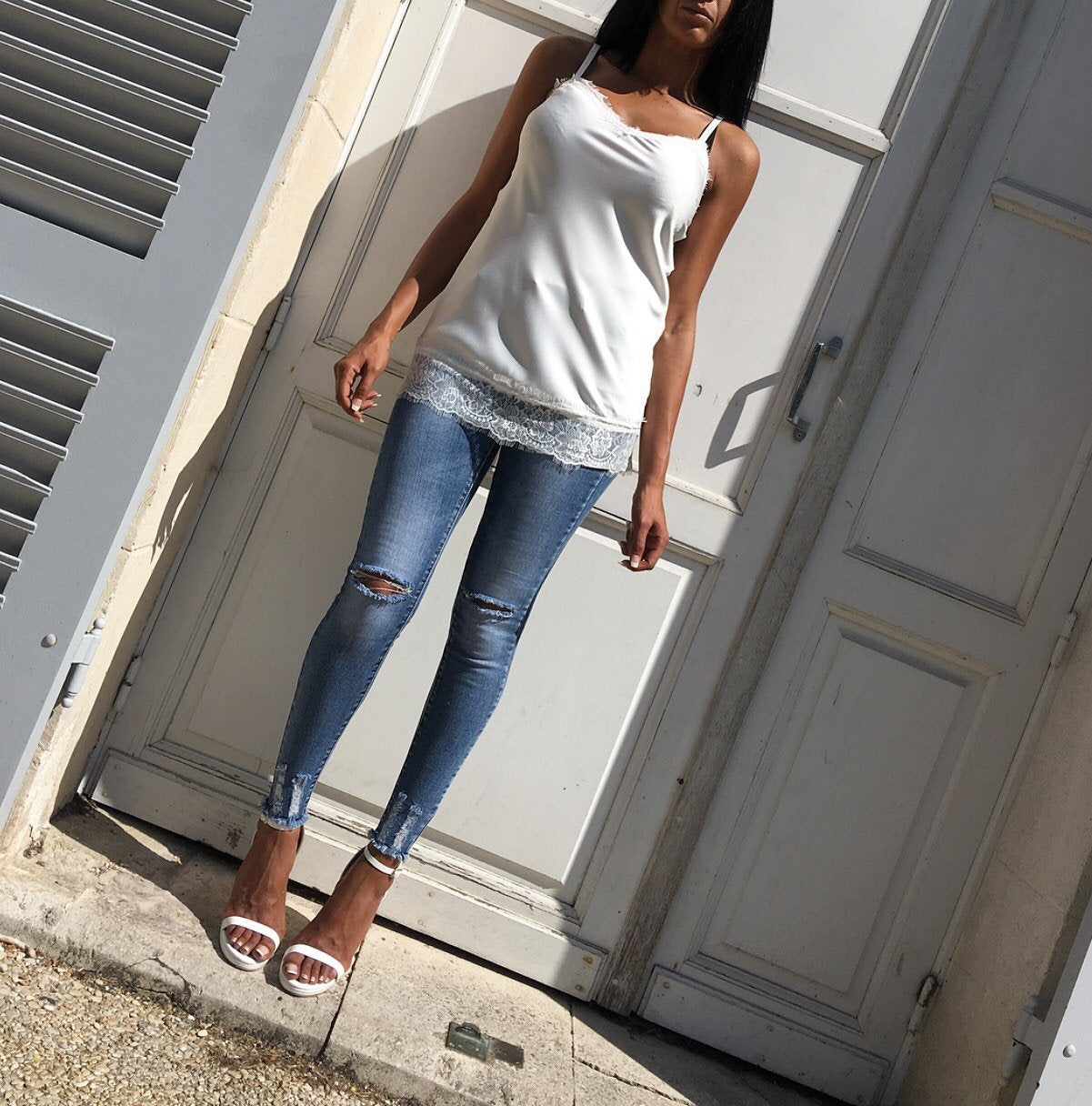 Top avec Bordure dentelle à l'avant Et Tour de taille !!