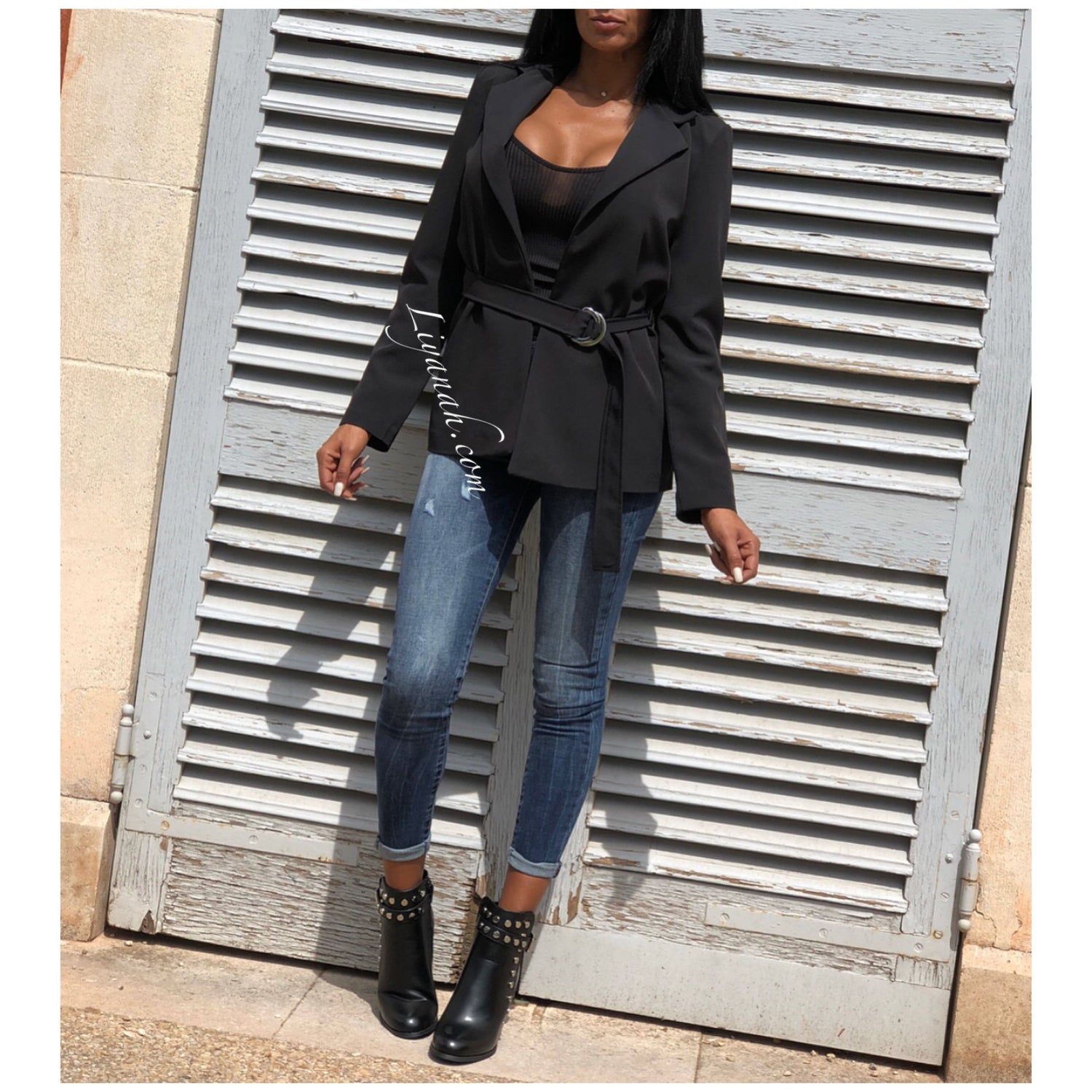 Adoptez le modèle AVYA !! Veste Tailleur courte avec noeud anneaux !! Une coupe a la fois légèrement ajustée et ample !!! Épaulettes - Des manches longues !! Un Tissus légèrement fluide !!! Elle rehaussera votre tenue !! ✖️ Intérieur doublure tissus (Notre modèle porte une Taille S) Disponible Du S au L - 89% Polyester 11% Spandex