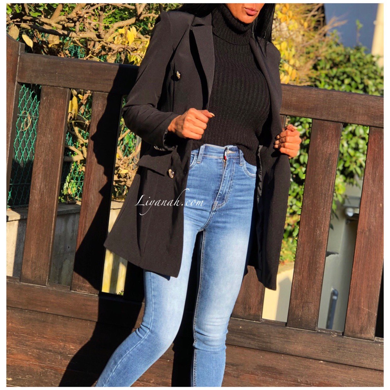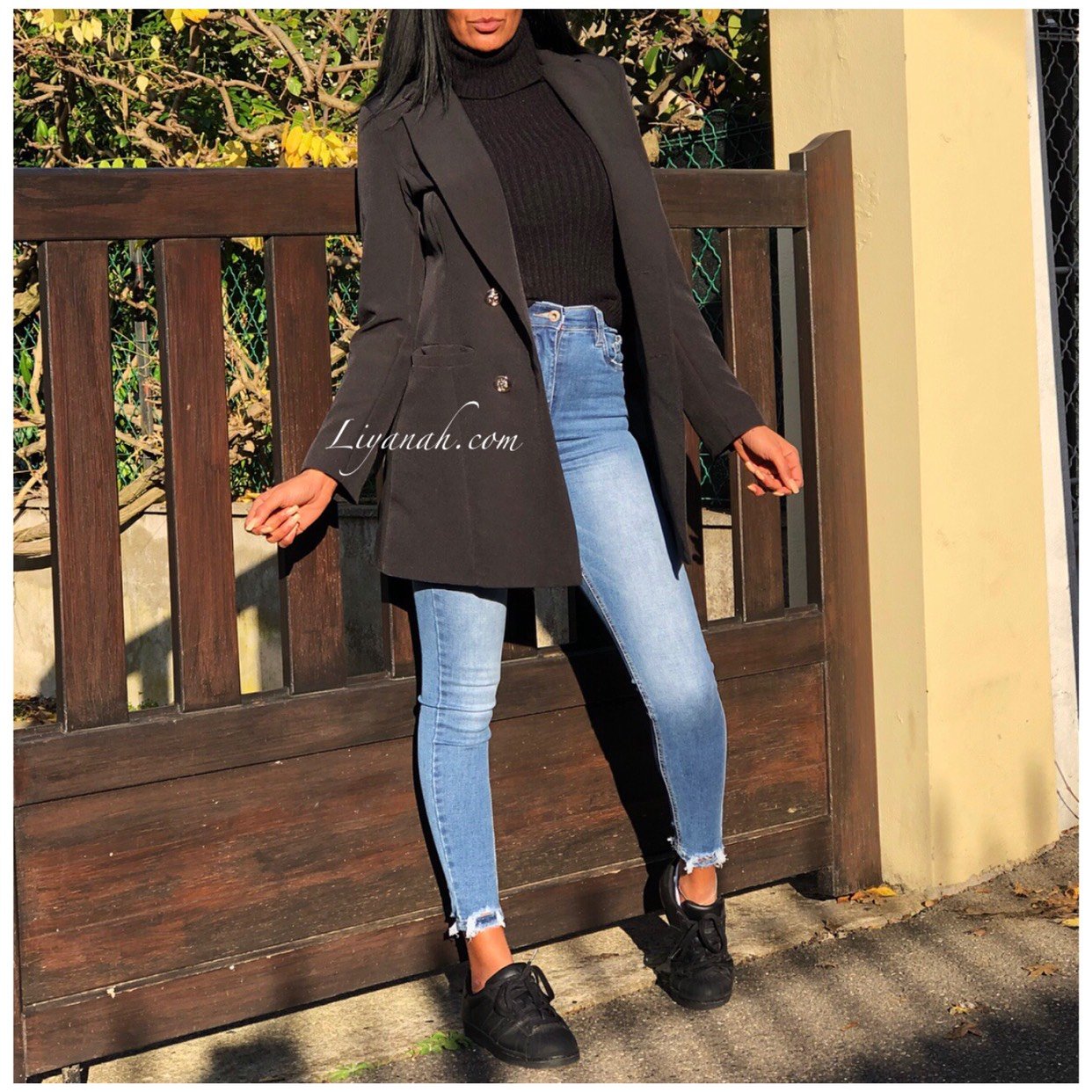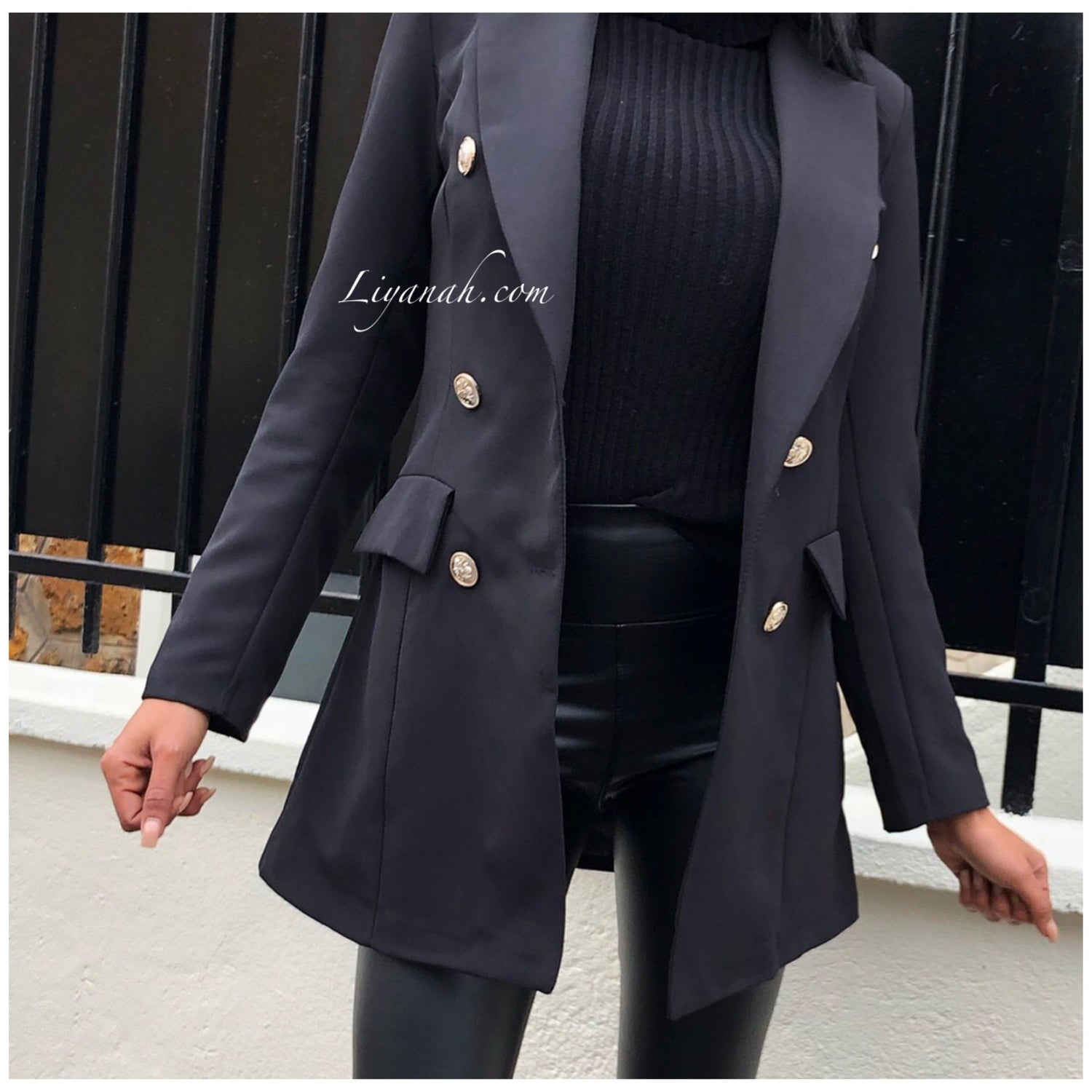 Blazer Modèle BELYA NOIR - Adoptez le modèle BELYA !! Une coupe mi longue et cintrée !!! Des manches longues et Un Tissus fluide !!! Portez La avec un t-shirt, body ou chemise, jean skinny ou pantalon simili !!! Elle rehaussera votre tenue !! 2 Poches fonctionnelles, boutons à l'avant Et sur les manches, Doublure intérieur et épaulettes 🖤 Notre modèle porte une Taille S - (Taille S à XL) matières : 95% Polyester 5% Elasthanne !!