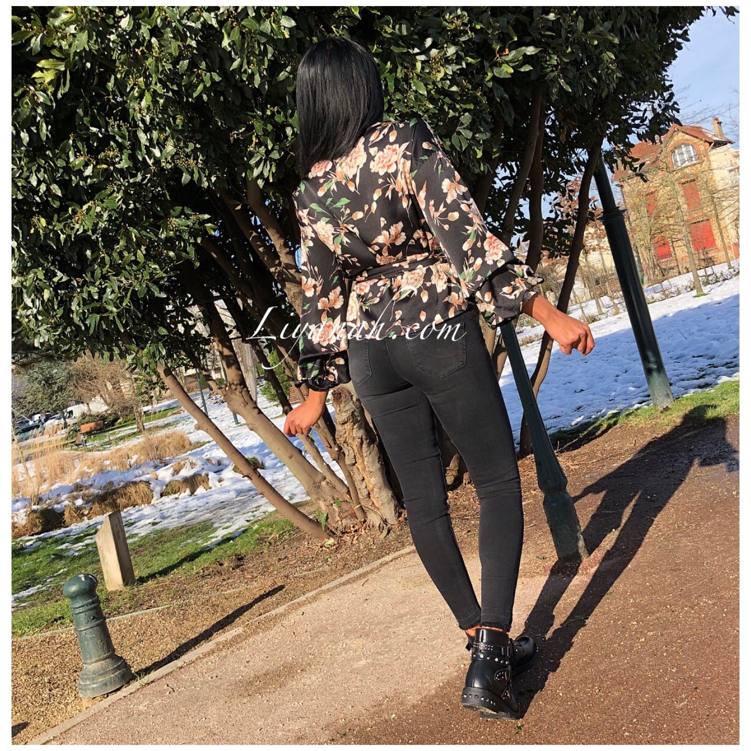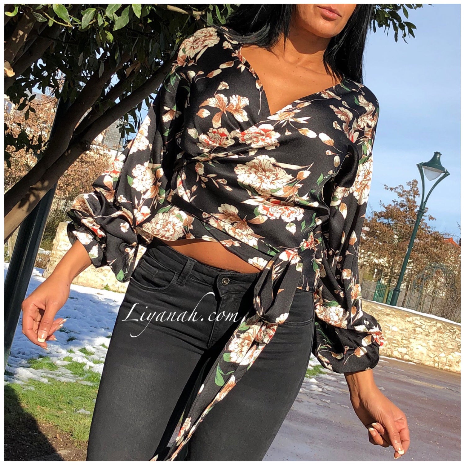 Blouse Cache-Coeur Modèle KALYSSA NOIR