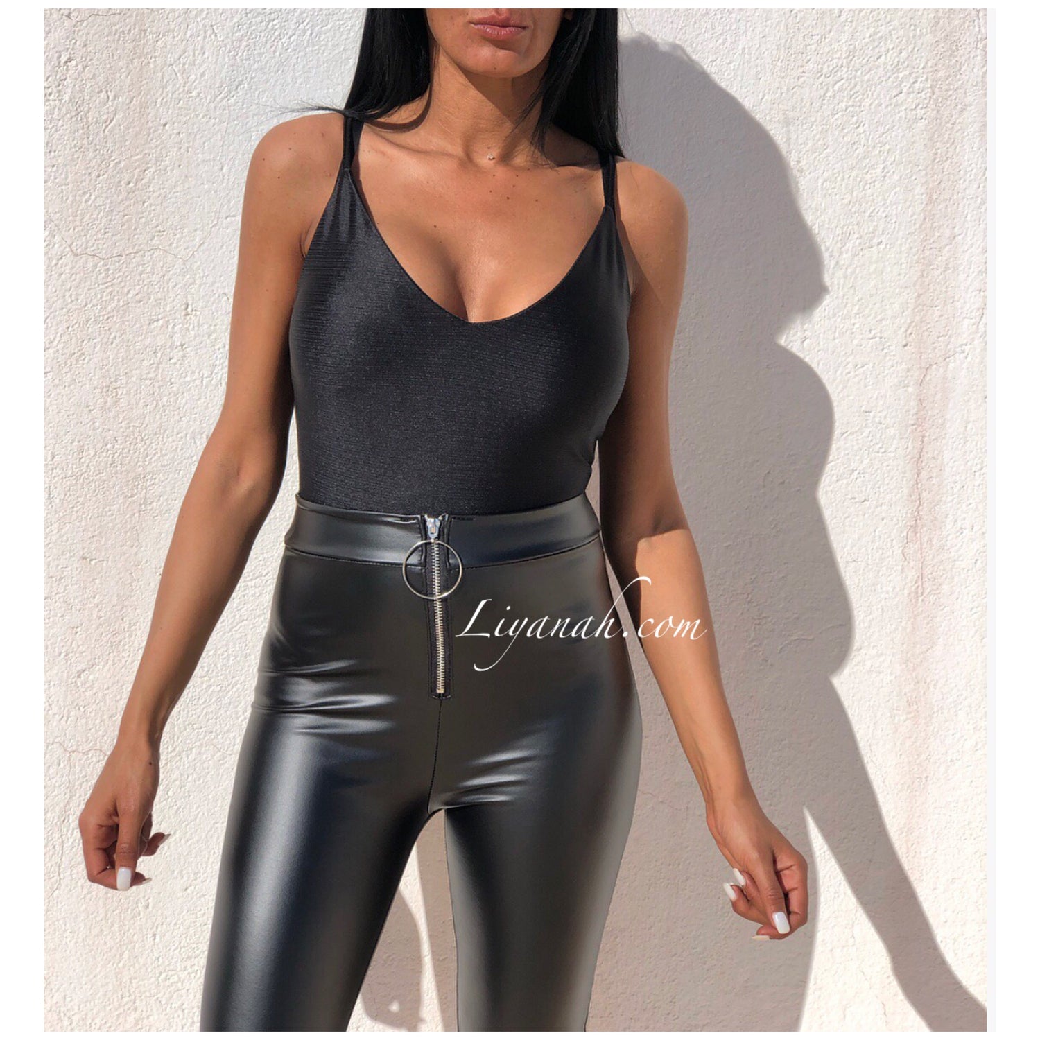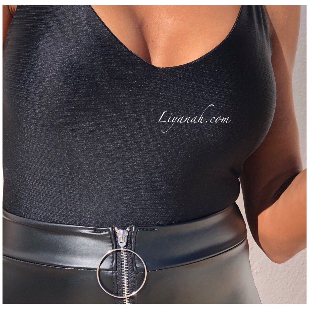 BODY Aspect Brillant Modèle OKARA NOIR - Dingue des bodys chez Liyanah et ce modèle est sexy et décontracté !!! Portez-le avec un jean, short, pantalon ou jupe !!! Il s'adaptera à toutes vos envies !! Décolleté plongeant avec dos nu !! 100% Polyester - Taille XS au L - FERMETURE À BOUTONS A L’ENTREJAMBE - Notre modèle porte une Taille XS / Pour des raisons d'hygiène, les bodys et sous vêtement ne sont ni repris ni échangés