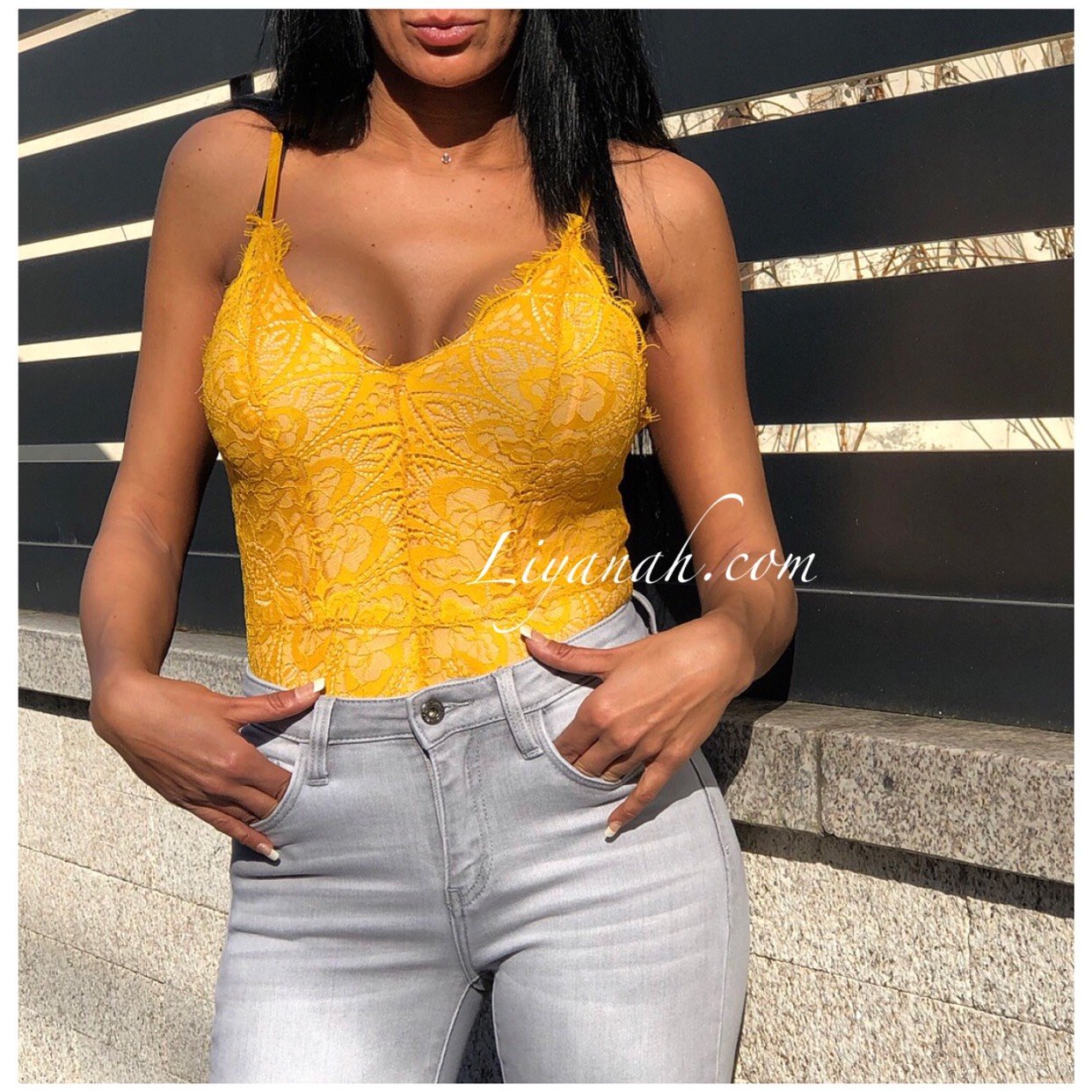 Body Dentelle Modèle AZIA JAUNE