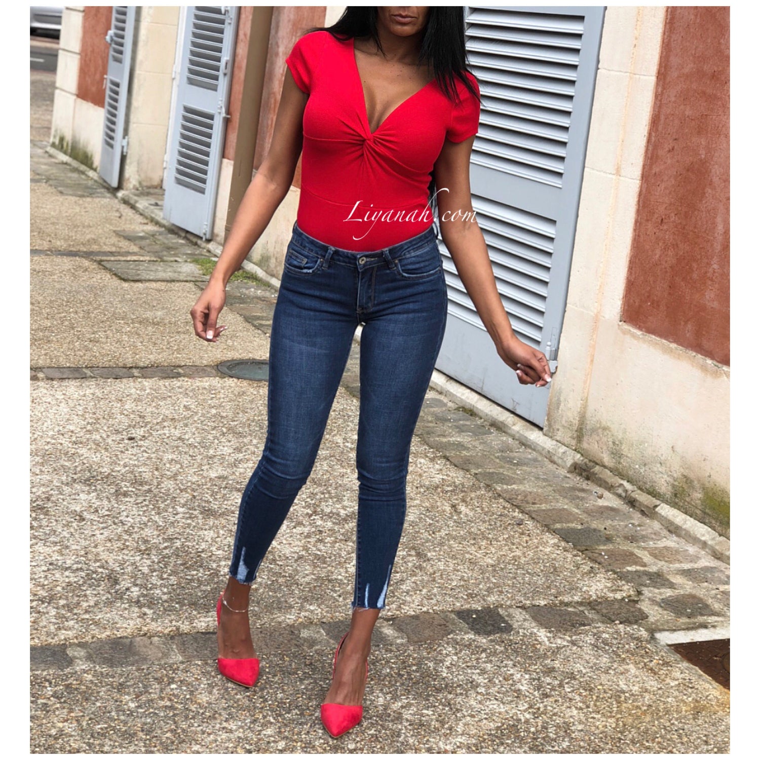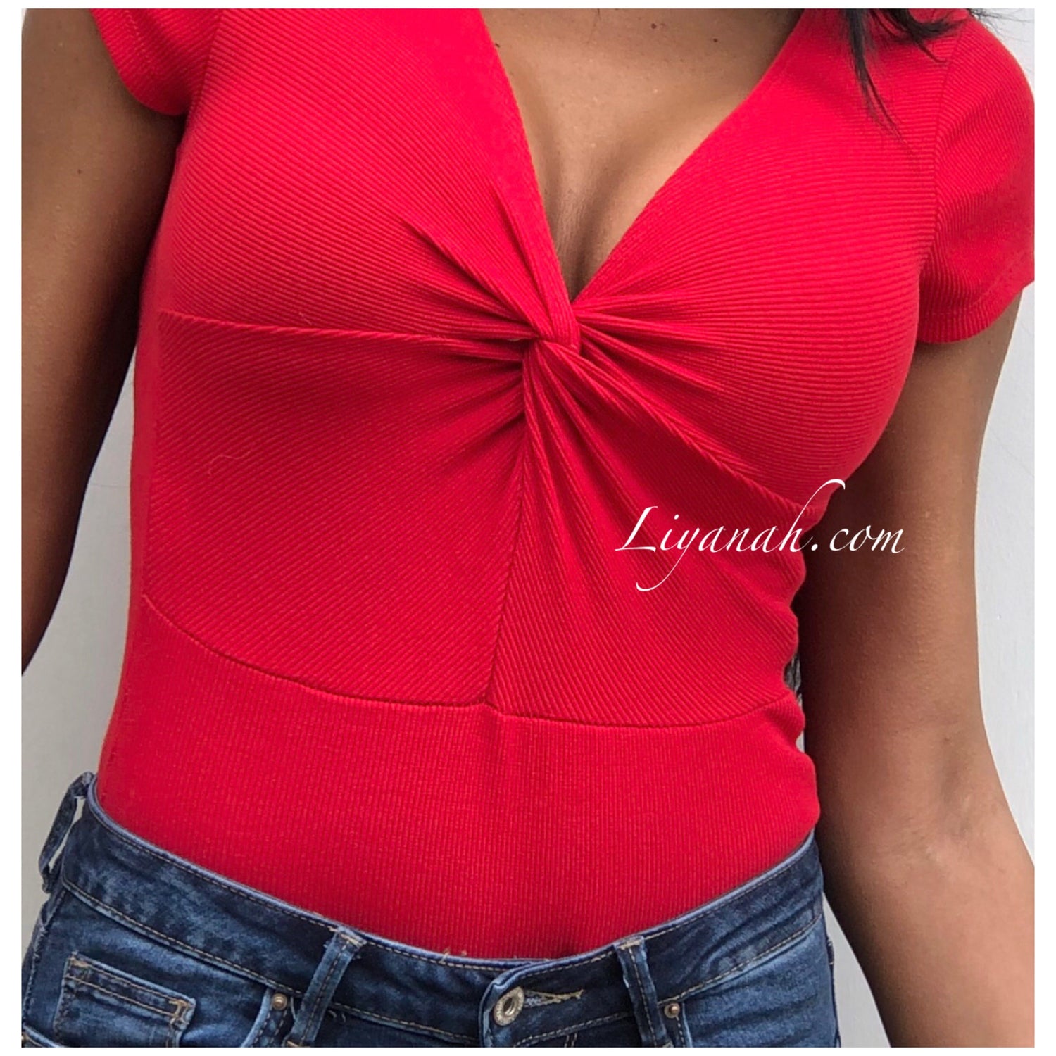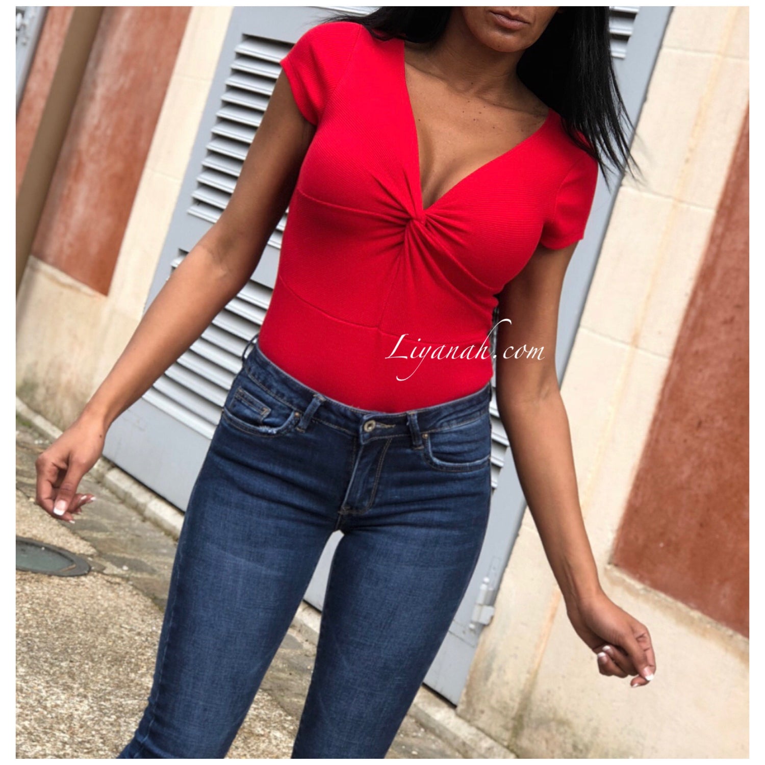 Body Modèle SELDA Noir, Rouge ou Gris / Ce modèle avec son décolleté aspect nouer est à la fois chic et décontracté !!! Manches style T-shirt et Fermeture à l'entrejambe (Taille unique / idéalement du 34 au 38) 95% Coton 5% Elasthanne - Pour des raisons d'hygiène, les bodys et sous vêtement ne sont ni repris ni échangé