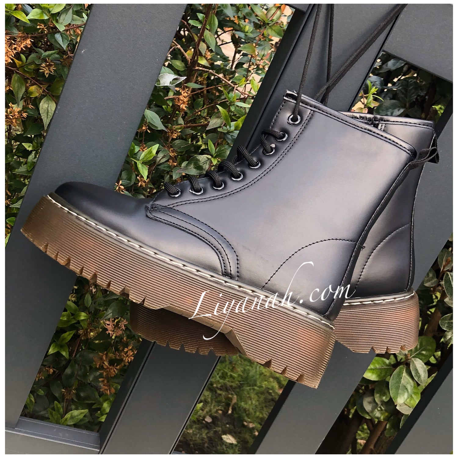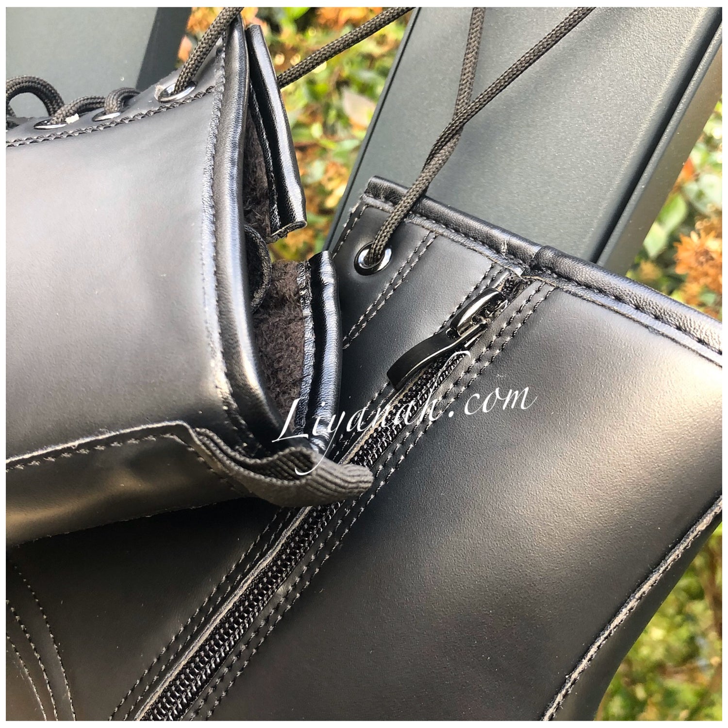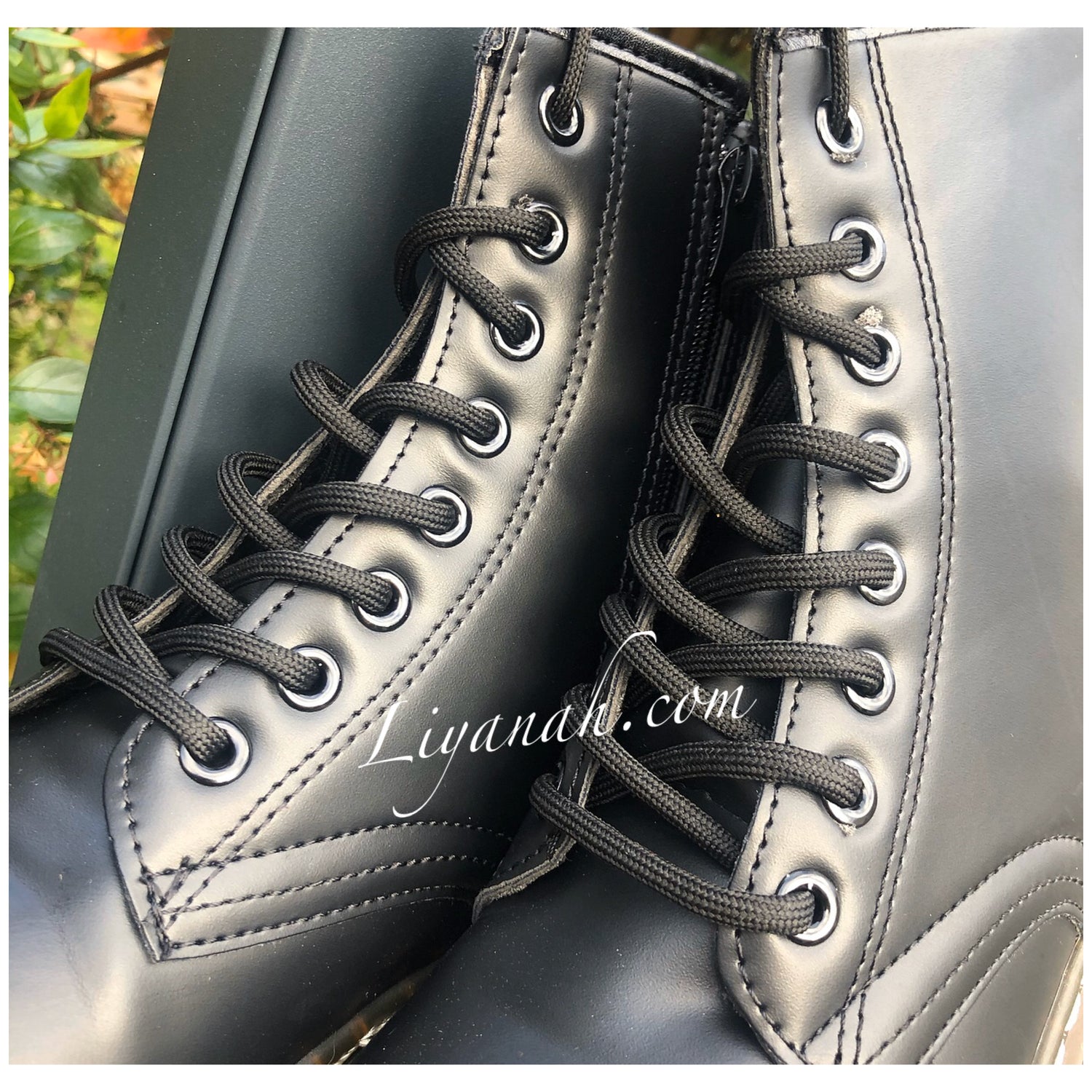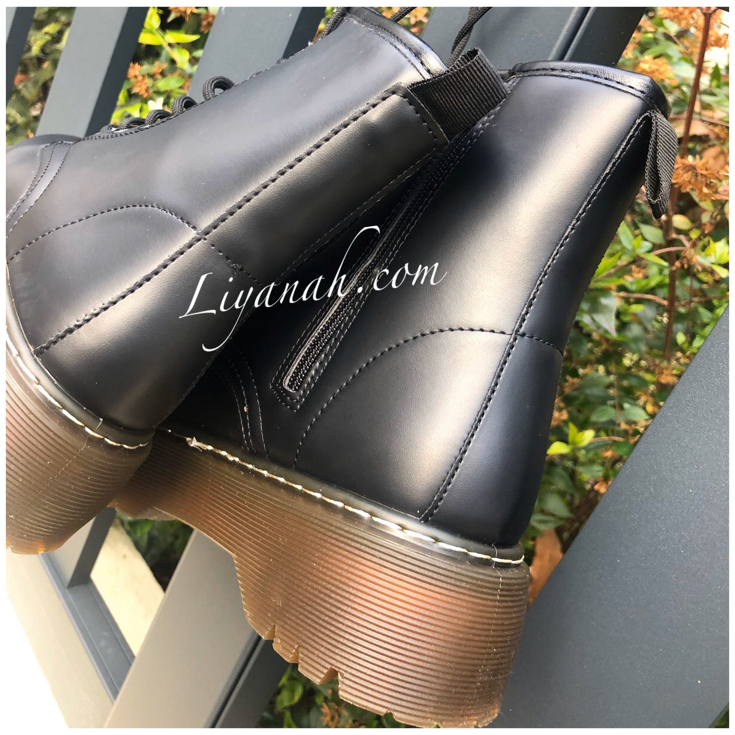BOOTS Modèle LIZZY NOIR LISSE - Boots noir à fermeture ZIP sur le côté et laçage à 8 œillets, montées sur semelle plateforme, bout rond et languette à l’arrière. Hauteur de la tige Noir : 2,5 cm - Hauteur de la plateforme : 4,5 cm - Matière Synthétique - Taille 36 au 41 (Les chaussures vendus sur notre site ne sont ni repris ni échangé pour des raisons d'hygiène !! CONSEIL : Prenez votre Taille Habituelle)