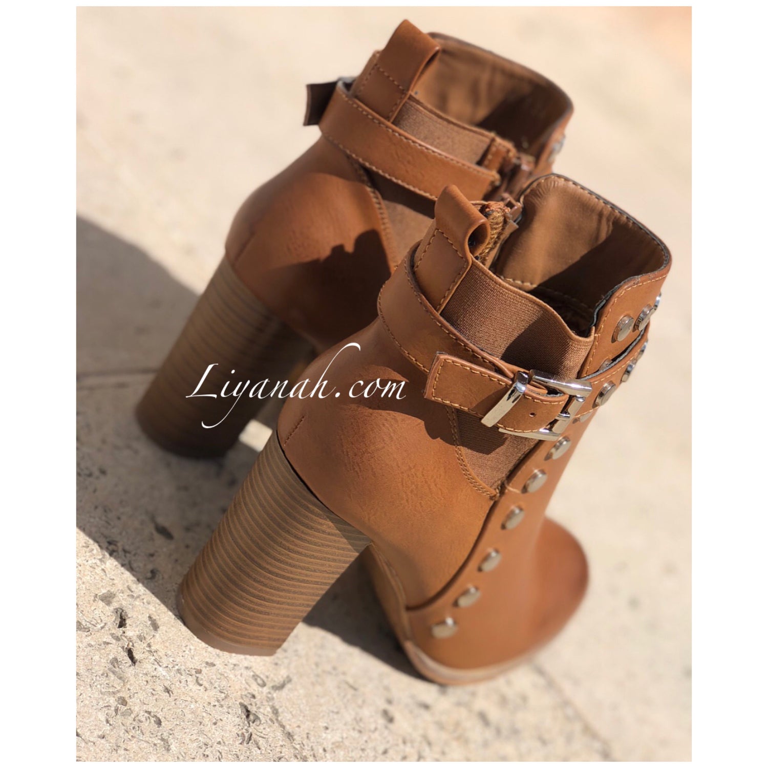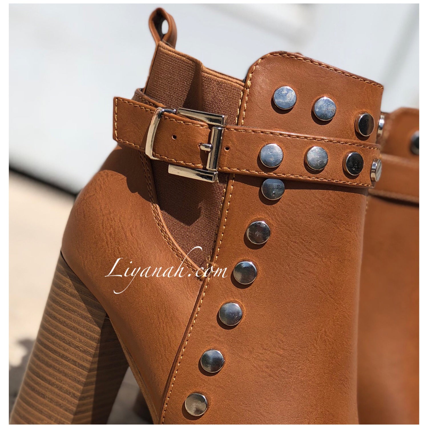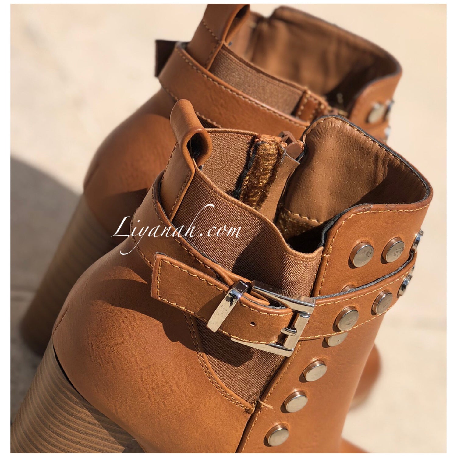 Bottines à talons hauts CLOUS Modèle WADIA CAMEL