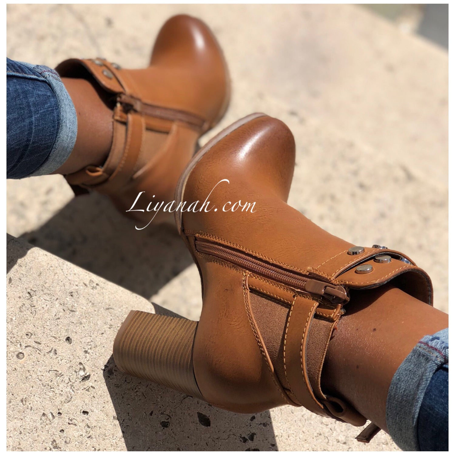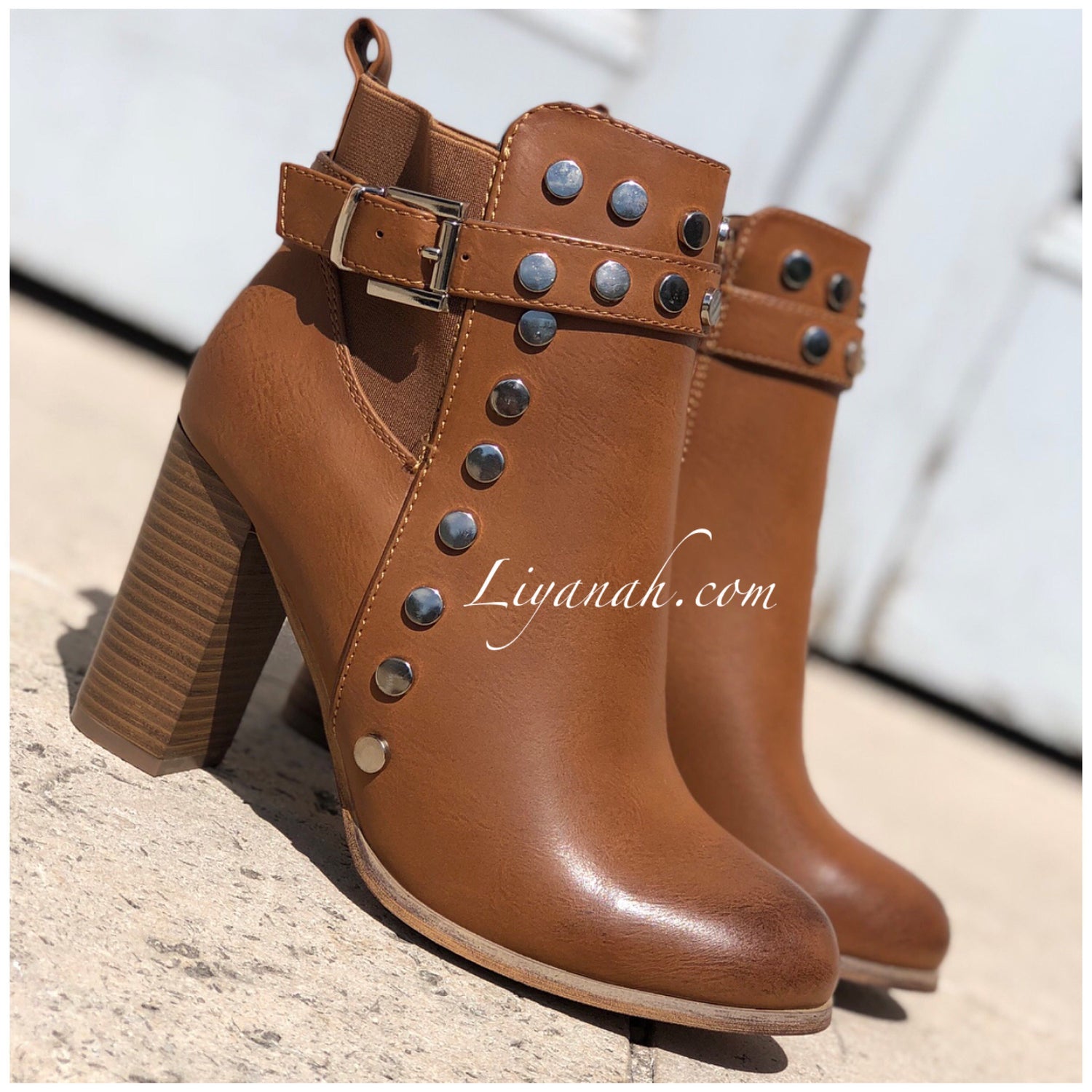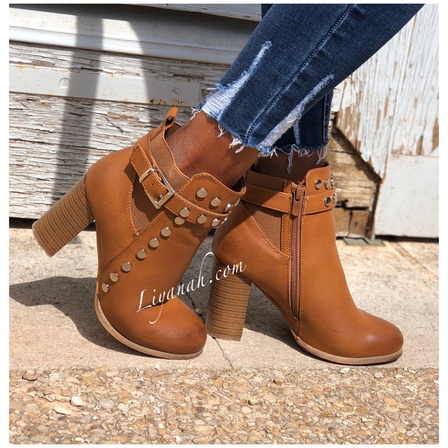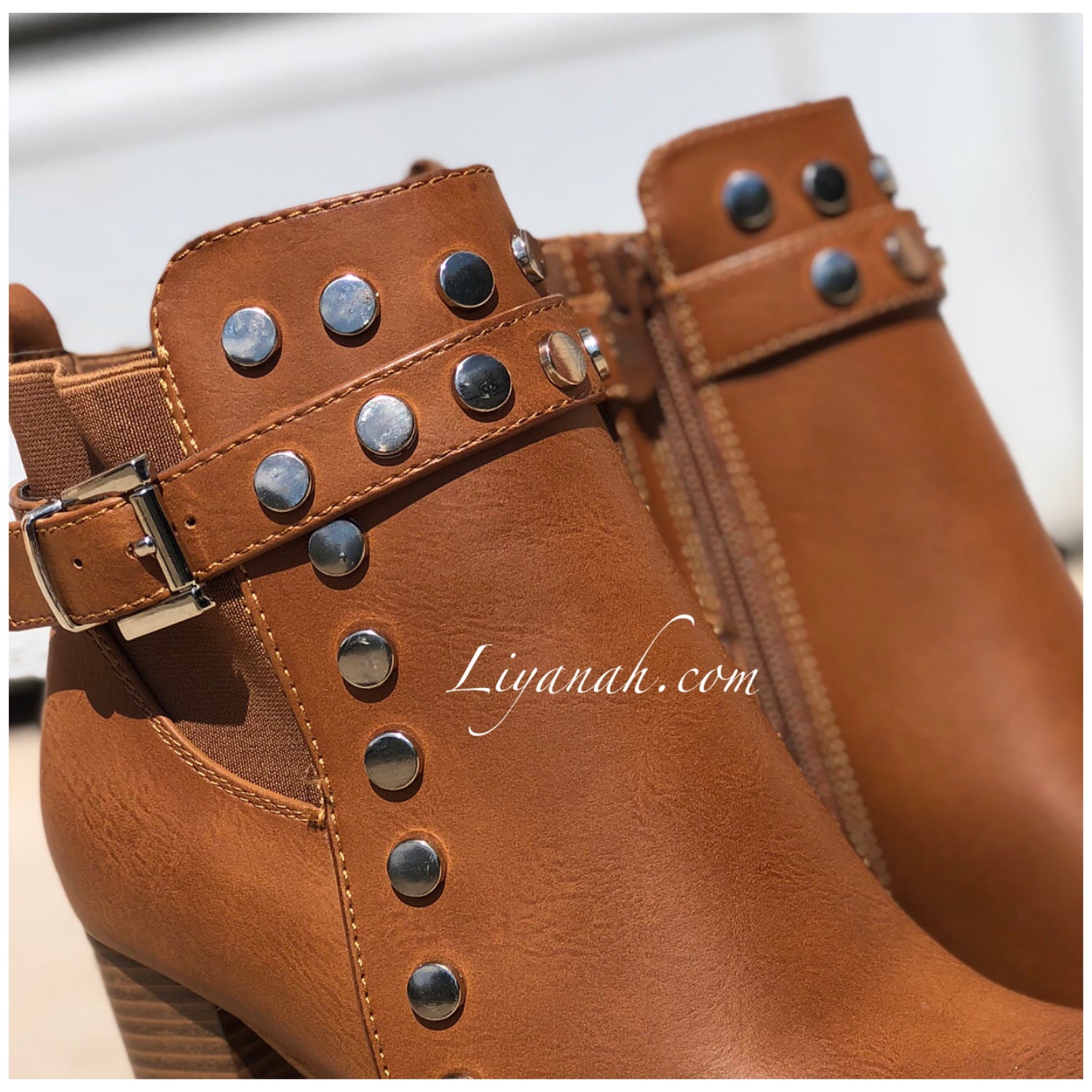 Bottines à talons hauts CLOUS Modèle WADIA CAMEL
