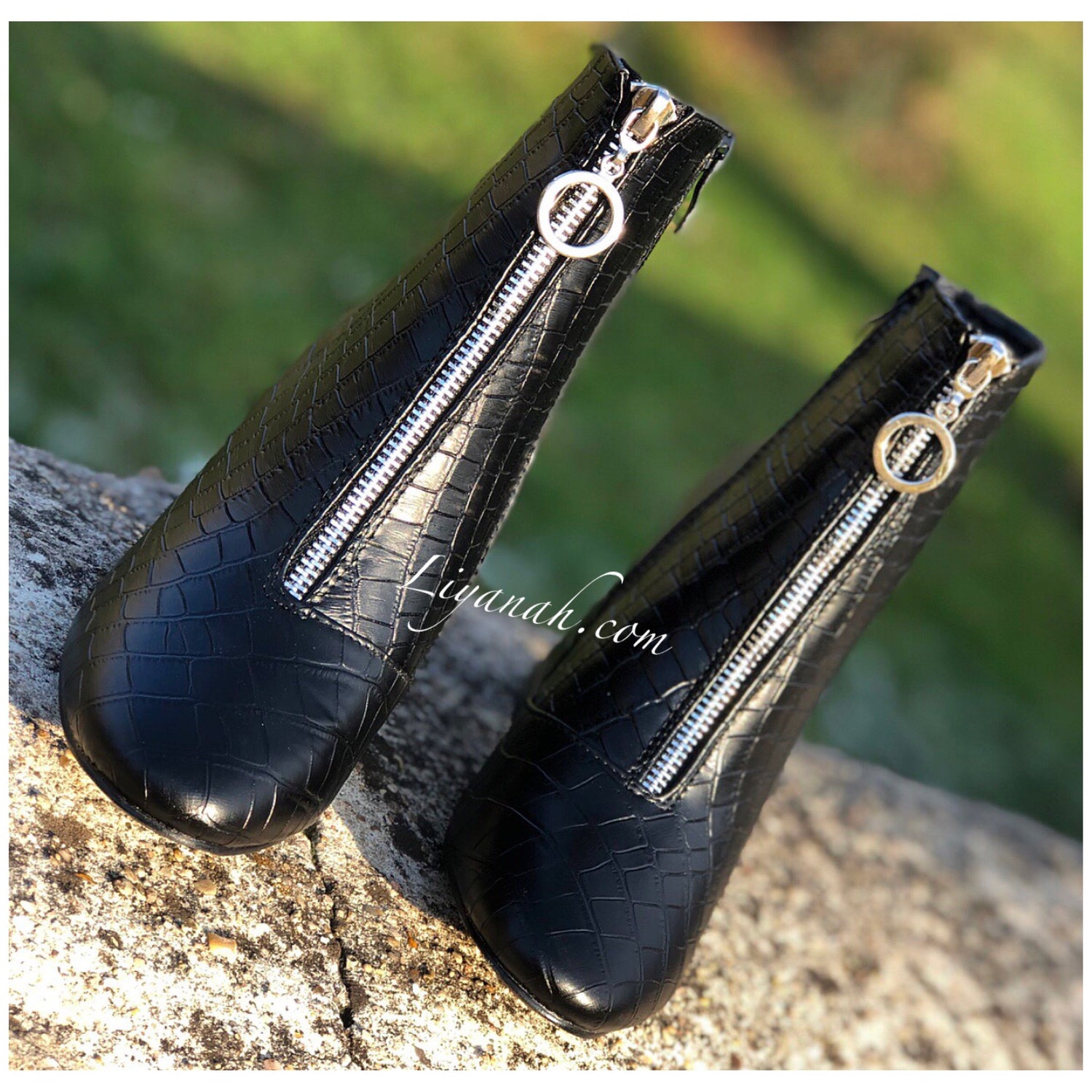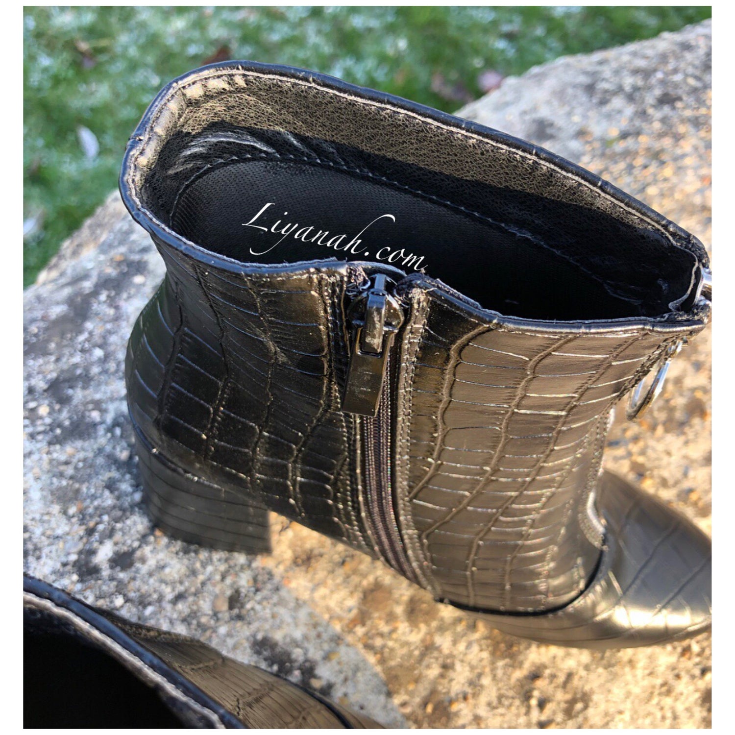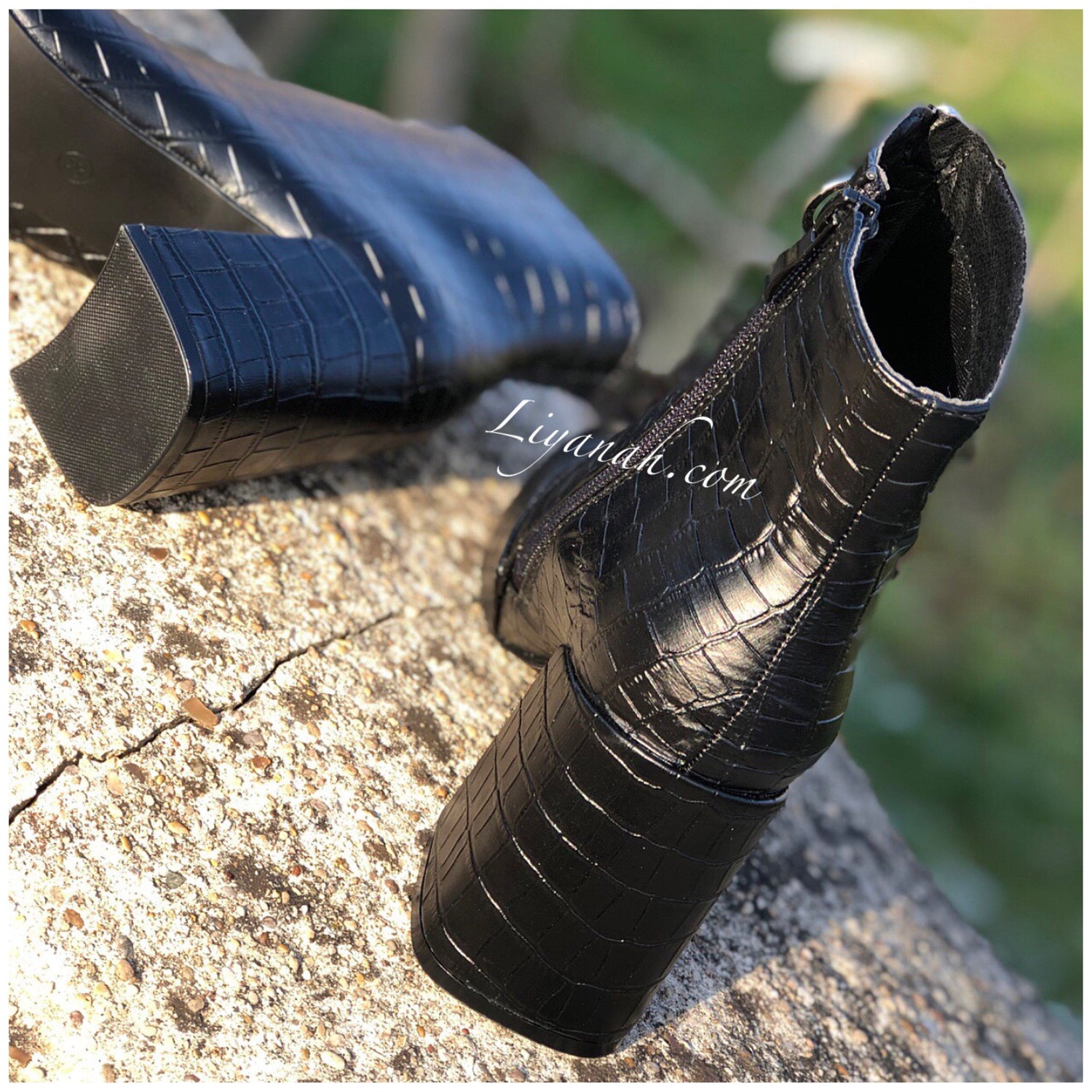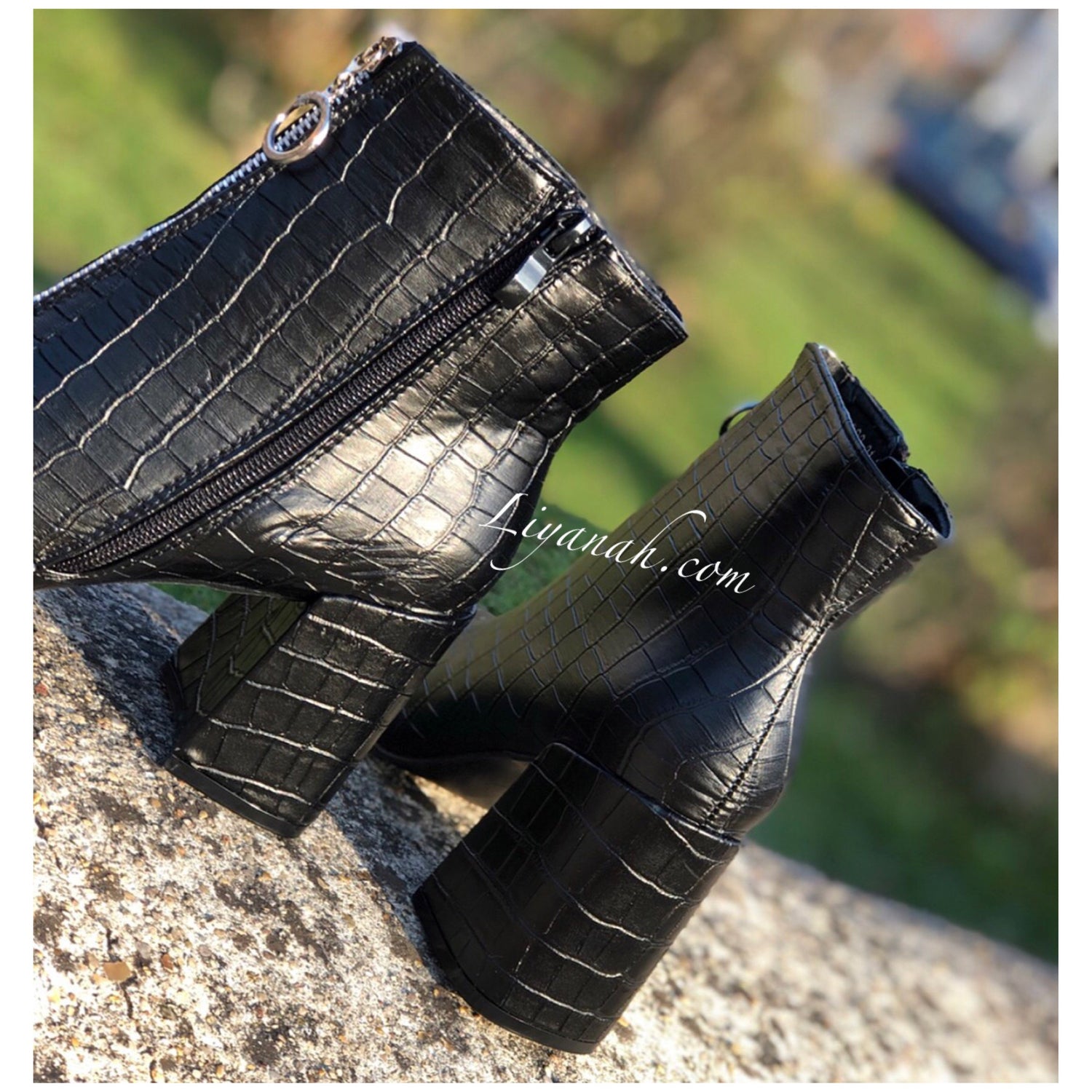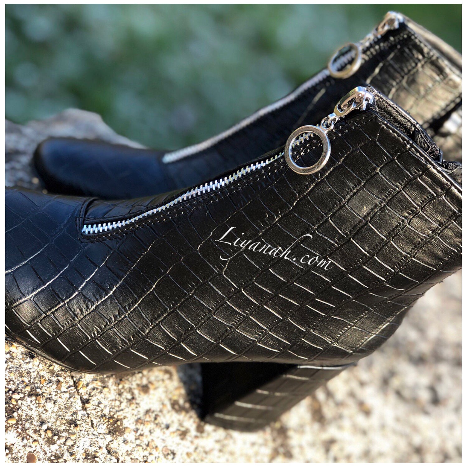Bottines Aspect Croco à talons Bloc Modèle PARISIENNE NOIR 🖤 Bottines à bout Rond, Gros Talon haut bloc, Bout rond, Fermeture ZIP sur le côté et sur le devant - aspect brillant - SYNTHÉTIQUE 💋 Hauteur du talon : 8,5 cm ✖️ confortable et agréable à porter - Taille 36 à 41(Les chaussures vendus sur notre site ne sont ni repris ni échangé pour des raisons d'hygiène !! CONSEIL : Prenez votre Taille Habituelle
