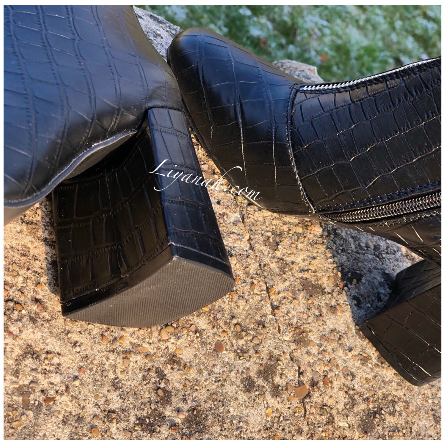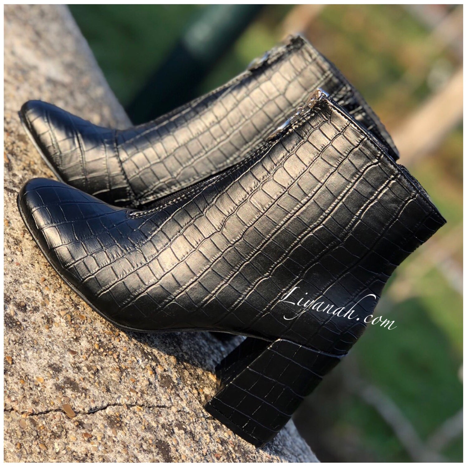Bottines Aspect Croco à talons Bloc Modèle PARISIENNE NOIR