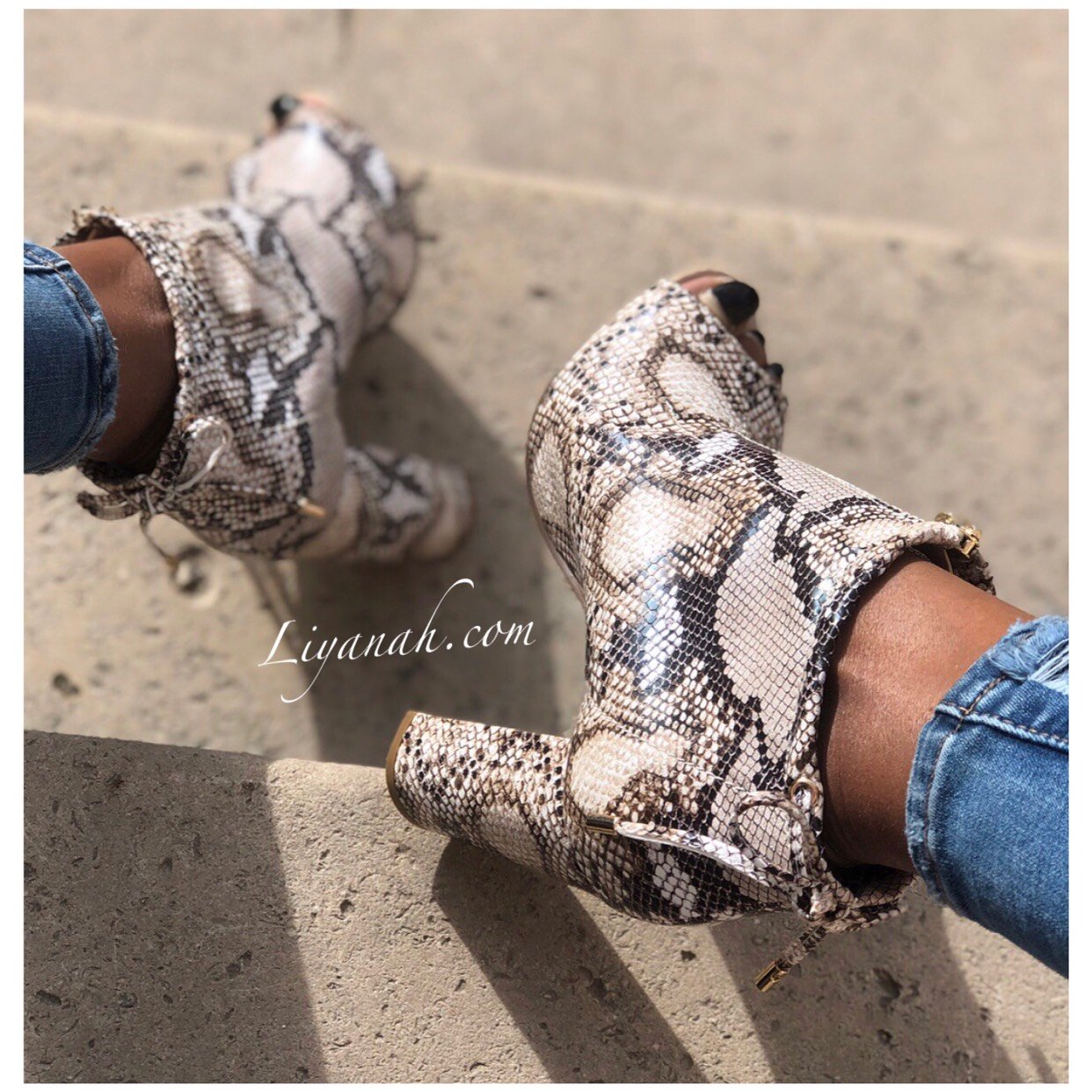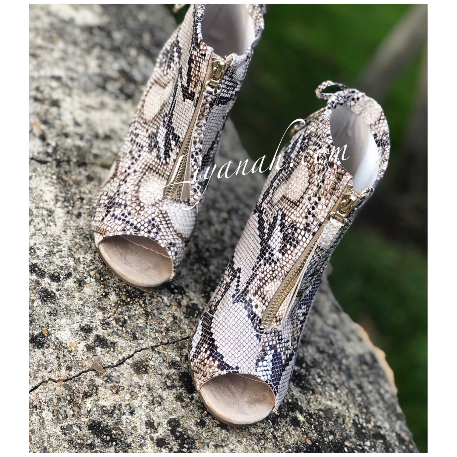 Bottines Ouvertes Aspect Daim Modèle CASSY SNAKE - Bottines à bout ouvert à l’avant, fermeture ZIP à l’avant, bout Rond, détails noeuds sur l’arrière fixe et Talon Bloc 🖤SYNTHÉTIQUE ASPECT CUIR - Hauteur du talon : 10 cm ✖️ confortable et agréable à porter - Taille 36 à 41(Les chaussures vendus sur notre site ne sont ni repris ni échangé pour des raisons d'hygiène !! CONSEIL : Prenez votre Taille Habituelle)
