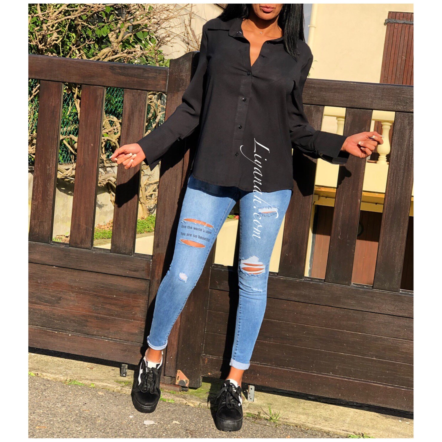 CHEMISE Modèle ANAYA NOIR ✖️ Chemise coupe cintrée et décontractée !! Un Style féminin Masculin Tendance 🖤 Fermeture par boutons et Manches longues - 100% Polyester - Matière DOUCE ET AGRÉABLE À PORTER (légèrement Transparente) Taille S au XL DISPONIBLE EN BLANC, NOIR ou ROUILLE