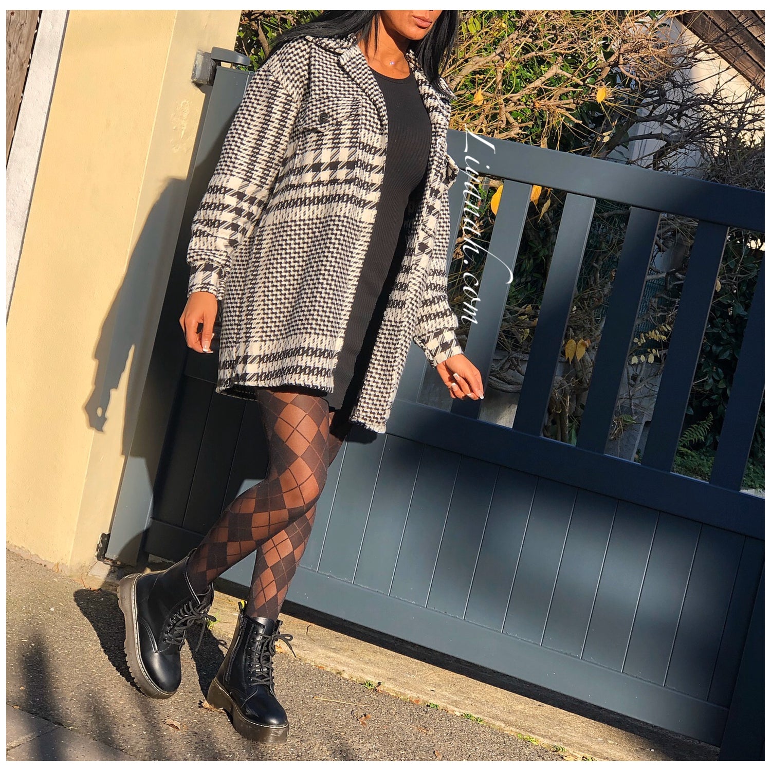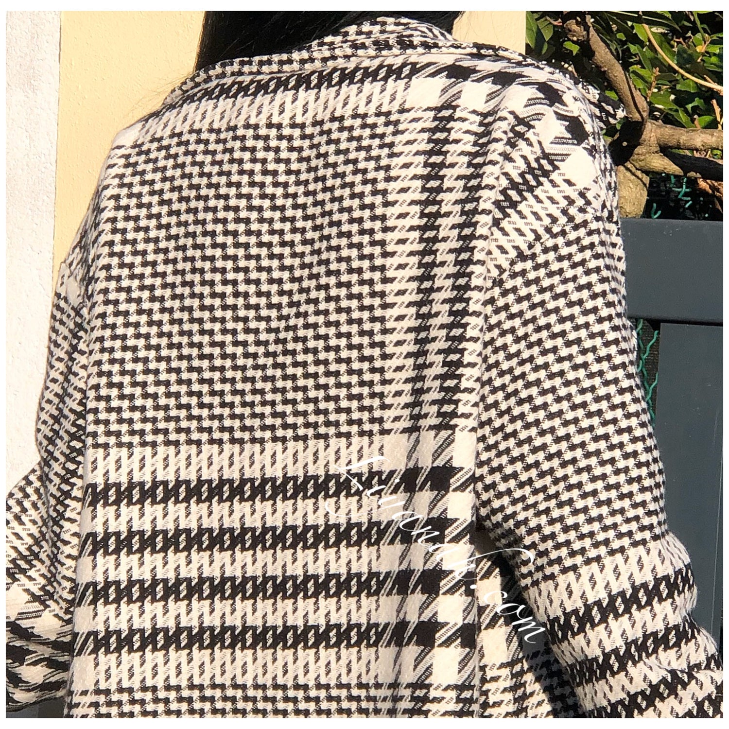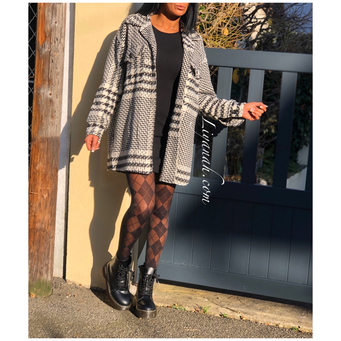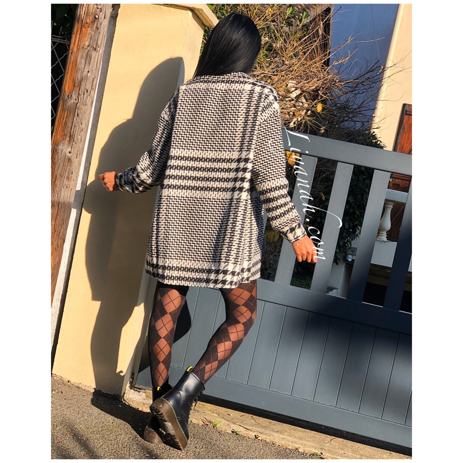 Chemise Modèle TANYA NOIR/BLANC - Coupe légèrement Oversize (se porte un peu large) chemise coupe droite, imprimé carreaux, fermeture boutons, manches longues, deux poches poitrines fonctionnelles, matière épaisse - 100% Polyester - Longueur : 82 cm - Taille Unique du 34 au 38 (Notre modèle mesure 1m70, fait une taille 34)
