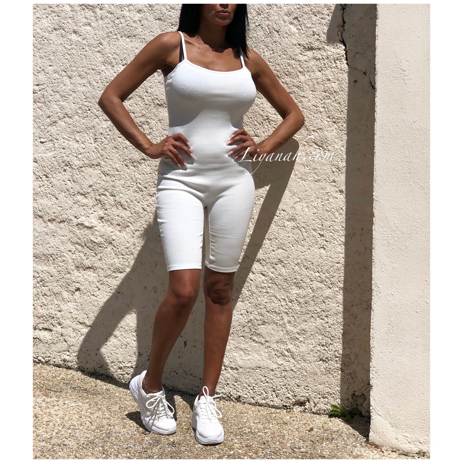 Simple et décontractée, la combishort est totalement moulante, Tissus légèrement épais et côtelé !! Dos nu - (transparent) Pour un style sexy et tendance !!! A la fois aussi bien pour le sport que pour le quotidien Taille Unique du 34 au 40 - 95% Coton 5% Elasthanne