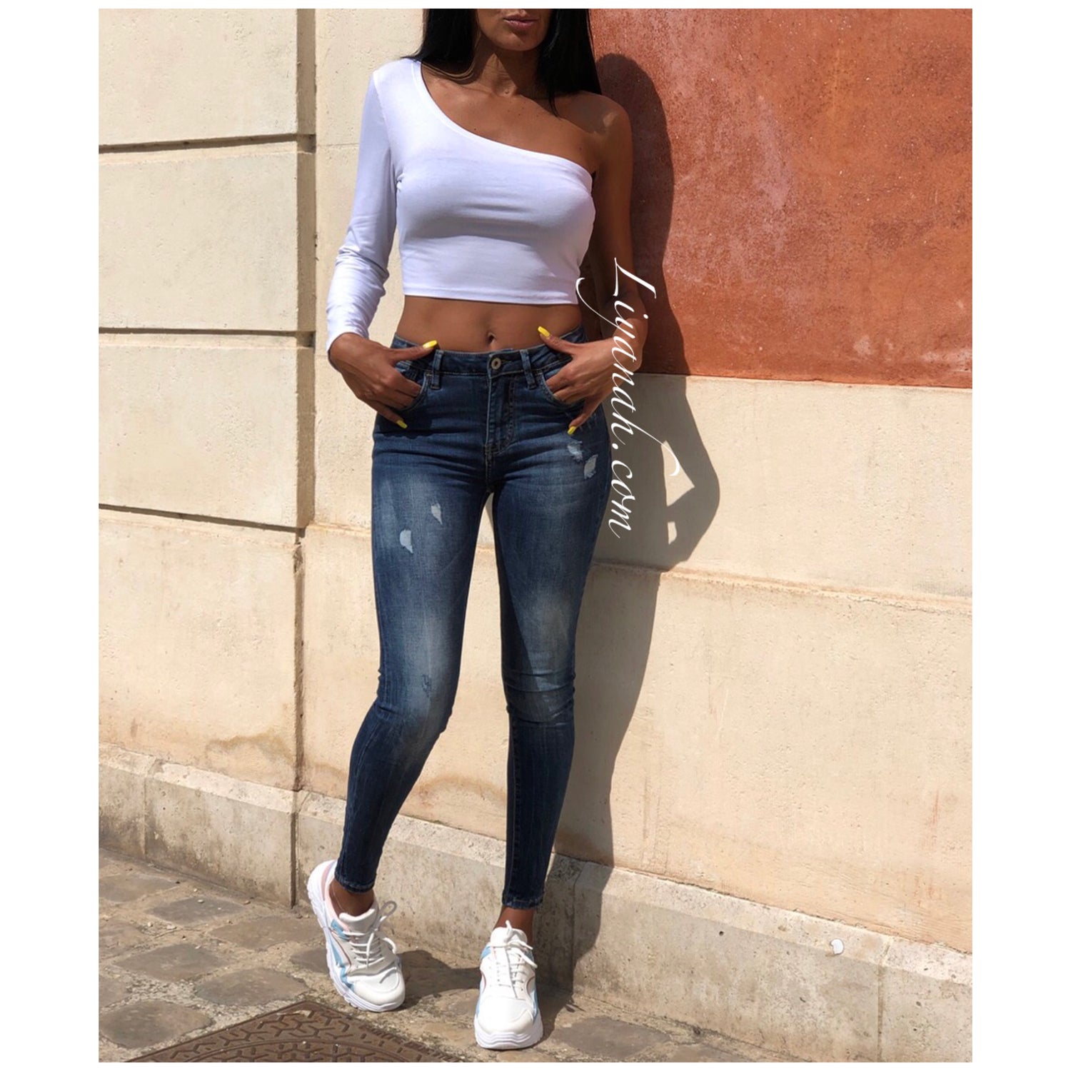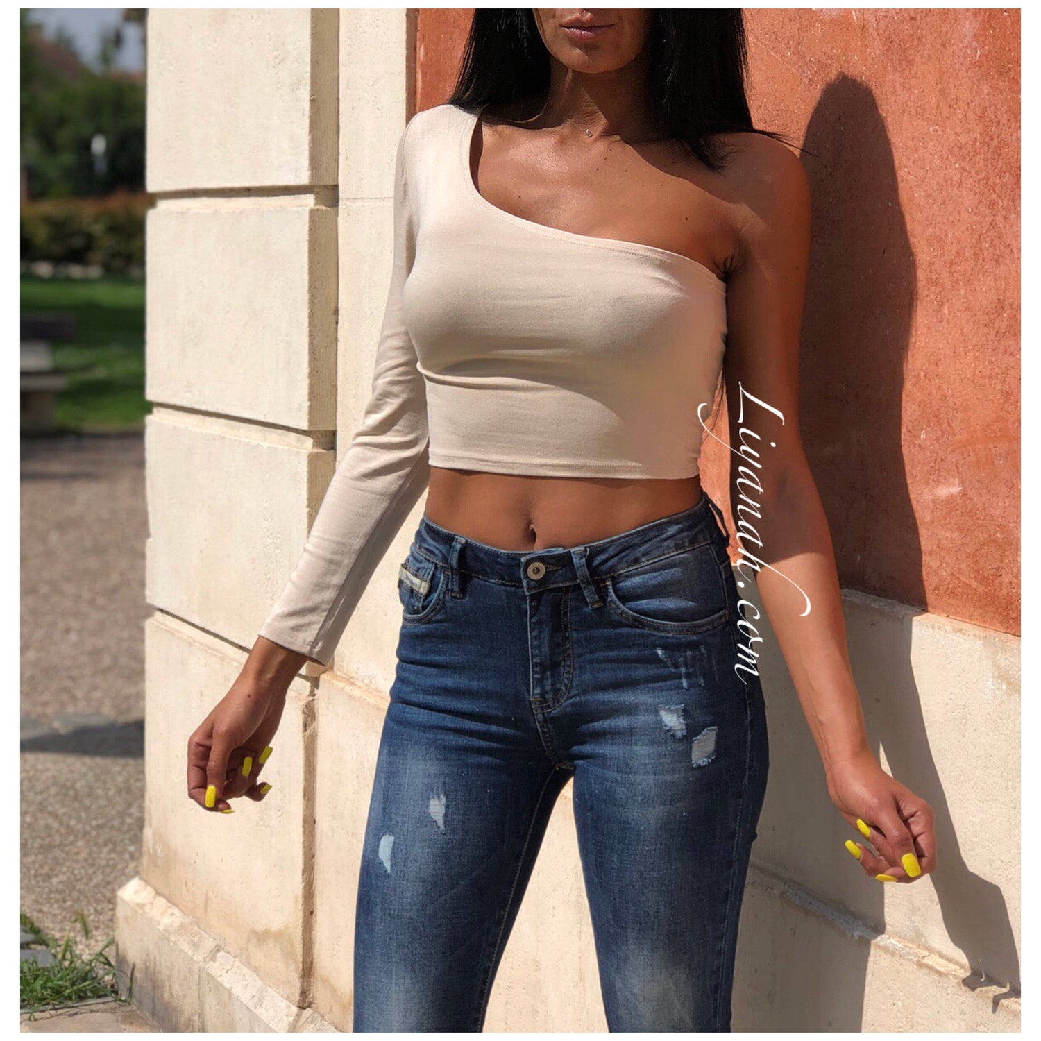 Crop top à manche unique Modèle MYRIS Blanc, Rouge, Beige ou Noir