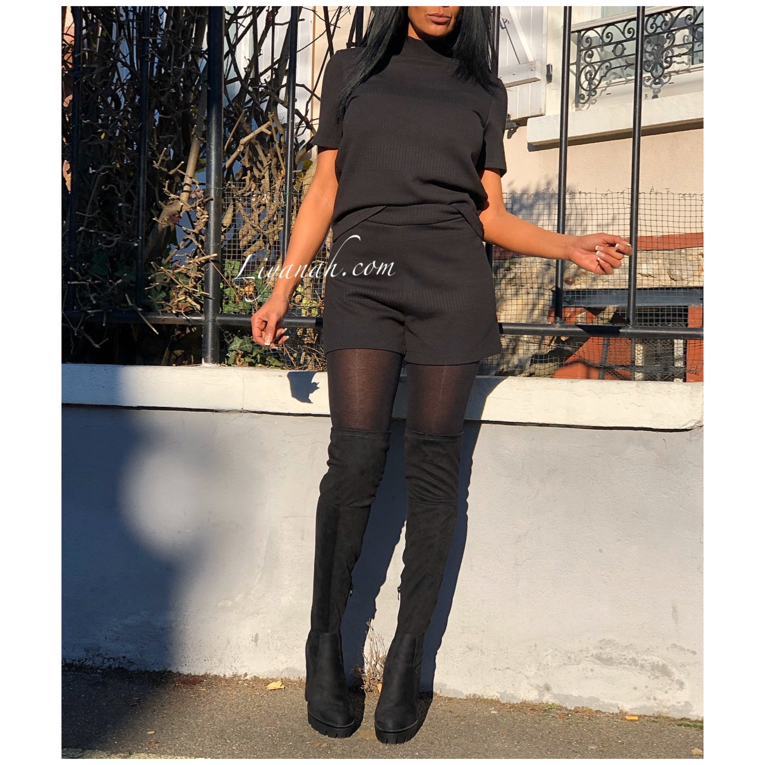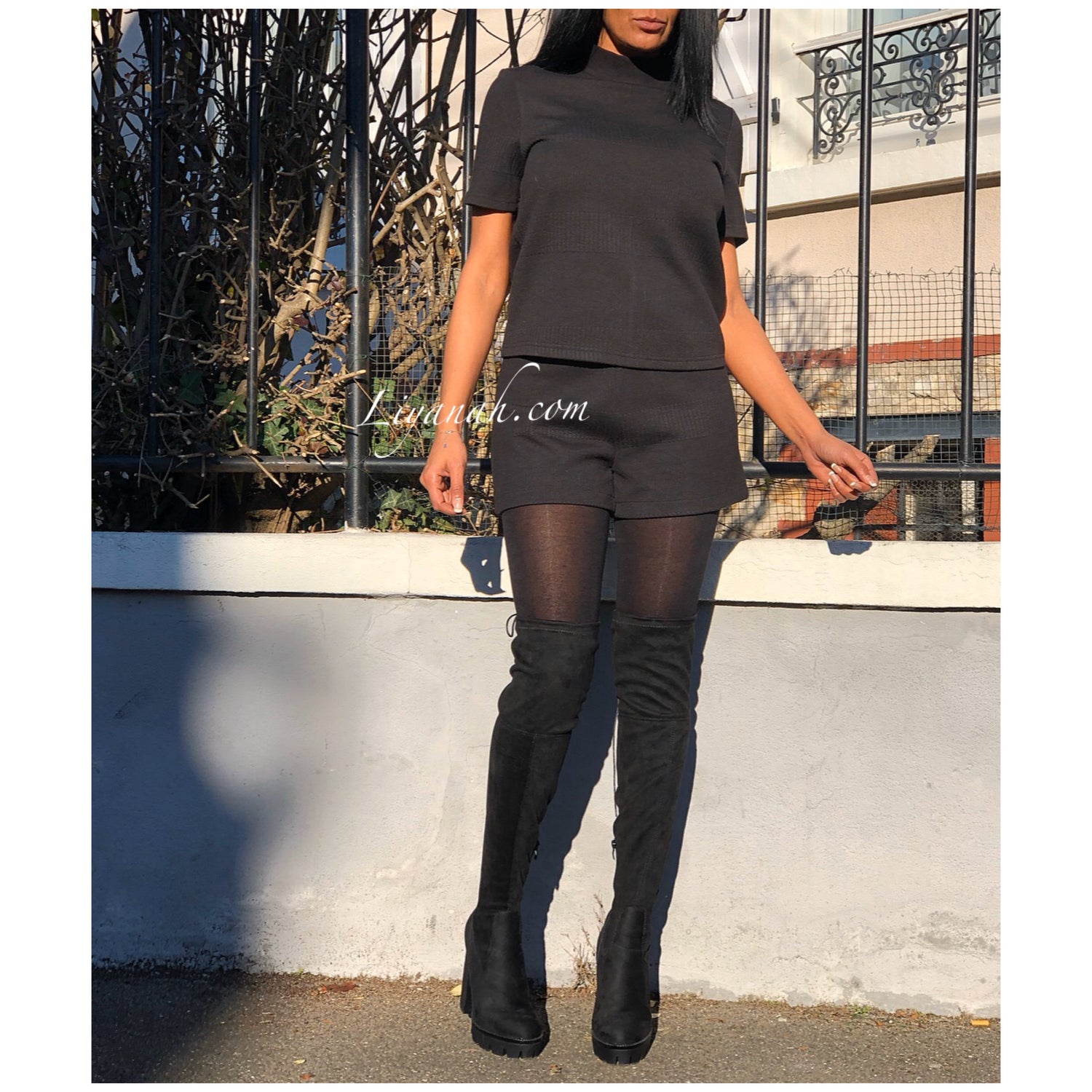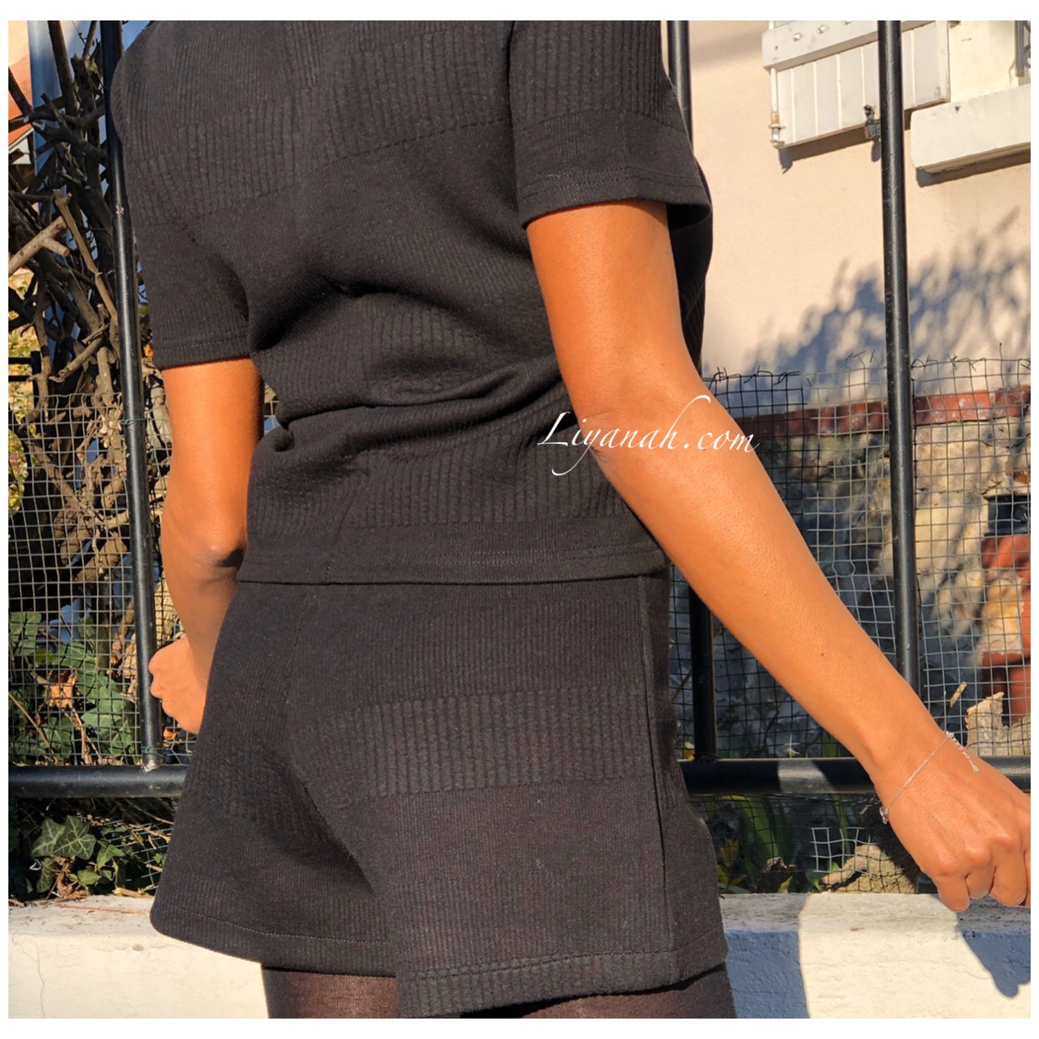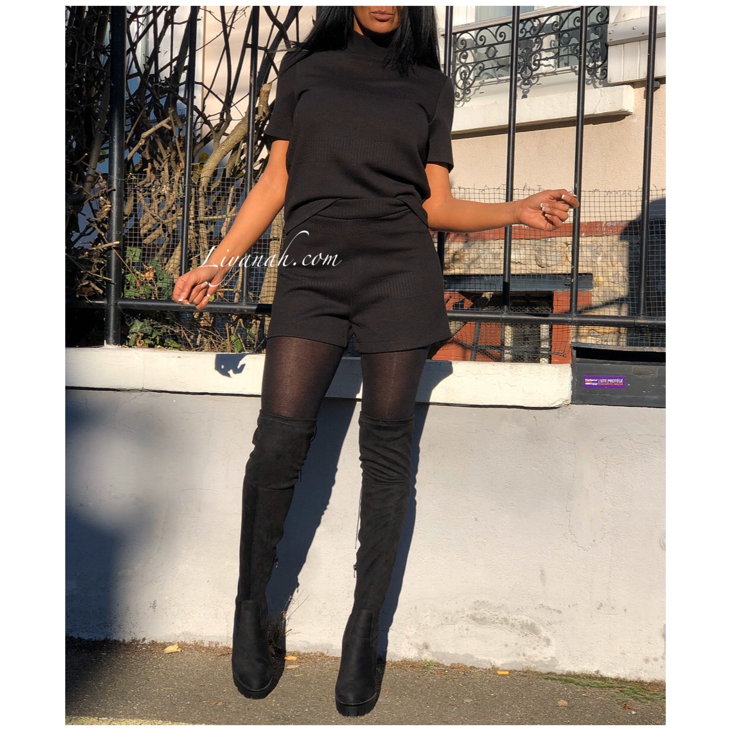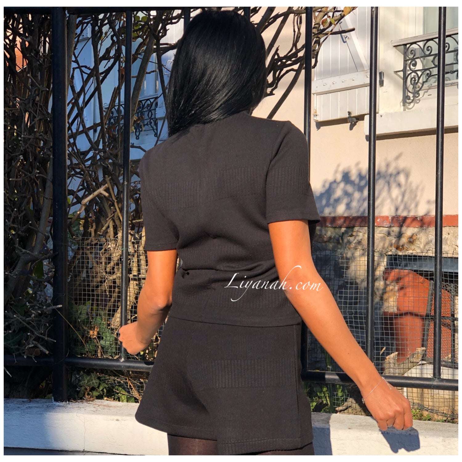 Ensemble Top + Short Modèle KEYSIA Tout doux, agréable à porter ... Chic et Décontracté !! on adore 🖤 TOP col Haut, coupe légèrement ample et manches courtes !! SHORT Taille Haute, Sans poche - Fermeture Zip invisible à l’arrière sur le top et le short ... Taille S à L Matières : 65% Coton 35% Polyester