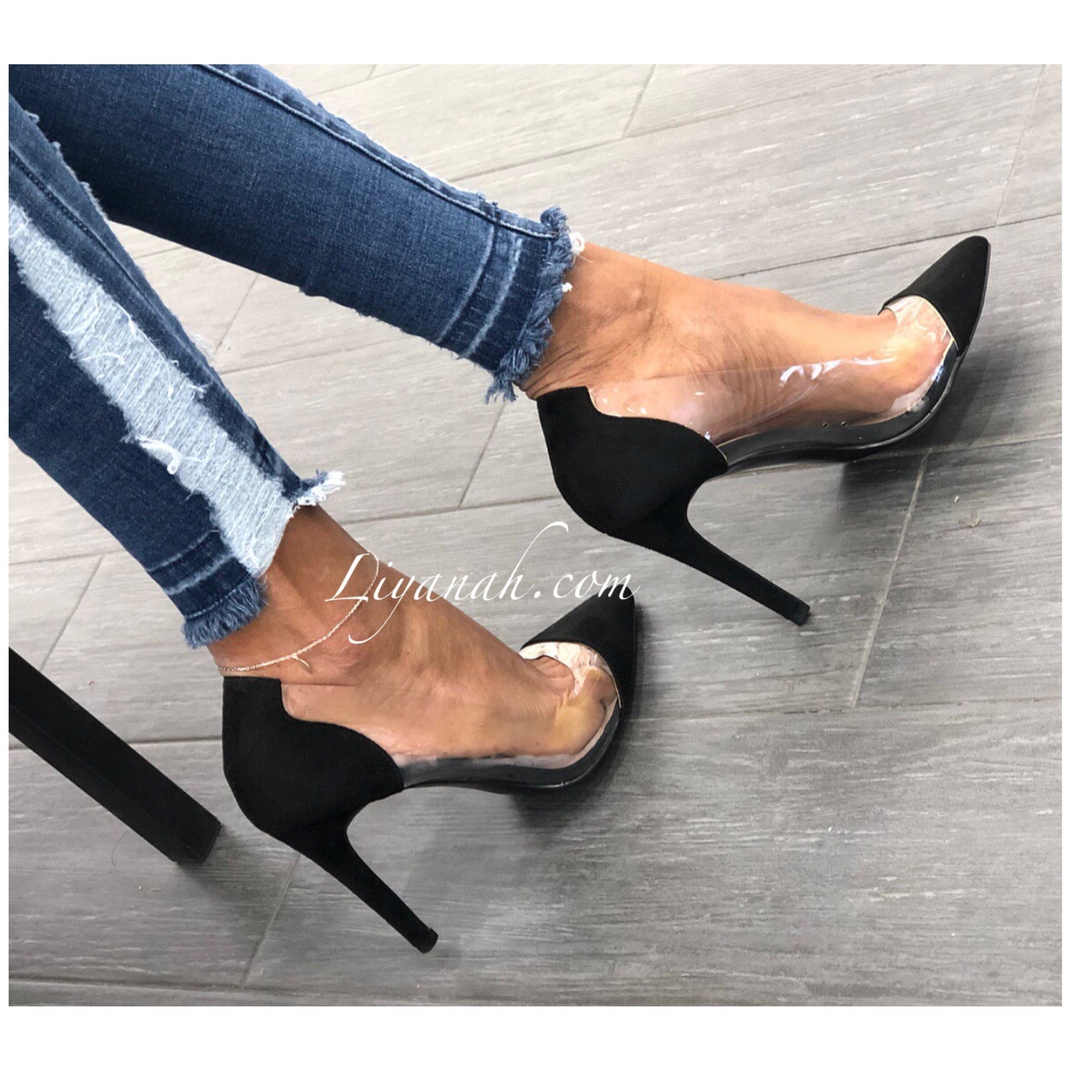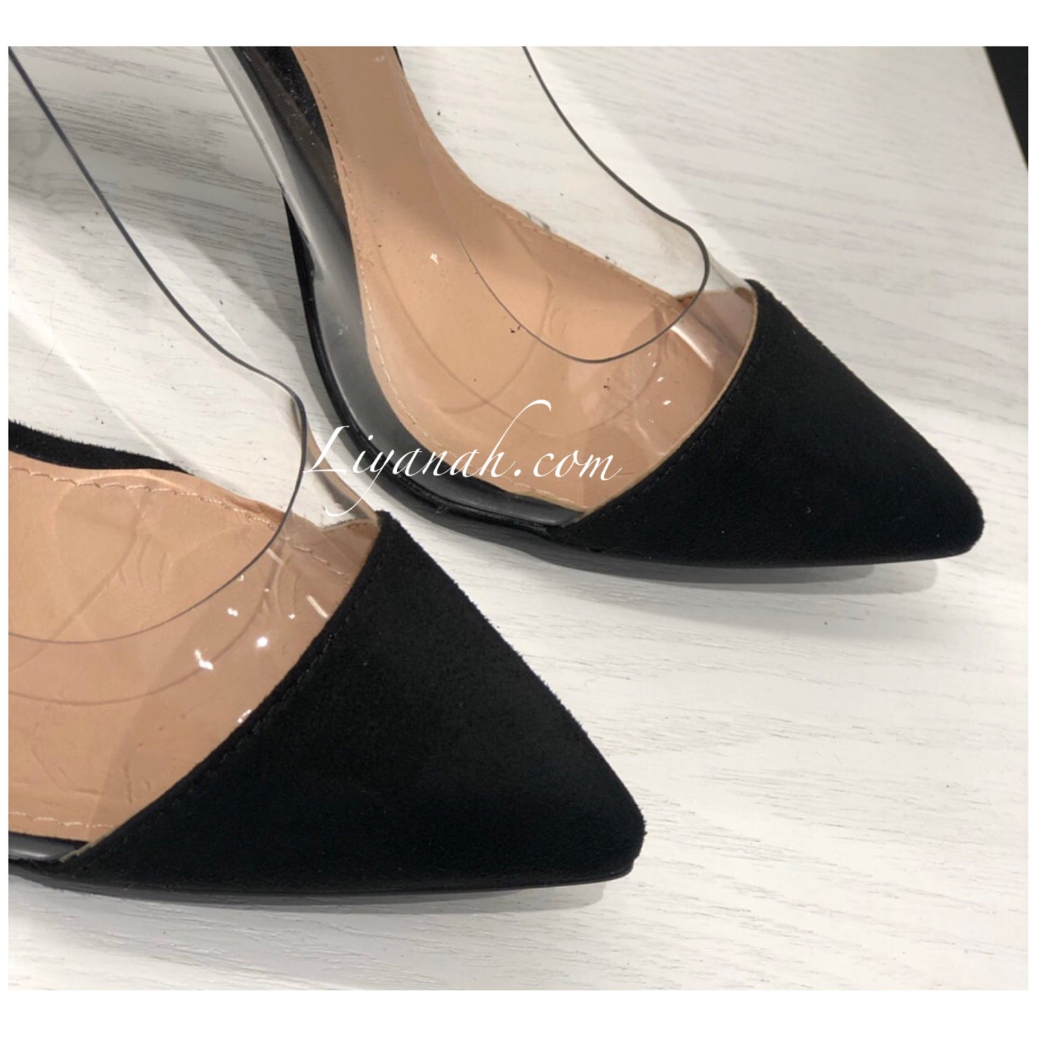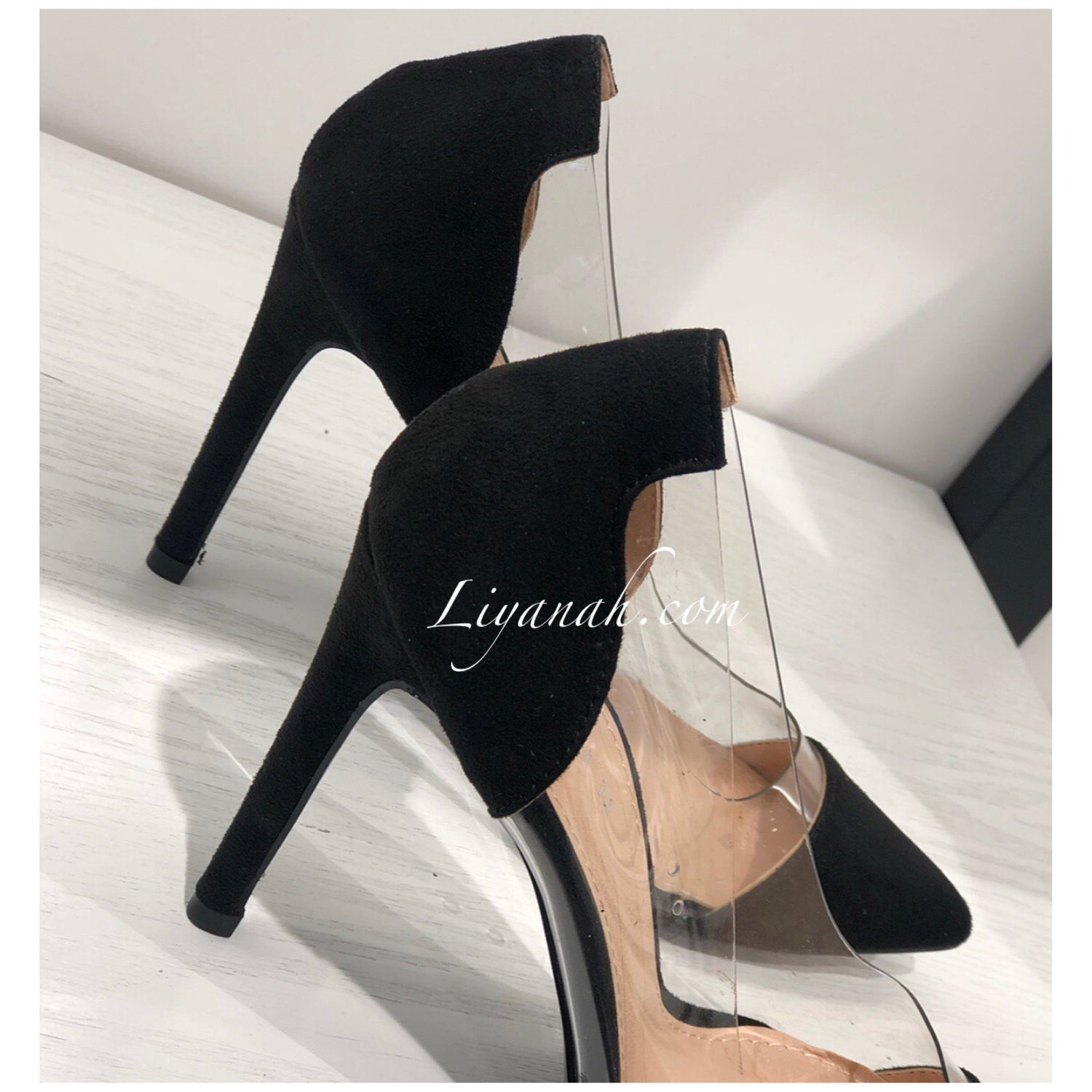 Escarpins Bi-Matière Transparents / Aspect Daim Modèle KAYMA NOIR - Nouveau phénomène de mode en transparence 🖤 Escarpins Transparents à Talons hauts (2 petits trous sur le côté qui permettent l’aération pour éviter la transpiration), aspect Daim à l’avant et à l’arrière ✖️ Hauteur du Talon : 10 cm - Pointures du 36 au 41 (Pour des raisons d'hygiène, les sandales ne sont ni repris ni échangé) Conseil : Prenez votre taille habituelle, ce modèle taille normalement