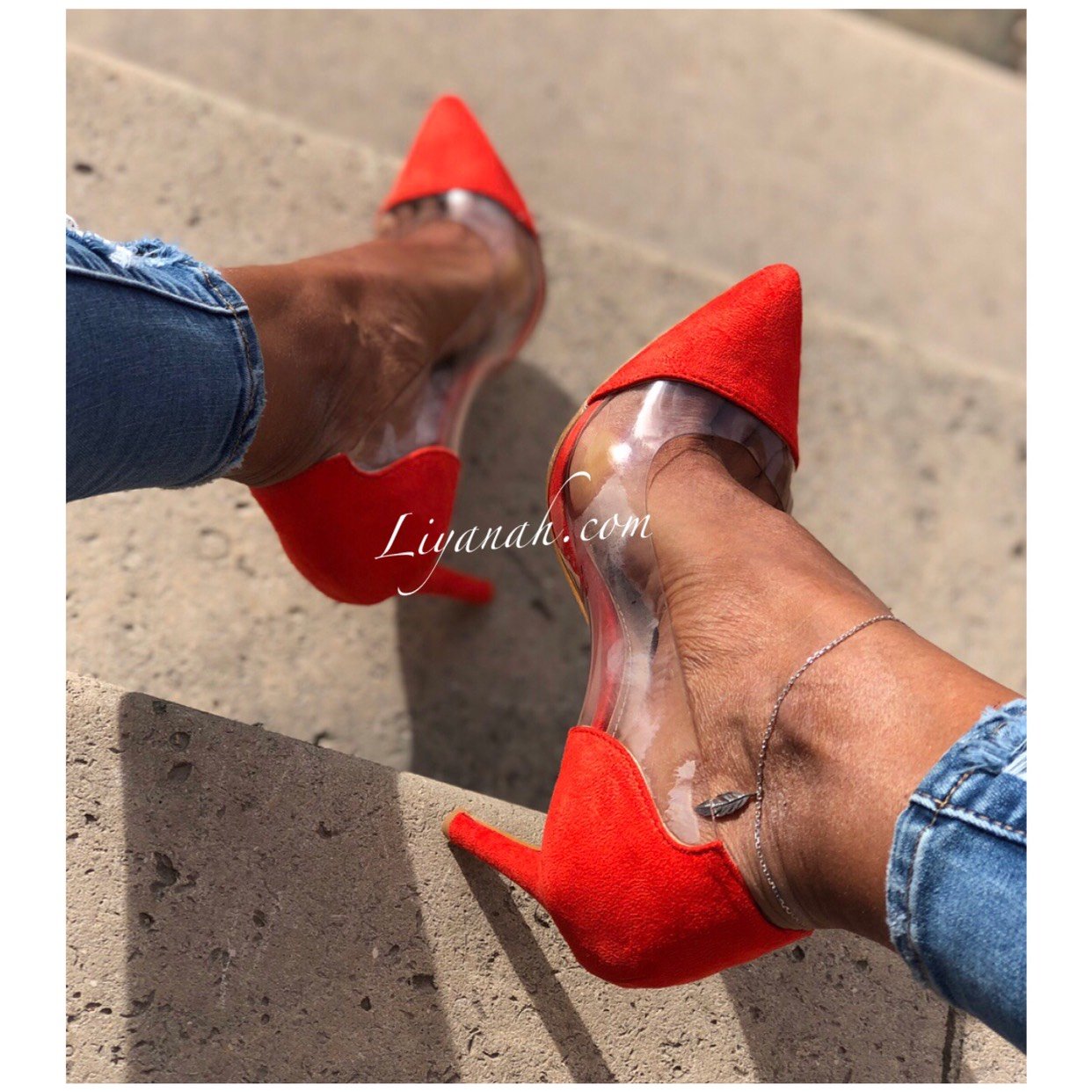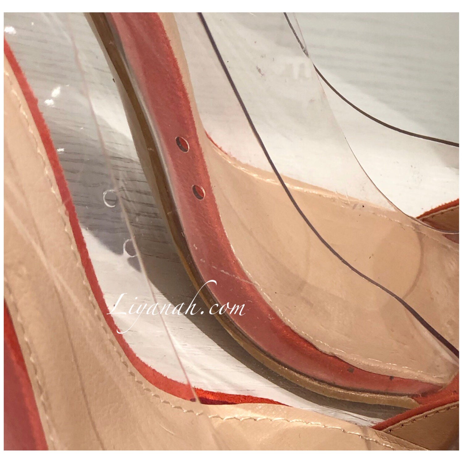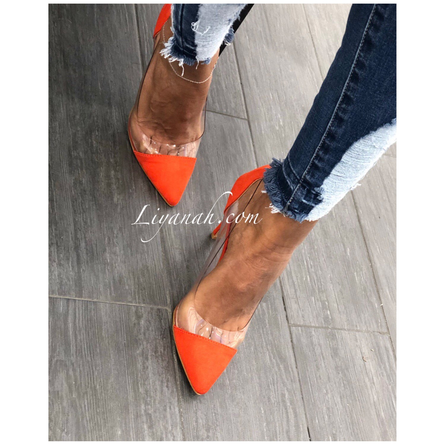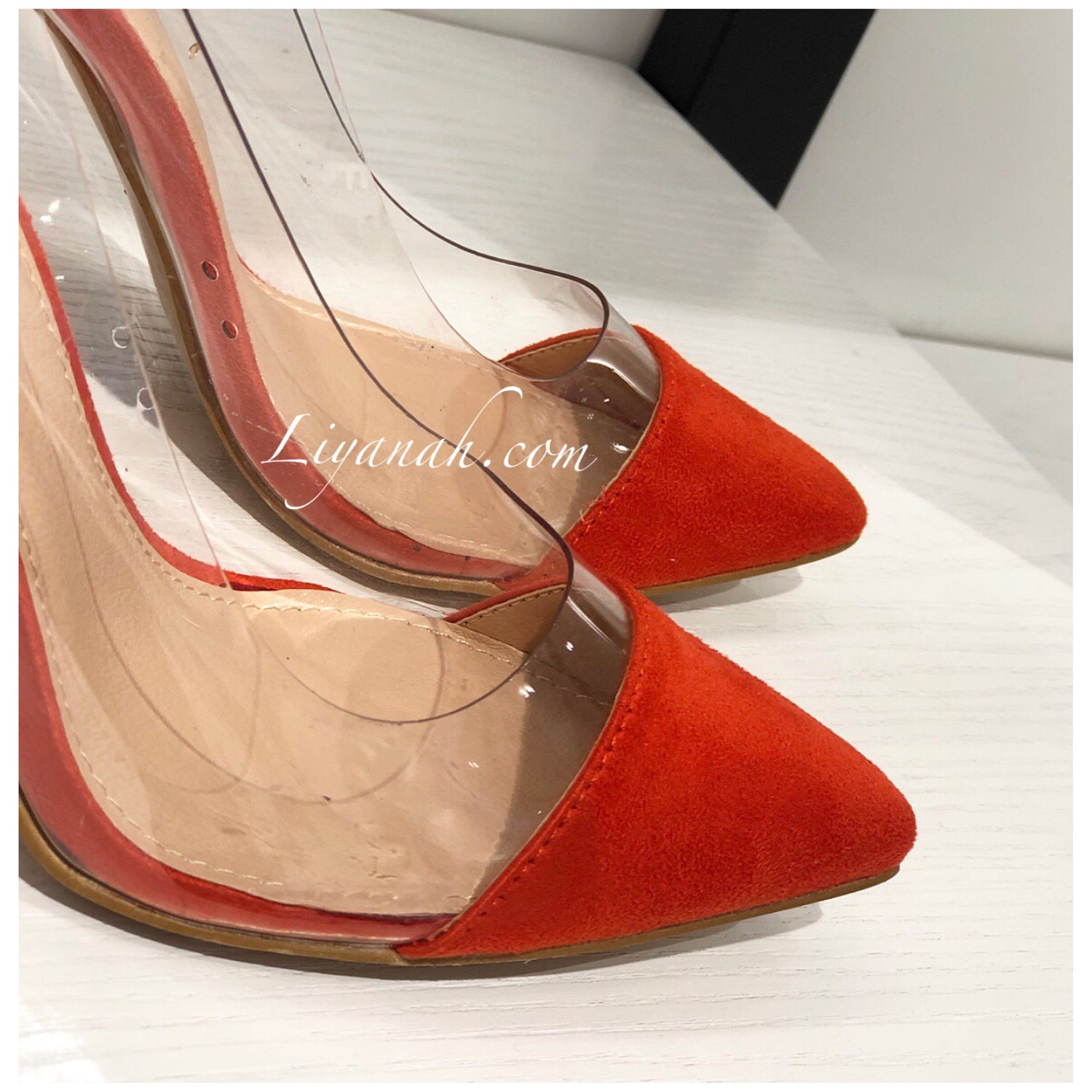 Escarpins Bi-Matière Transparents / Aspect Daim Modèle KAYMA ORANGE - Nouveau phénomène de mode en transparence - Escarpins Transparents à Talons hauts (2 petits trous sur le côté qui permettent l’aération pour éviter la transpiration), aspect Daim à l’avant et à l’arrière ✖️ Hauteur du Talon : 10 cm - Pointures du 36 au 41 (Pour des raisons d'hygiène, les sandales ne sont ni repris ni échangé) Conseil : Prenez votre taille habituelle, ce modèle taille normalement