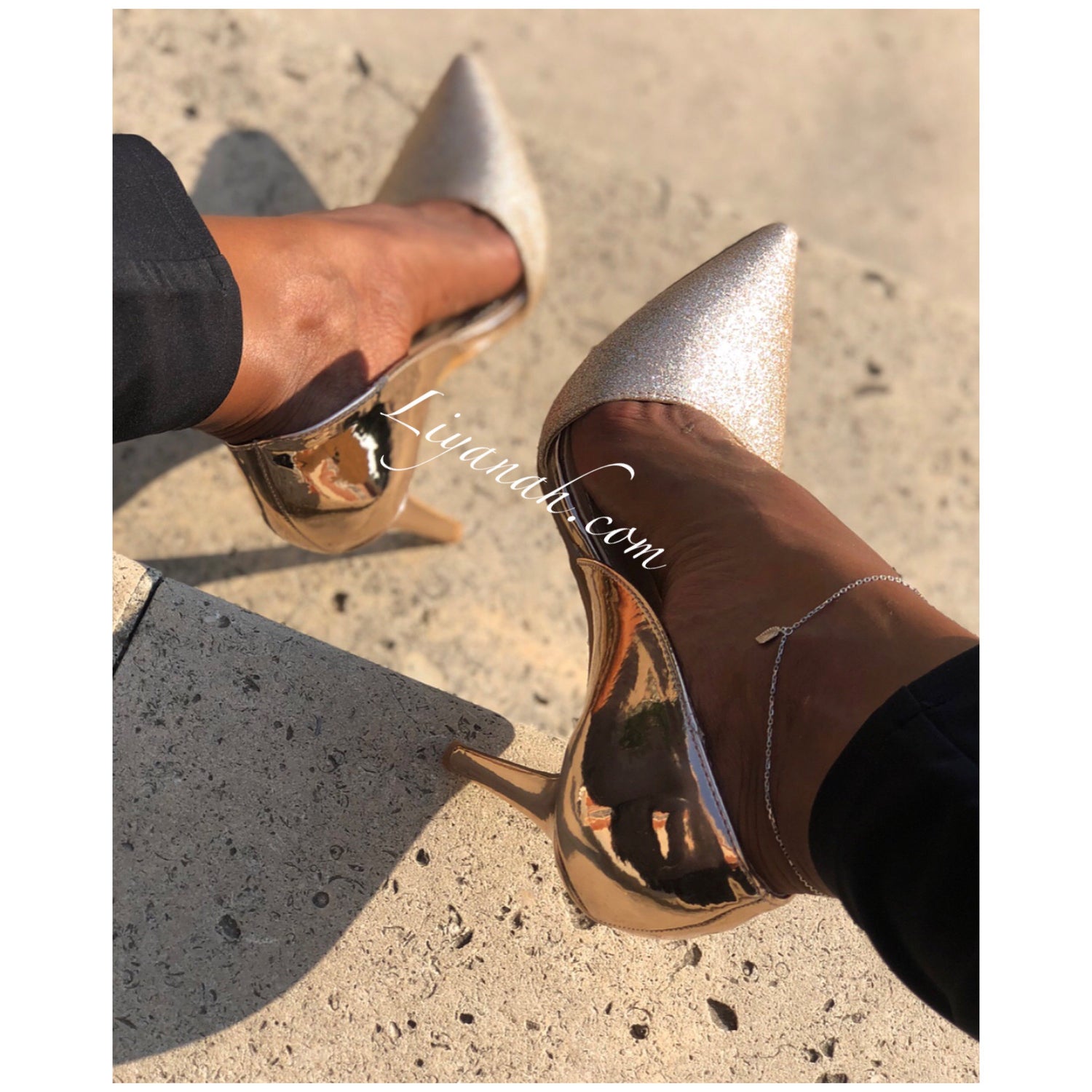 Alliant à la perfection confort et style, Elles sont Éblouissantes !!! CHIC ET GLAM !!! 🌸 BI-MATIÈRE !! À l’arrière aspect cuir (synthétique) et à l’avant Pailleté - hauteur du talon ~ 10 cm ➰ Pointures du 36 au 41 (Pour des raisons d'hygiène, les sandales ne sont ni repris ni échangé) Conseil : Prenez votre taille habituelle et si vous êtes sur du demi prenez une taille au dessus ✖️ Disponible en Rose Gold ou Noir (LA COULEUR EST BIEN ROSE GOLD EN PHOTO SA FAIT UN PEU OR)