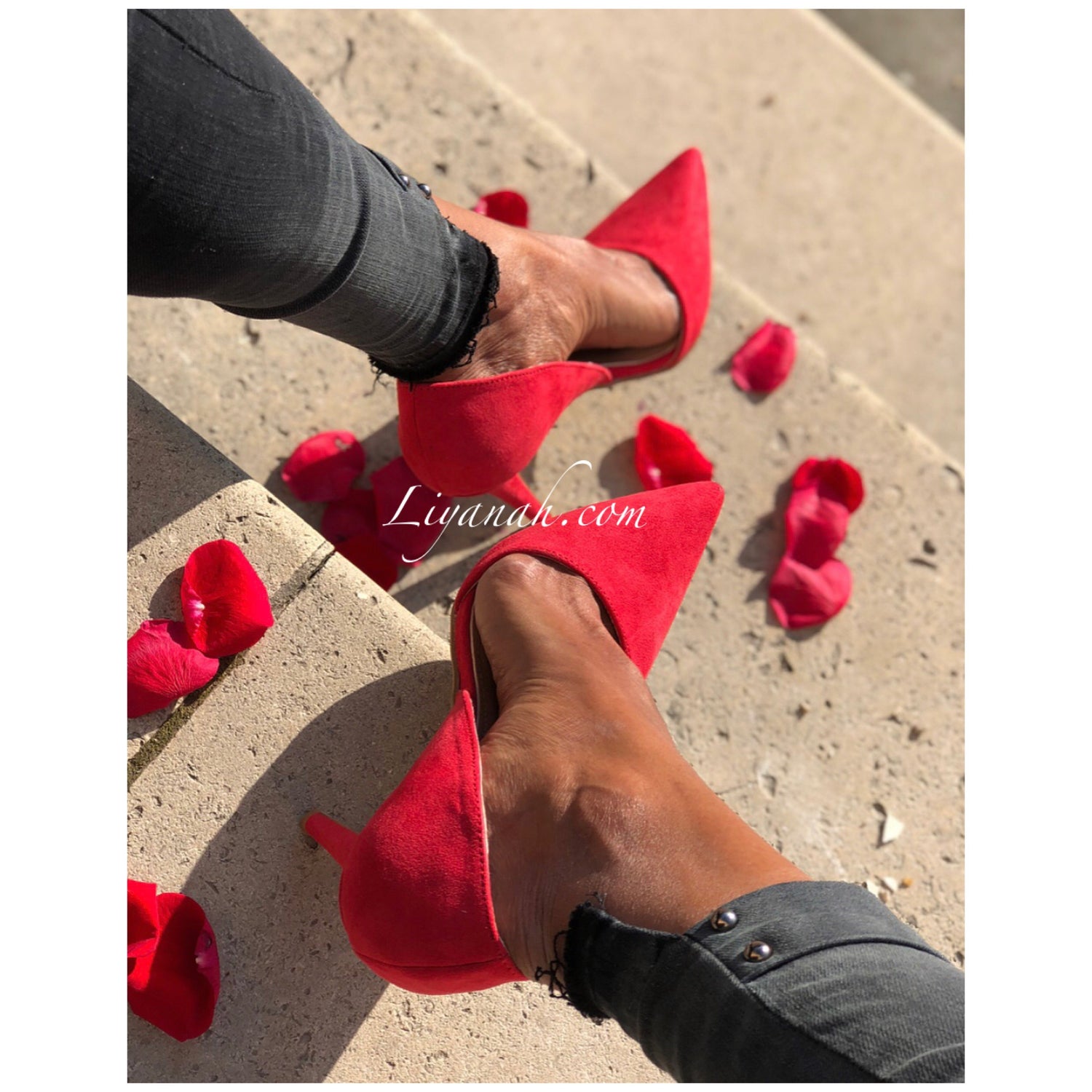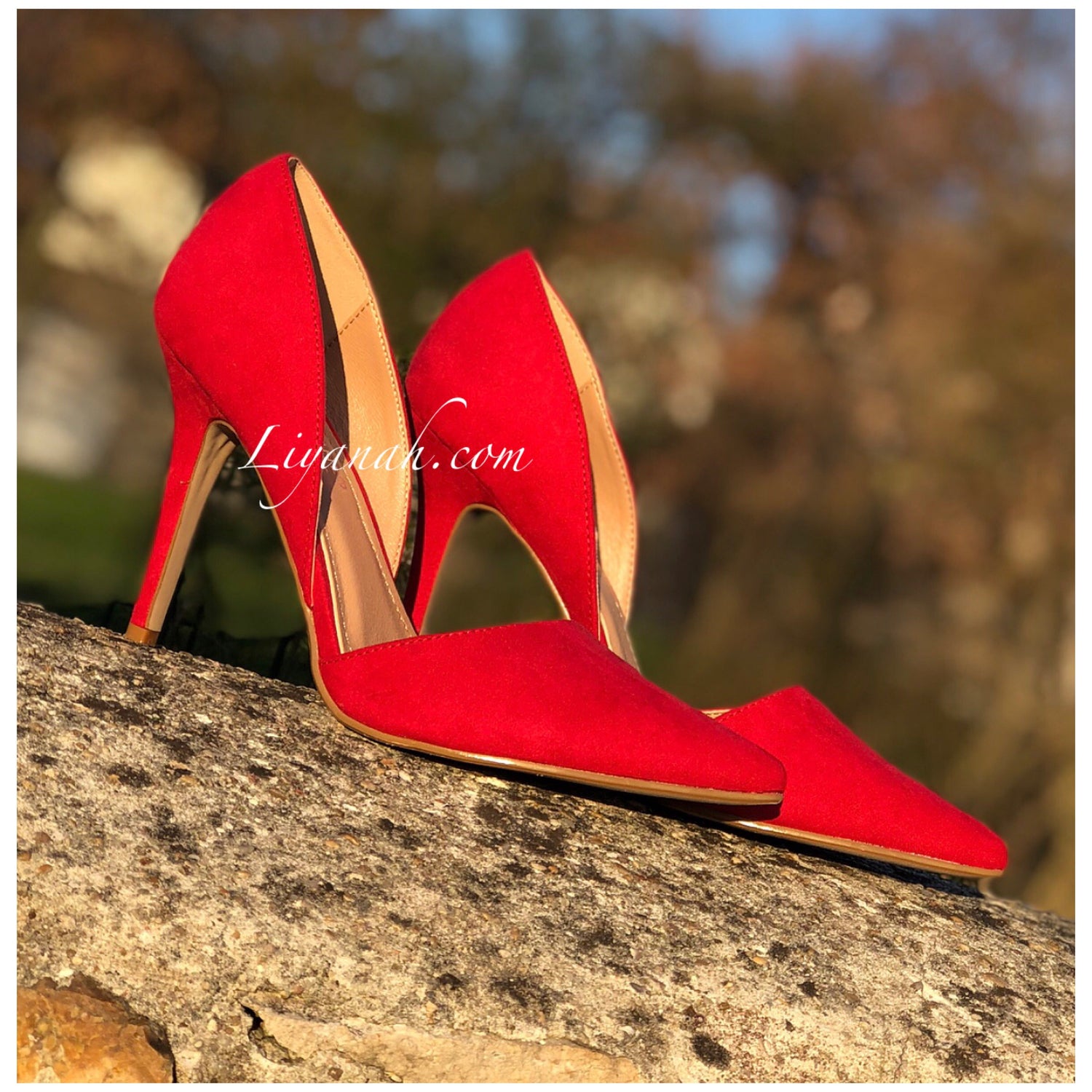 ESCARPINS Modèle ABIEL ROUGE Alliant à la perfection confort et style, Elles sont Éblouissantes !!! CHIC ET GLAM !!! ❤️ Aspect Daim !!! hauteur du talon ~ 10 cm ➰ Pointures du 36 au 41 (Pour des raisons d'hygiène, les sandales ne sont ni repris ni échangé) Conseil : Prenez votre taille habituelle et si vous êtes sur du demi prenez une taille au dessus