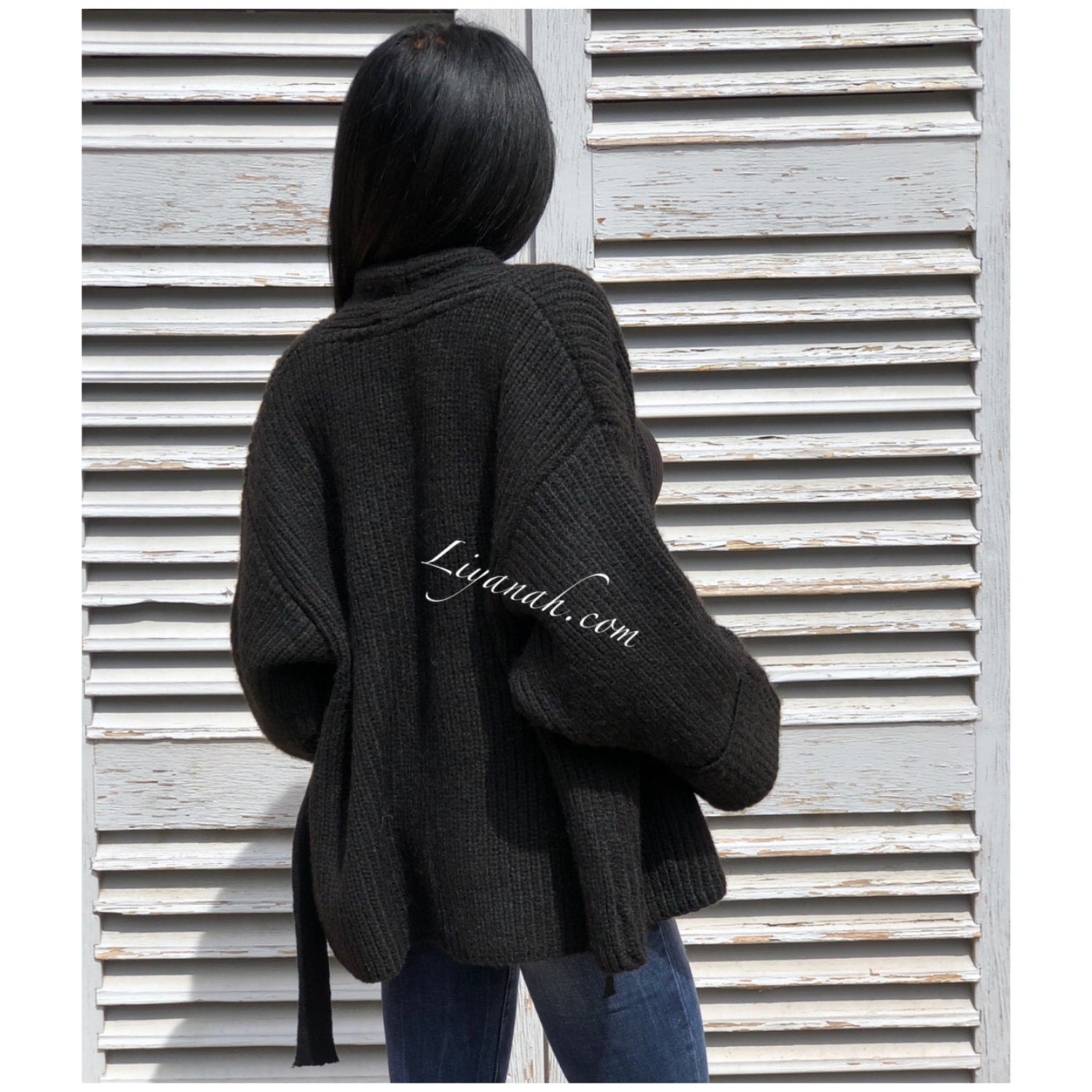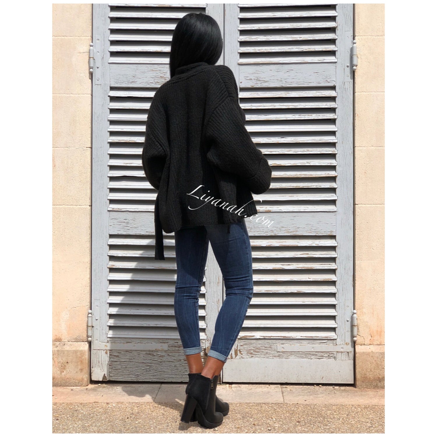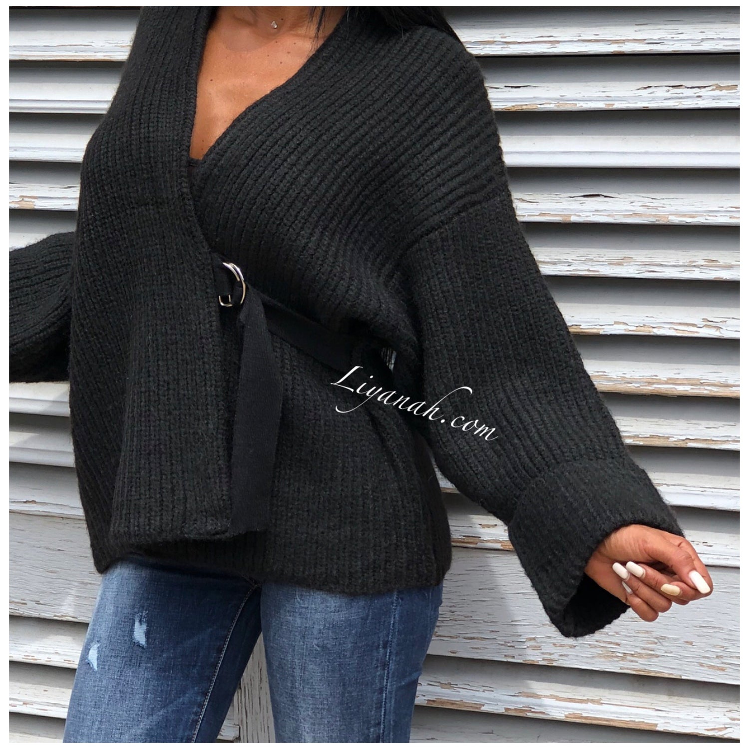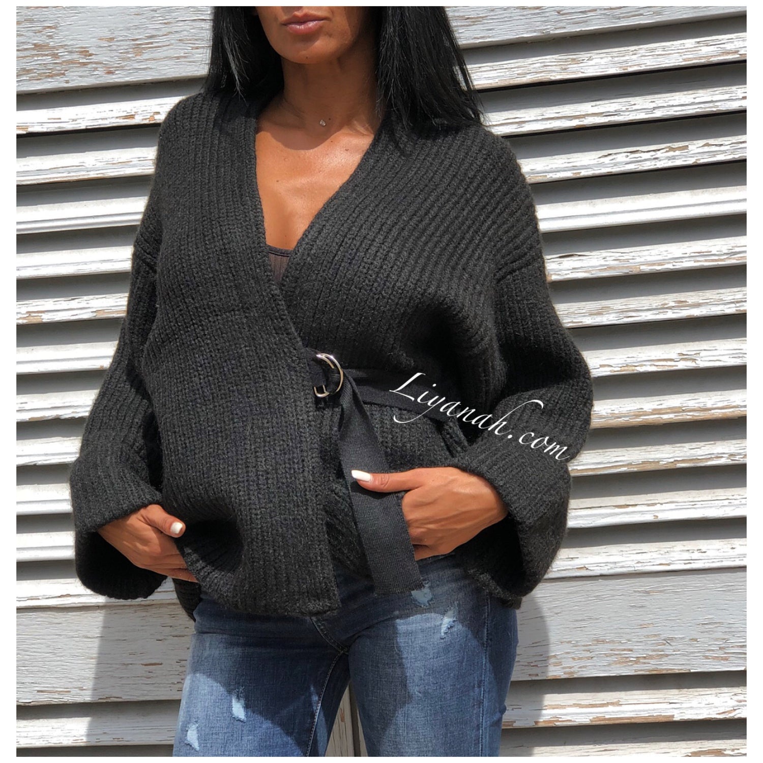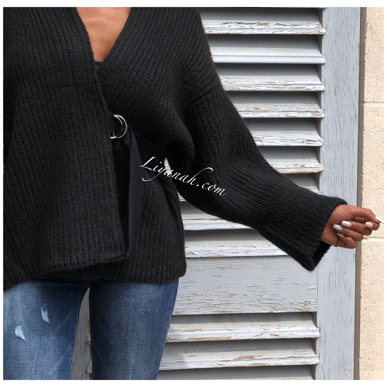 Gilet Cache Cœur Modèle LYRILA NOIR Gilet en maille épaisse, tout doux et tout chaud 🌸 coupe courte oversize et manches larges - noeud intérieur et extérieur avec anneaux ✖️ Longueur : 72 cm - 20% LAINE 30% Viscose 50% Acrylique - Taille SM ou ML ❤️ POUR UN STYLE DÉCONTRACTÉ AVEC ÉLÉGANCE