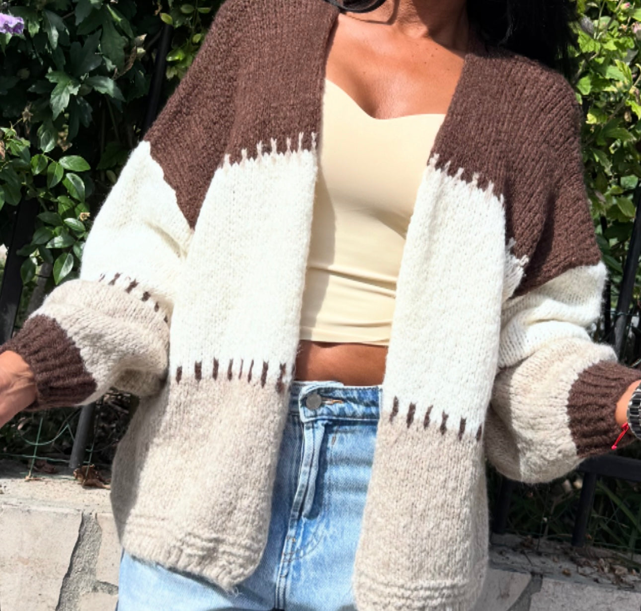 Gilet multicolore Marron, Blanc, Crème YOLA