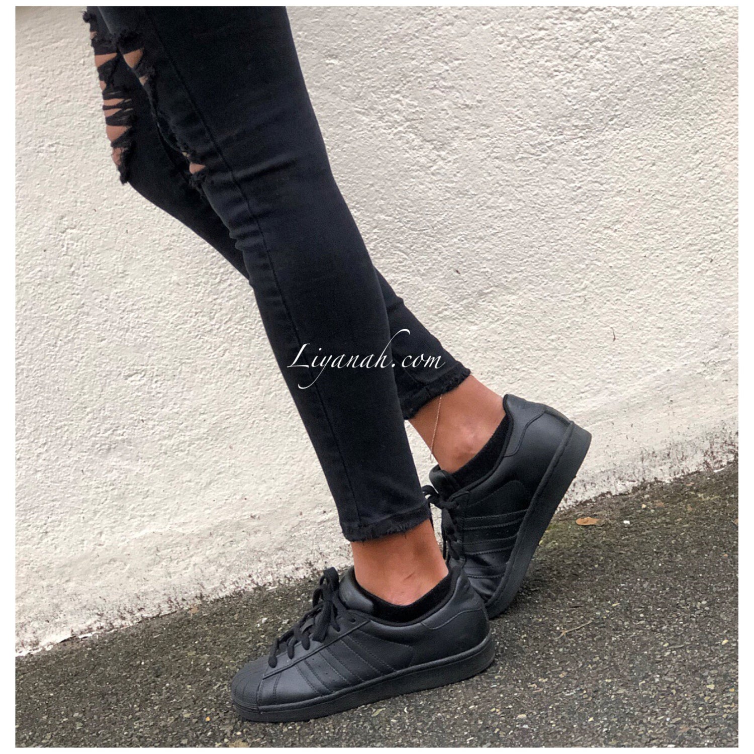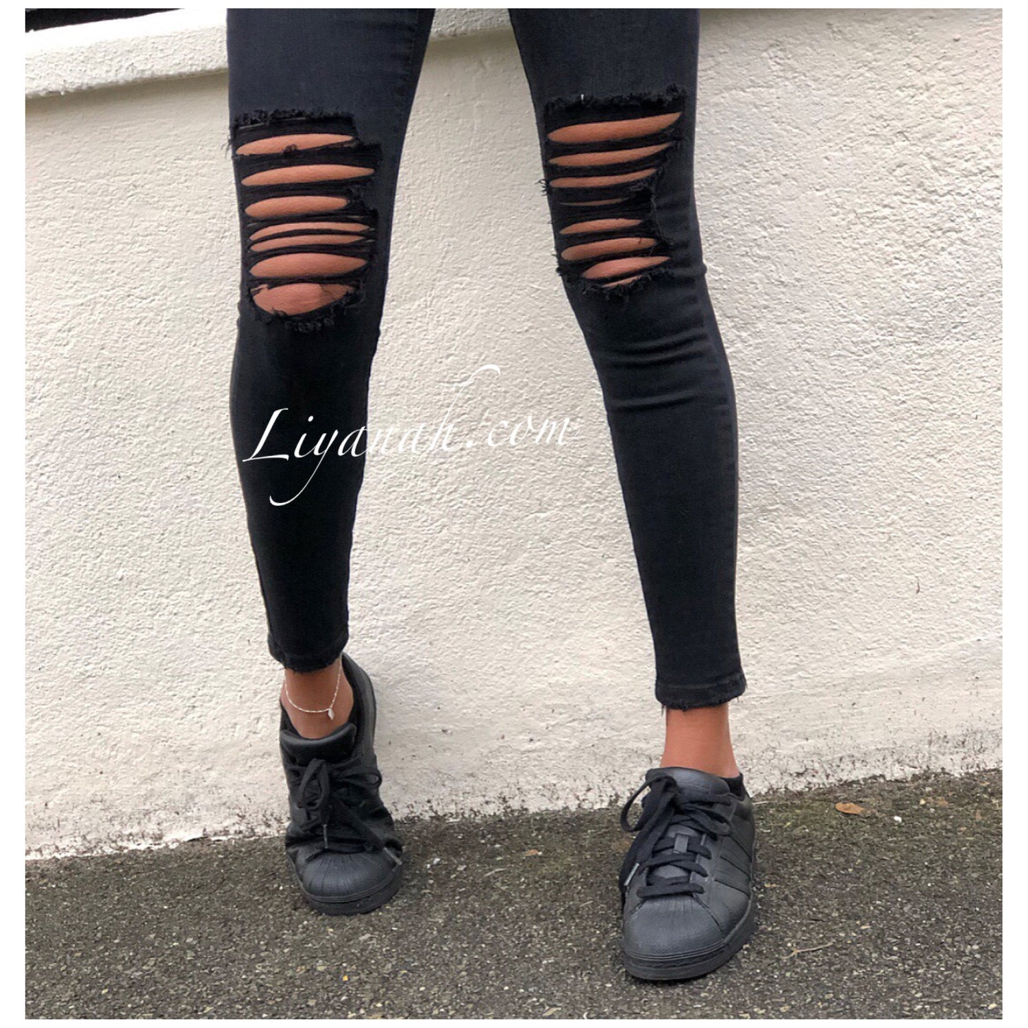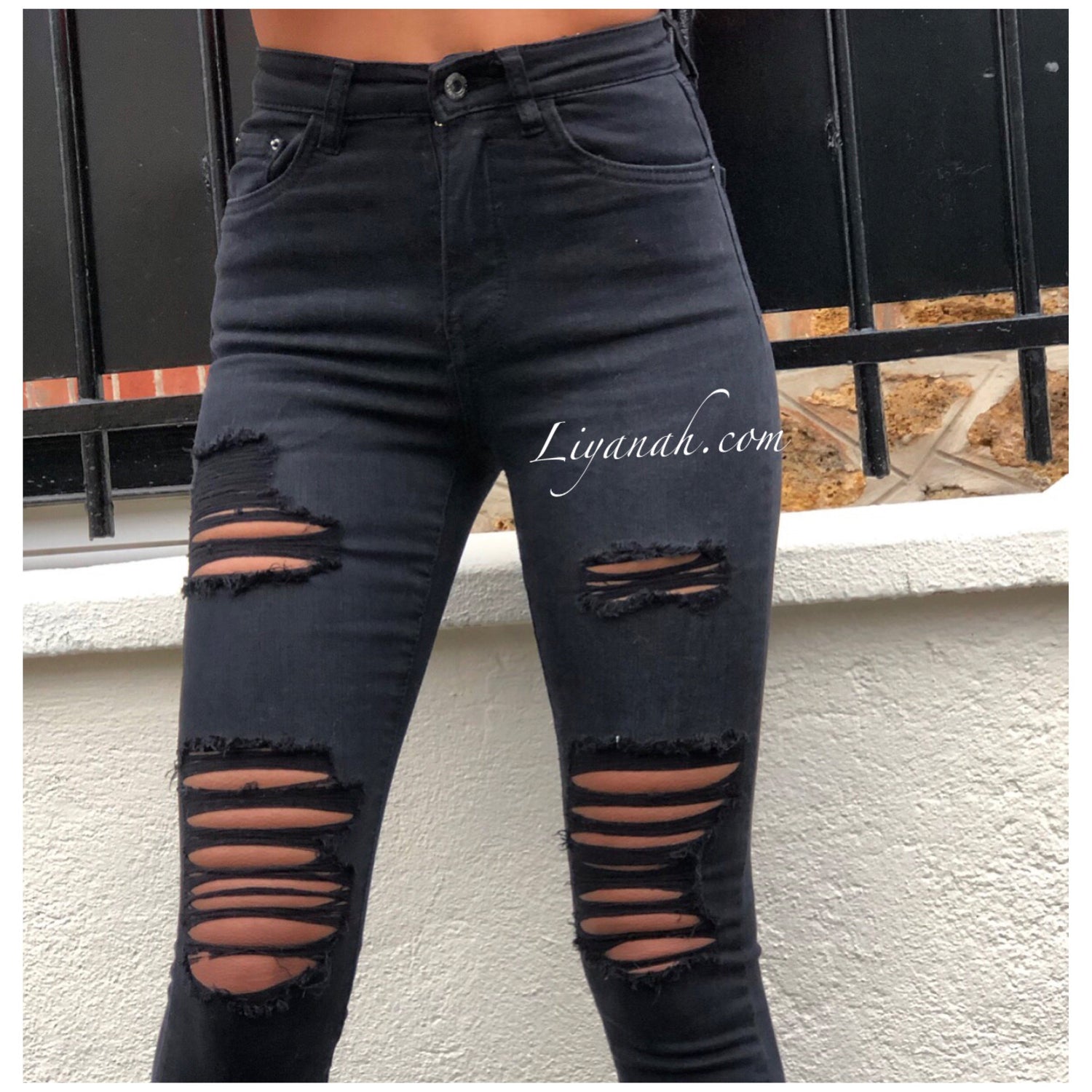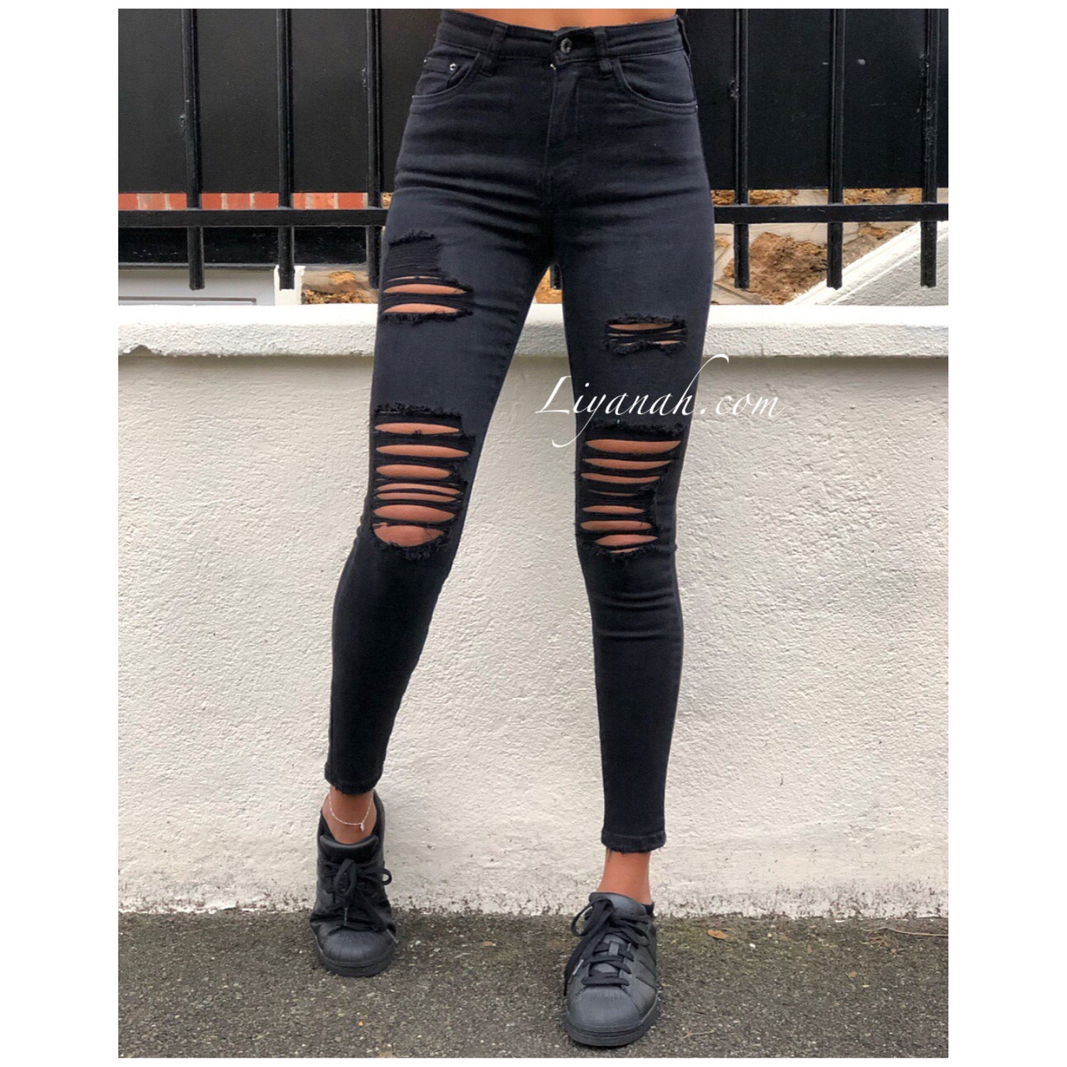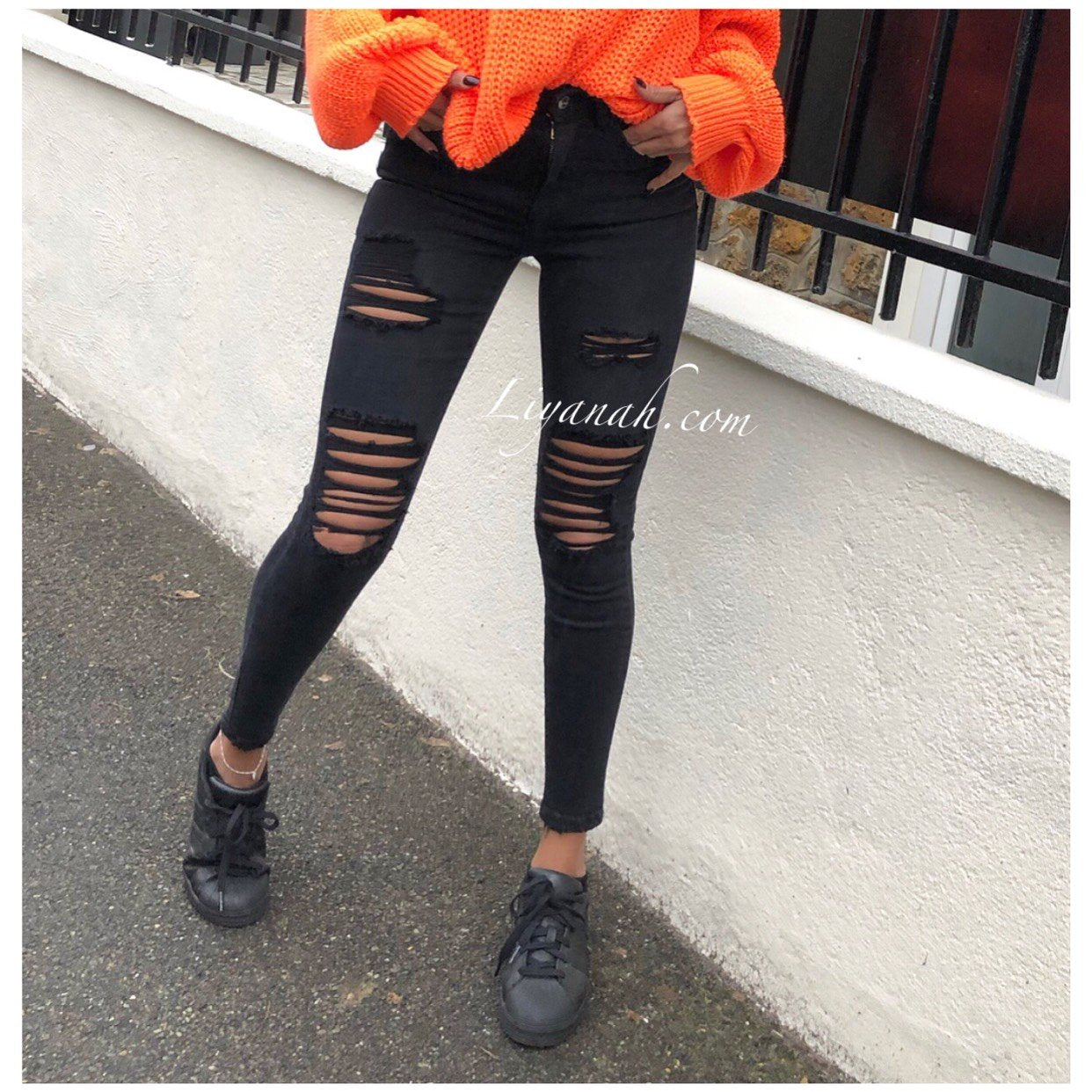 Jean Skinny BLACK DESTROY TAILLE MI-HAUTE Modèle SEYARA 🖤 On a totalement craquée sur ce modèle noir légèrement chiné avec ses déchirures ✖️Women's Black Jeans - Coupe près du corps et TAILLE MI HAUTE !!! 66% COTTON 32% Polyester 2% Elasthanne !!! Taille XS AU XL