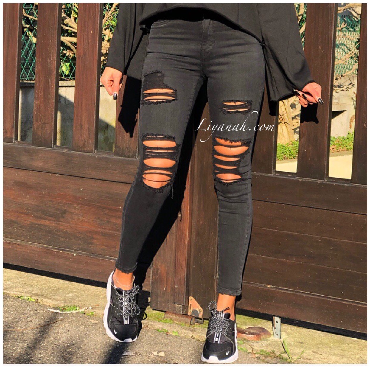 Jean Skinny BLACK DESTROY TAILLE MI-HAUTE Modèle SEYARA