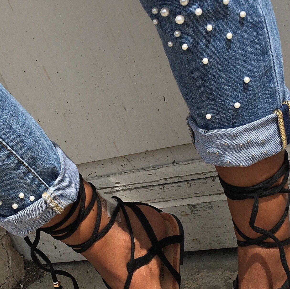 Détails : Perles sur Tout l'avant Du jean Et revers 💋