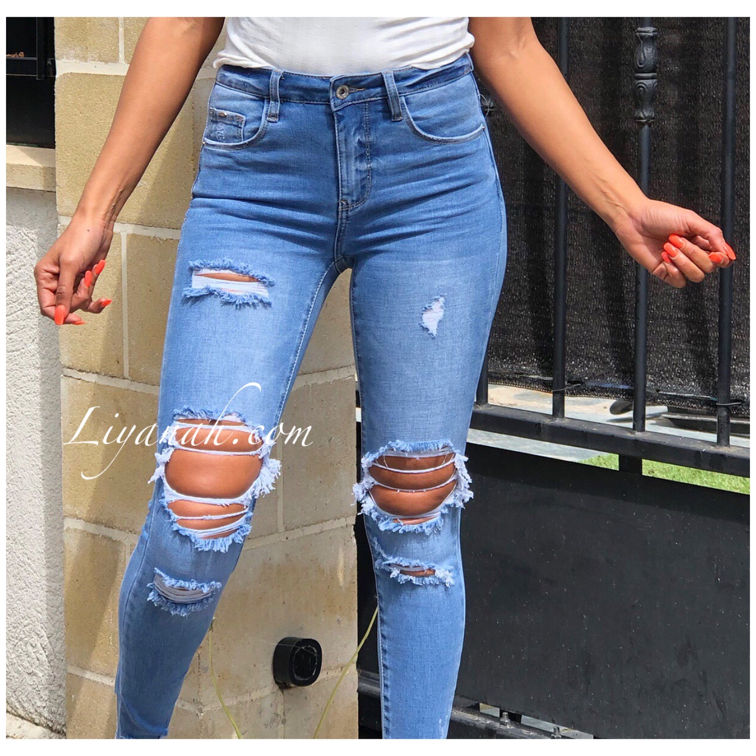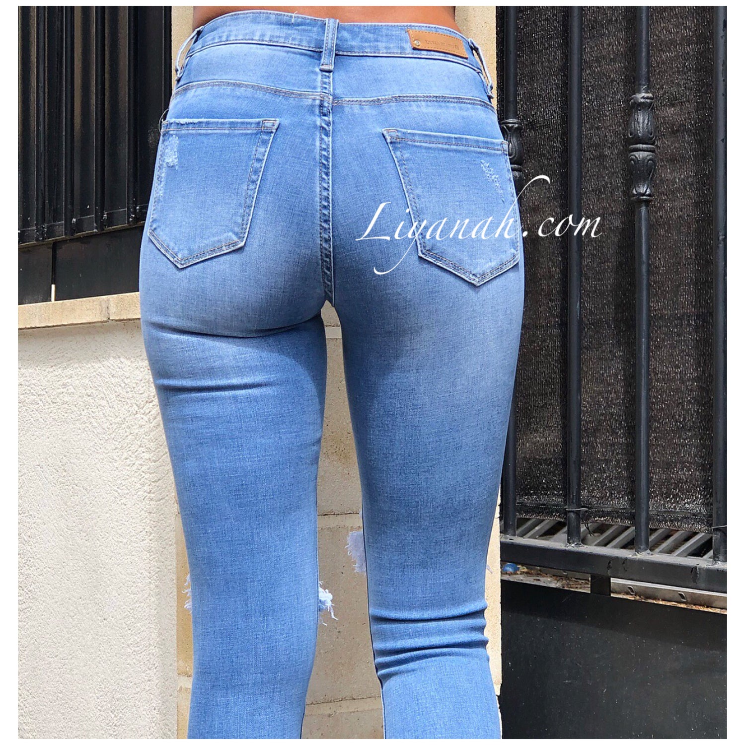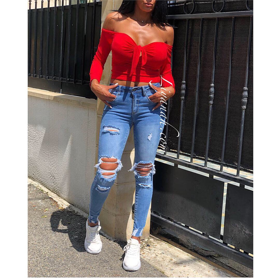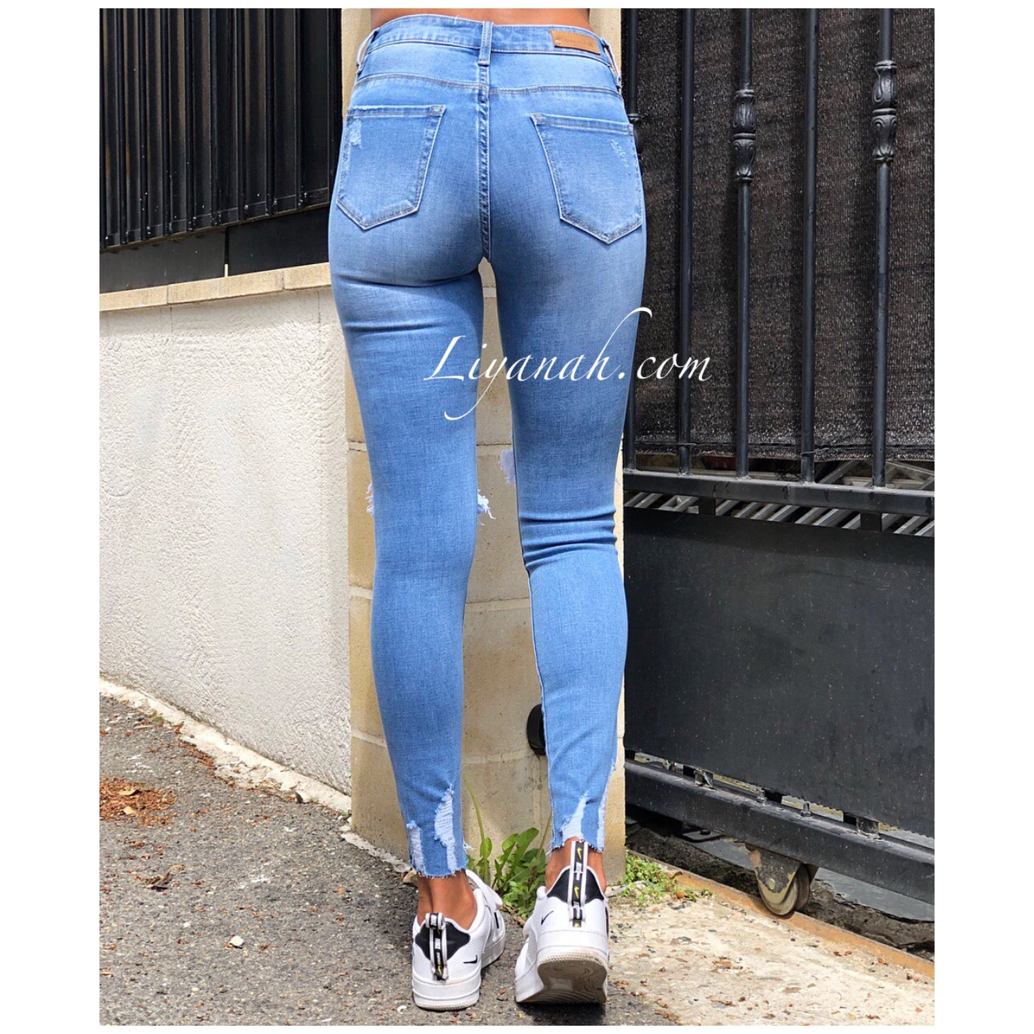 Jean Skinny DESTROY BLUE Modèle FOZARA Détails : Déchirures !!! Taille Normal sur le nombril - Women's Blue Jeans (Bleu) Coupe droite, Jean SKINNY - Coupe près du corps !!! 90% COTTON 8% Polyester 2% Elasthanne (Du XS au XL)
