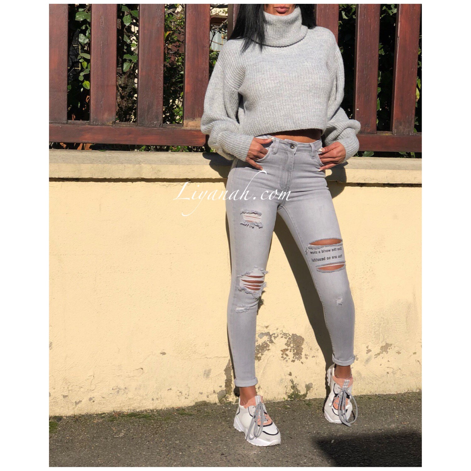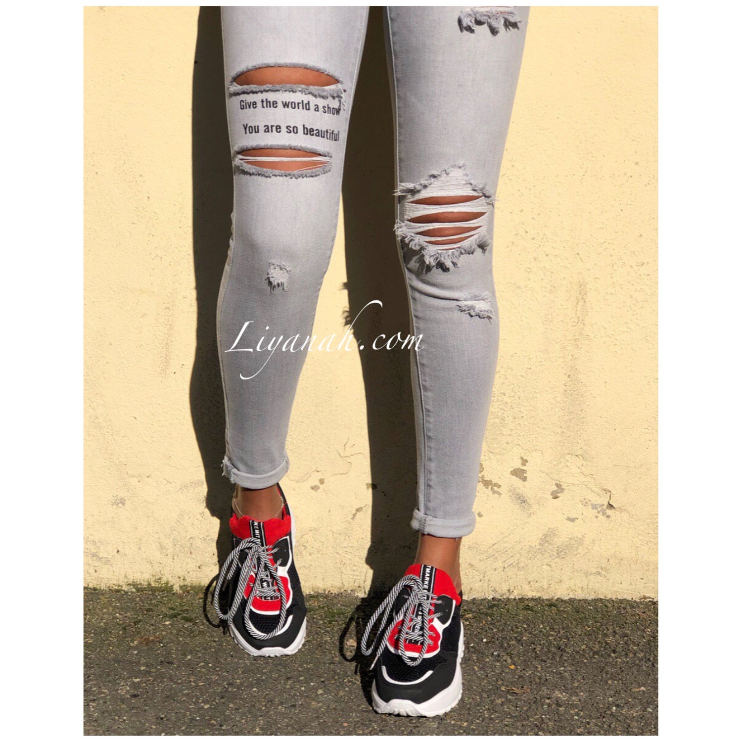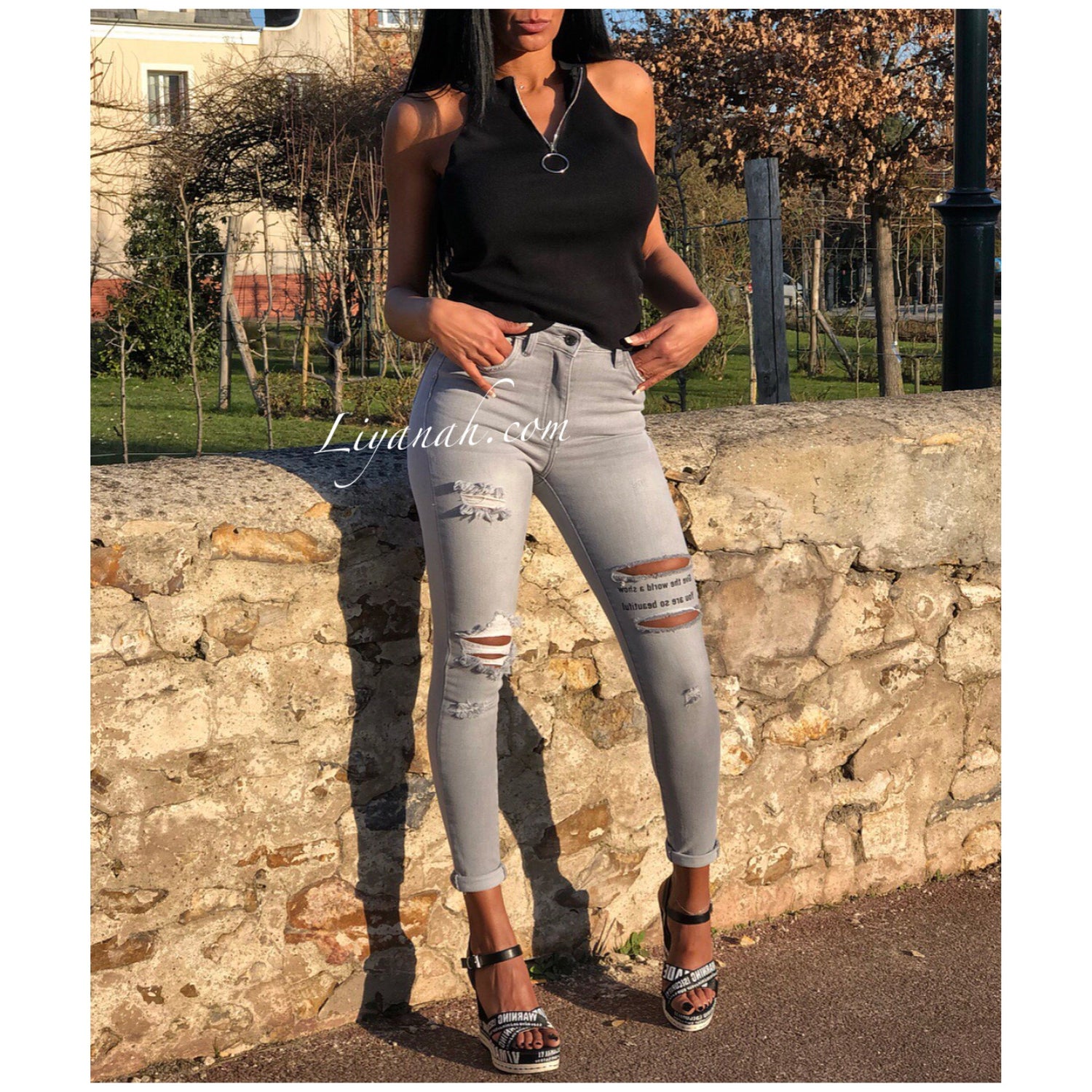 Jean Skinny DESTROY / GRIS CLAIR Modèle WAYA avec écritures - Détails : Déchirures et écritures «Give the World a Show ... You are Beautiful » GRIS TRÈS CLAIR - Coupe droite, Jean SKINNY Coupe près du corps !!! 93^ COTTON 5% LYCRA 2% Elasthanne (Du XS au XL)