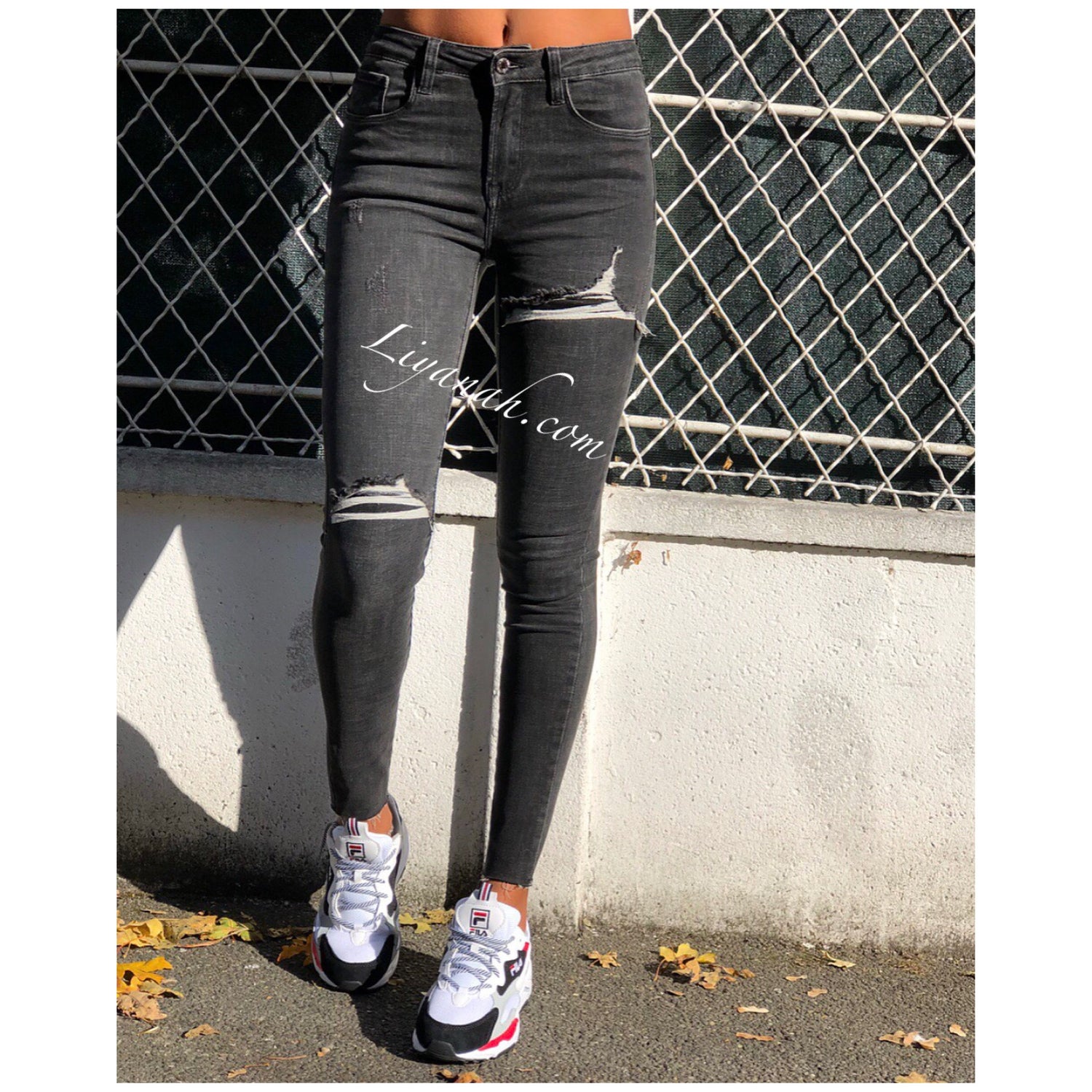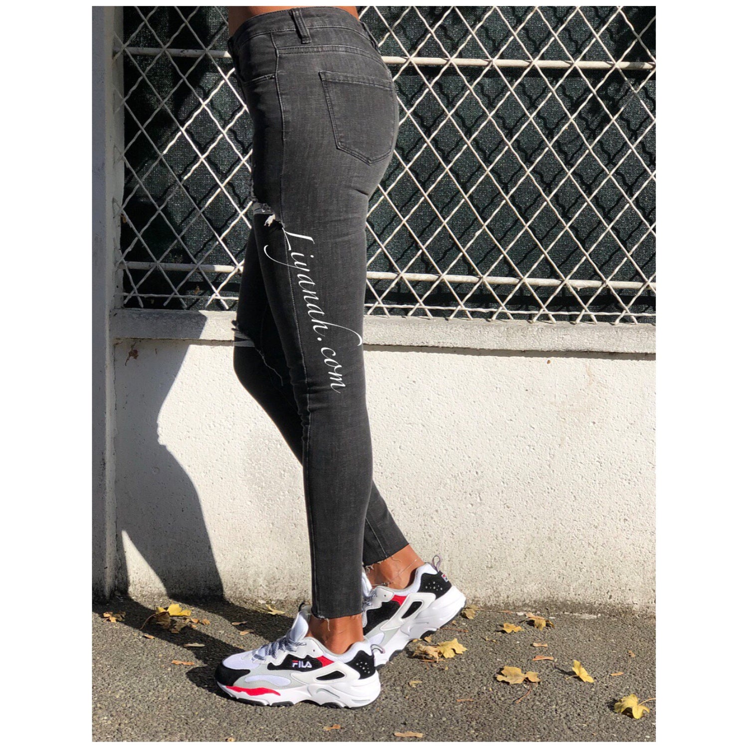 Jean Skinny DESTROY / GRIS Modèle NELYA