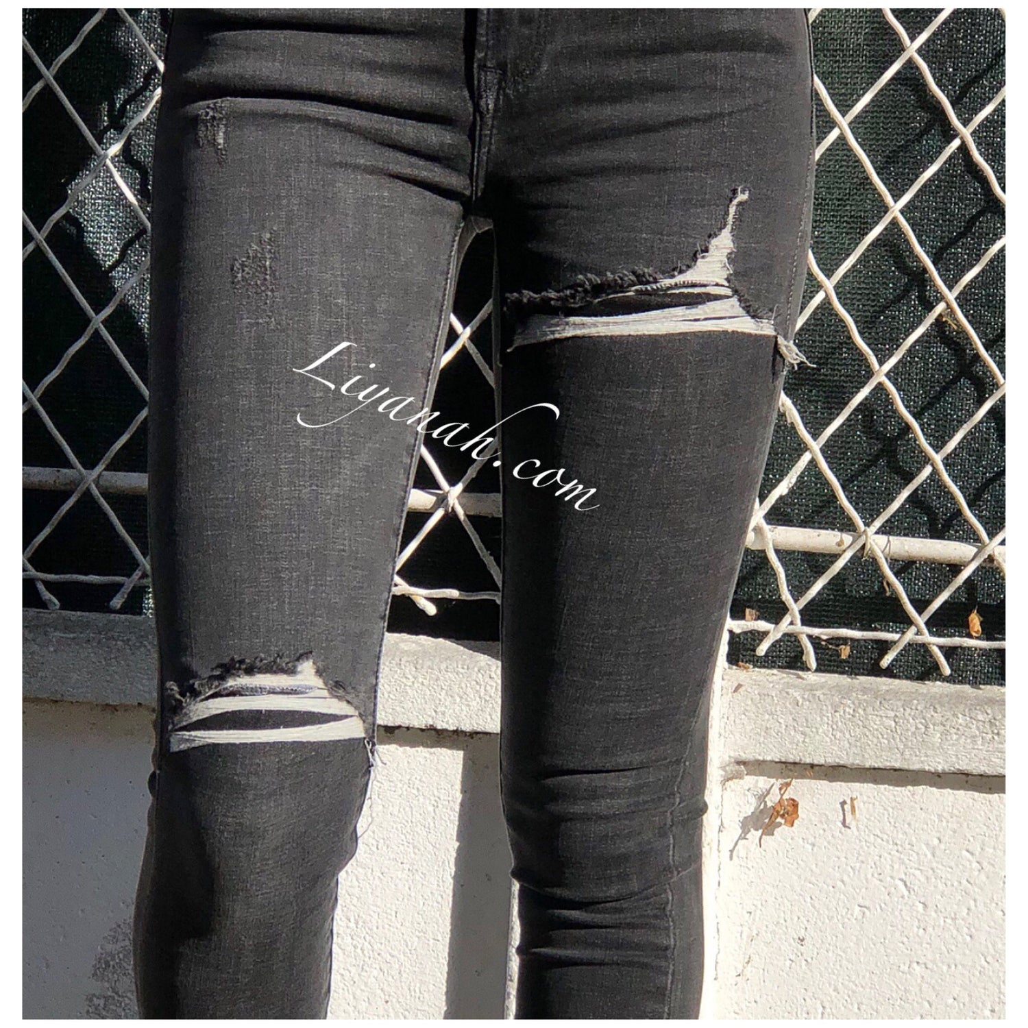 Détails : Déchirures cuisses et légèrement au dessus du genoux !! taille normal - Women's Grey Jeans - Coupe SKINNY, Coupe près du corps !!! 90% COTTON 8% Polyester 2% Elasthanne (Du XS au XL)