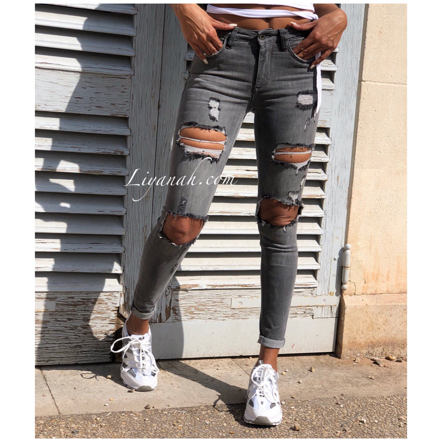 Jean Skinny GREY DESTROY Modèle ZURYELA