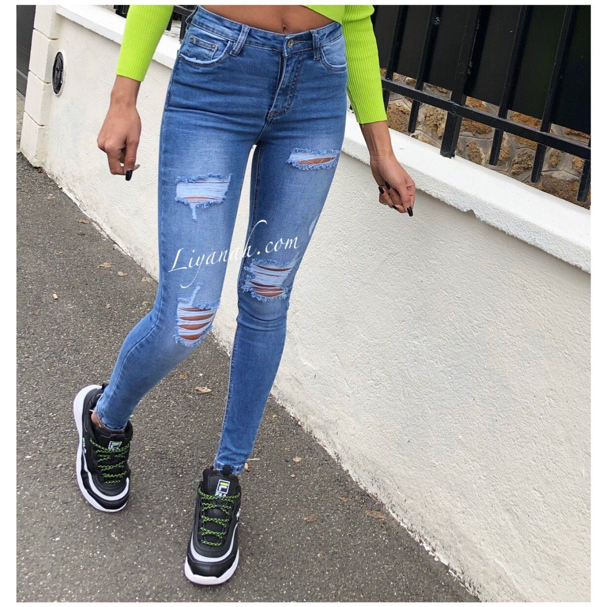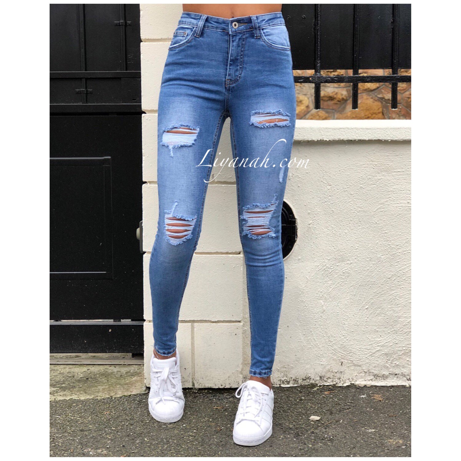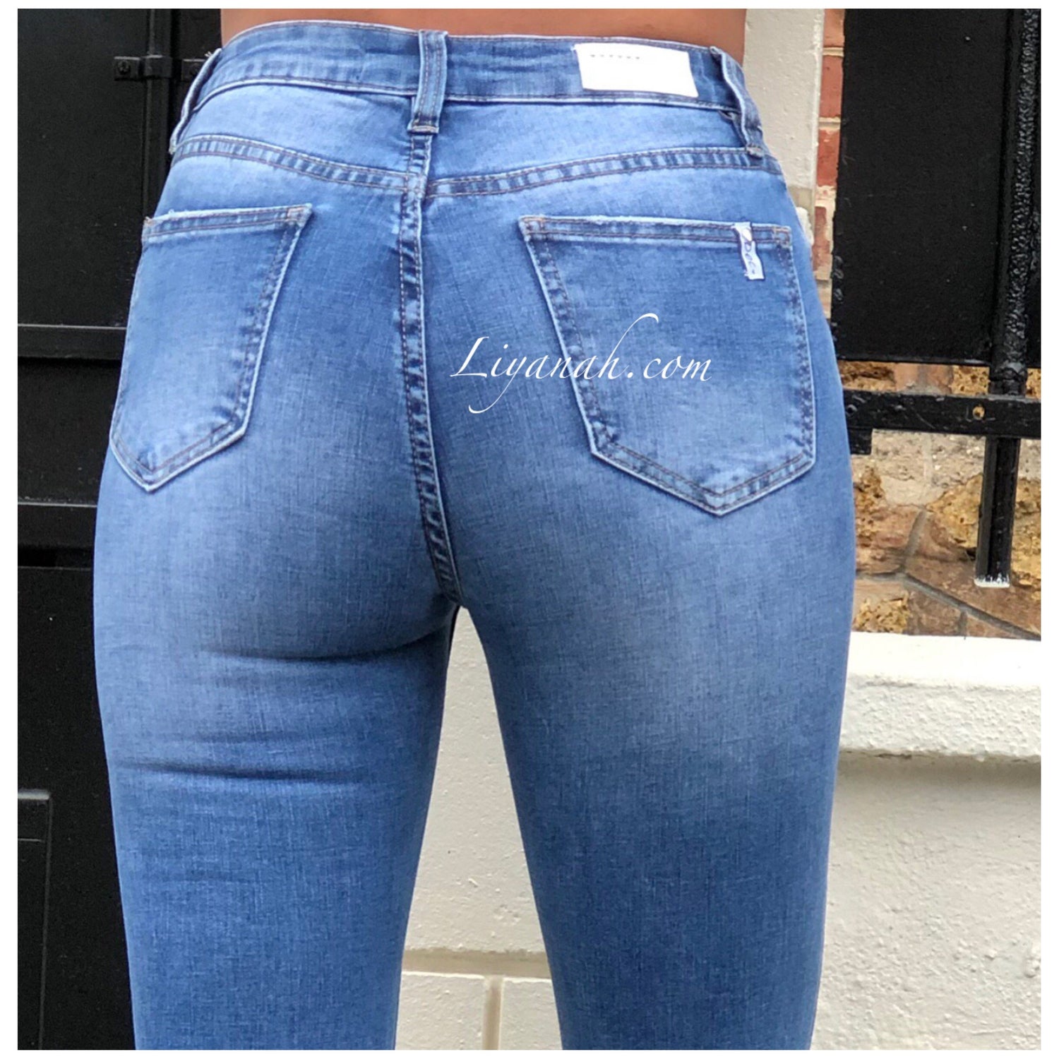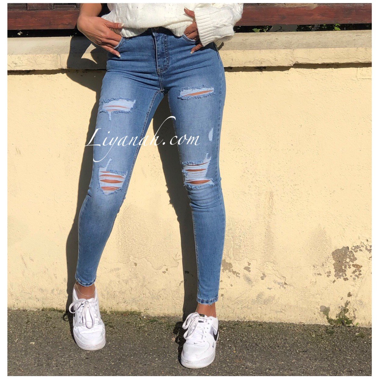 Jean Skinny LIGHT BLUE DESTROY TAILLE MI-HAUTE Modèle PRAYA