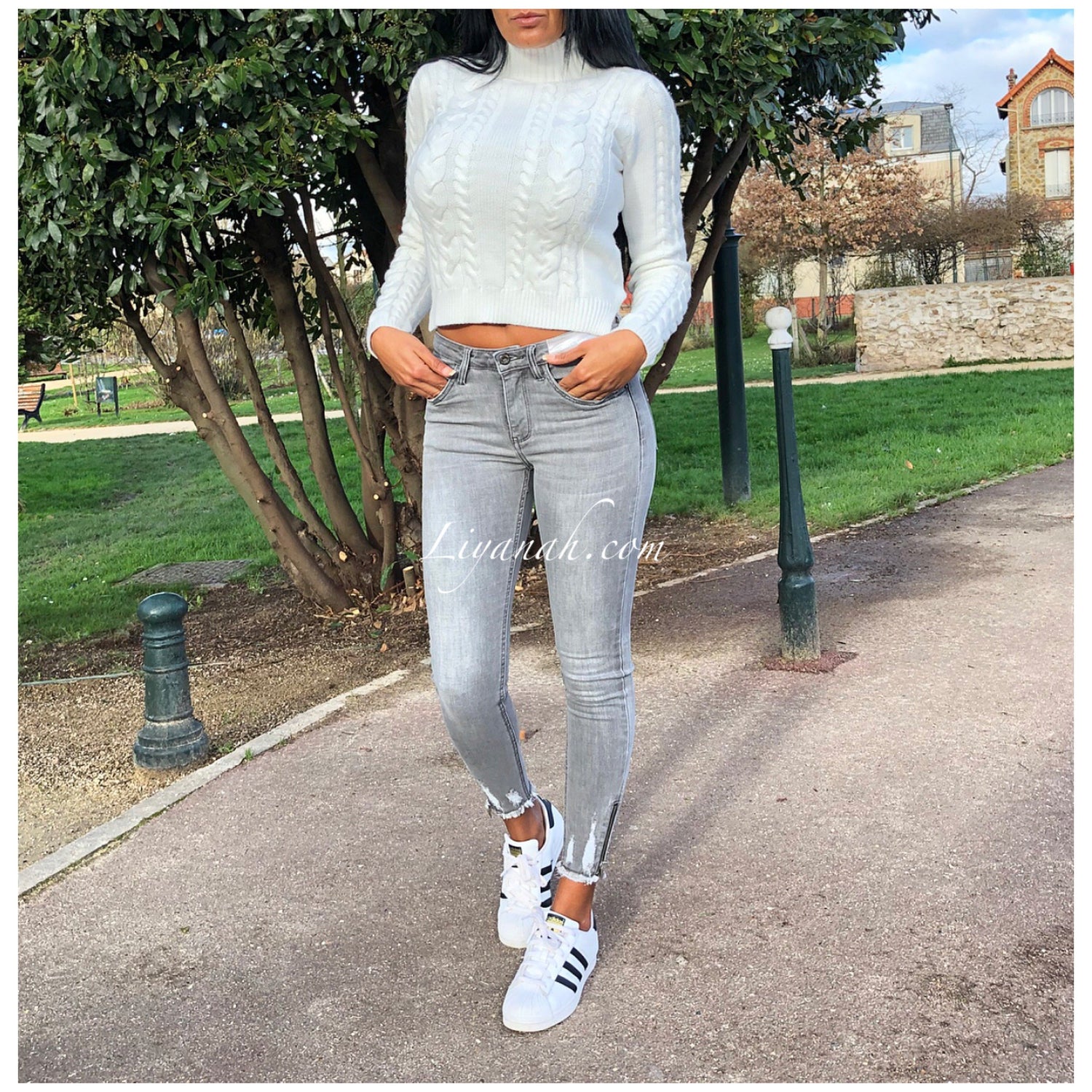 On est totalement dingue de ce jean !!! Un Modèle à avoir dans son dressing !!!! Coupe près du corps !!! GRIS !! Taille basse !! Détails ZIP aux chevilles - 90% COTTON 8% Polyester 2% Elasthanne - Taille Du XS au XL (Notre modèle porte du XS et fait une taille 34)