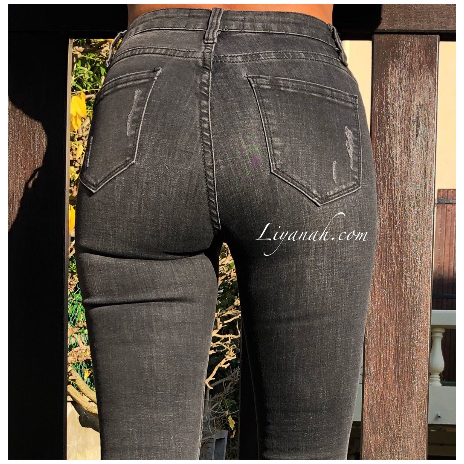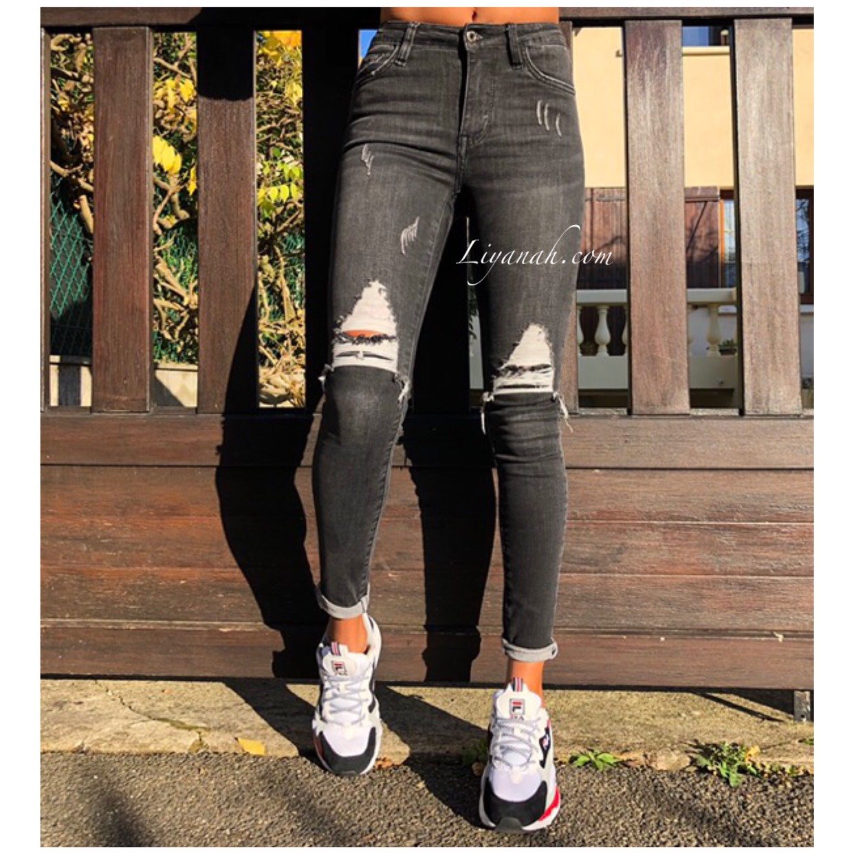 Jean Skinny Modèle YEBARA GREY/BLACK DESTROY
