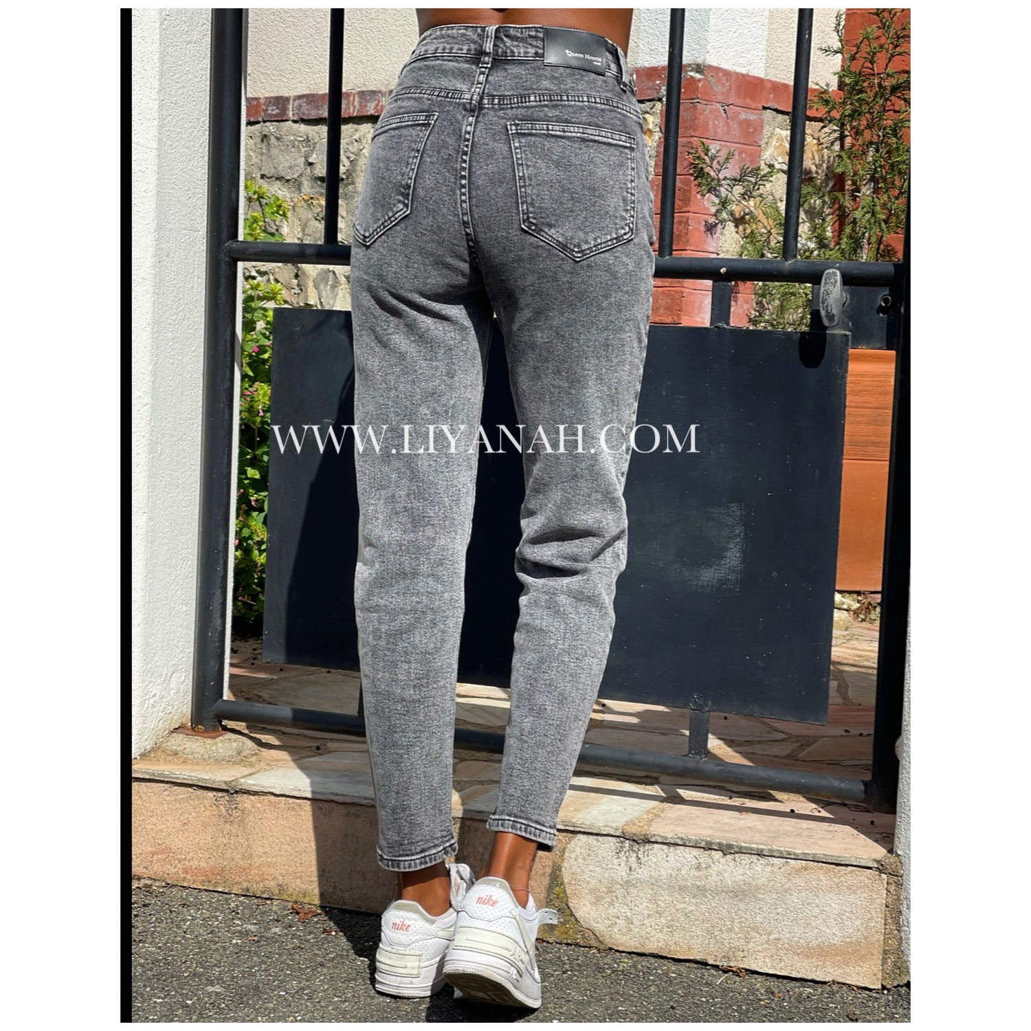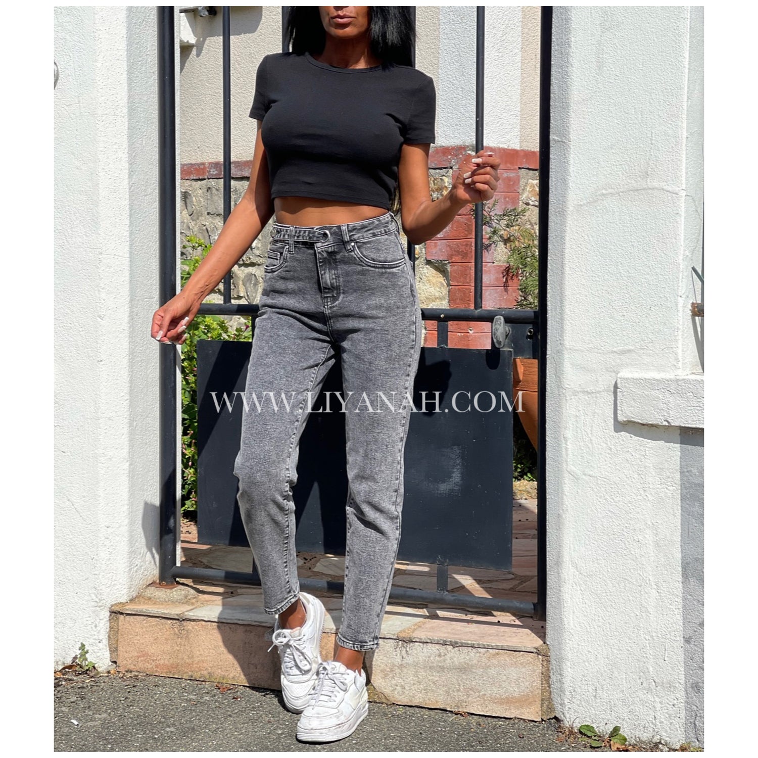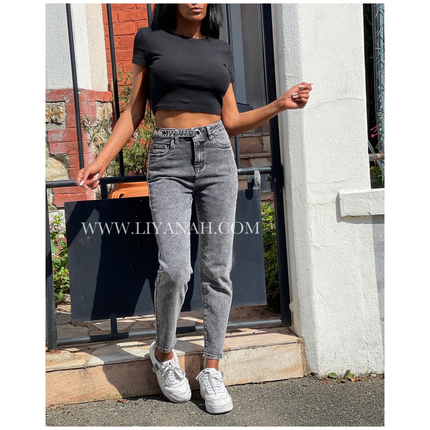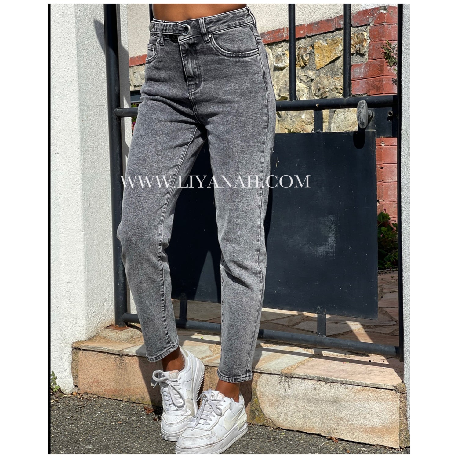 Jean coupe slim, près du corps puis légèrement évasée et droite, fermeture bouton et sangle, couleur gris délavé - SLIM FIT ACID WASH - 98% Coton 2% Elasthanne - Taille haute - Du XS au XL
