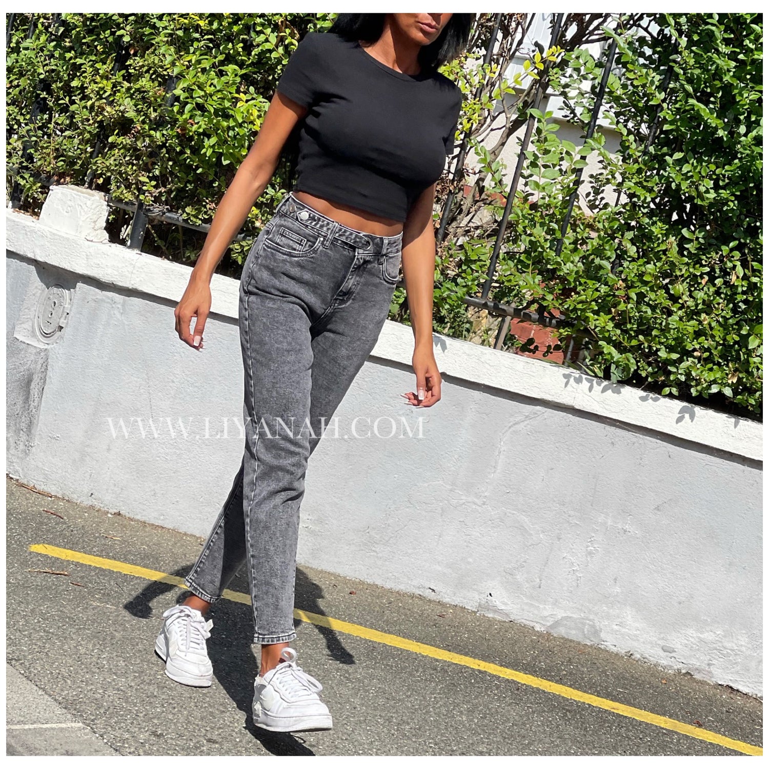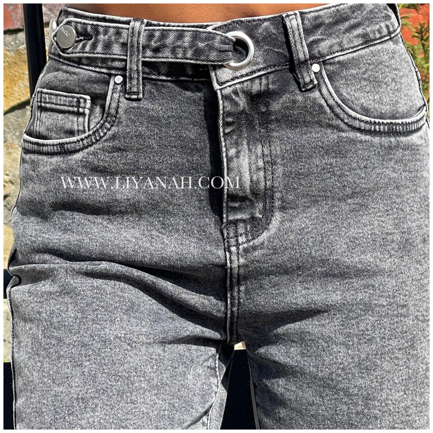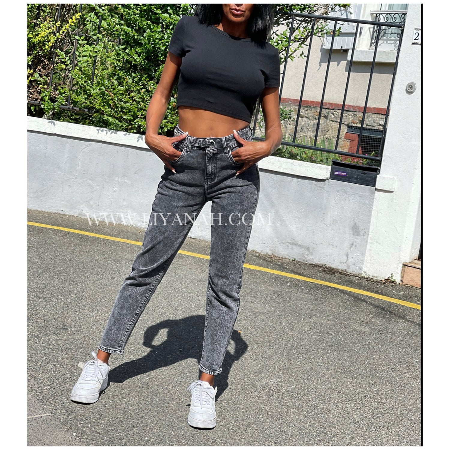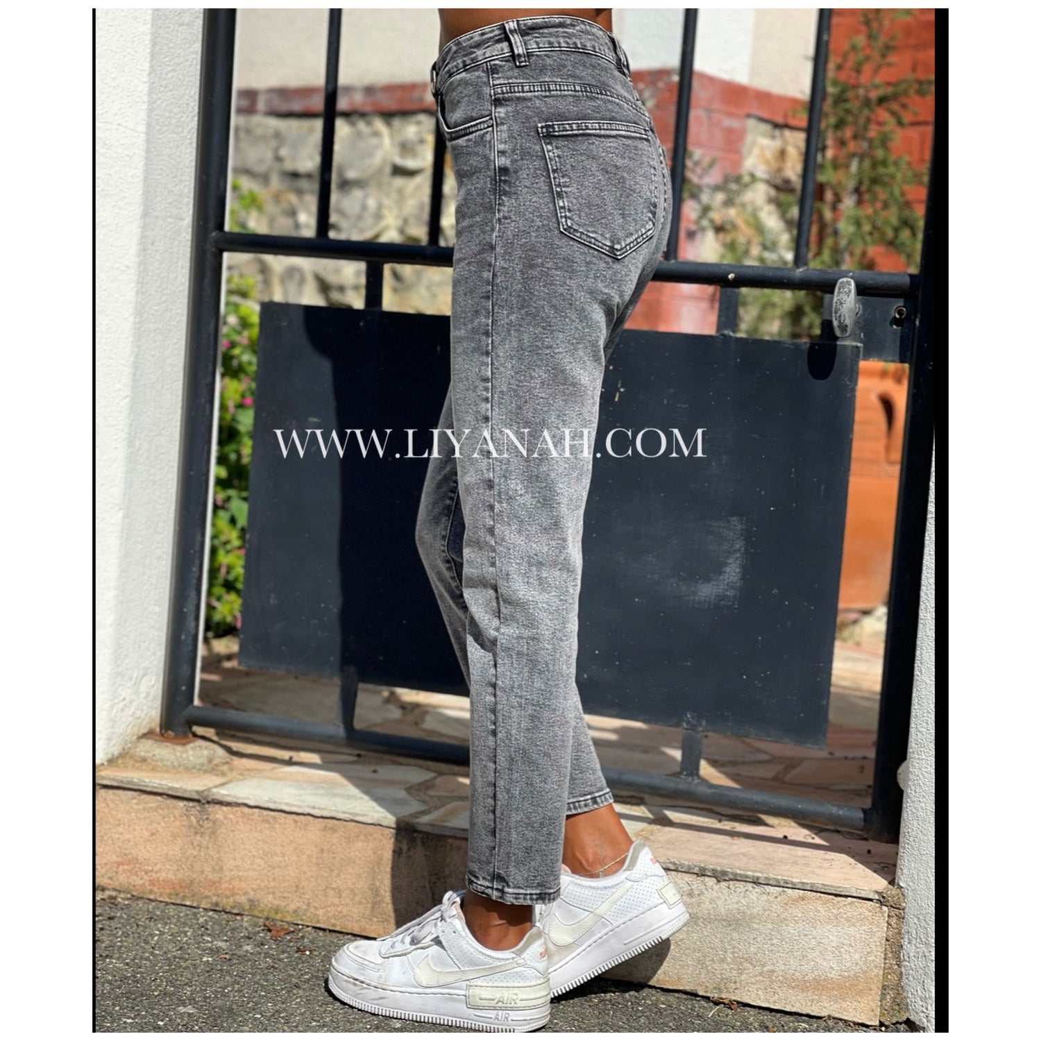 Jean coupe slim, près du corps puis légèrement évasée et droite, fermeture bouton et sangle, couleur gris délavé - SLIM FIT ACID WASH - 98% Coton 2% Elasthanne - Taille haute - Du XS au XL