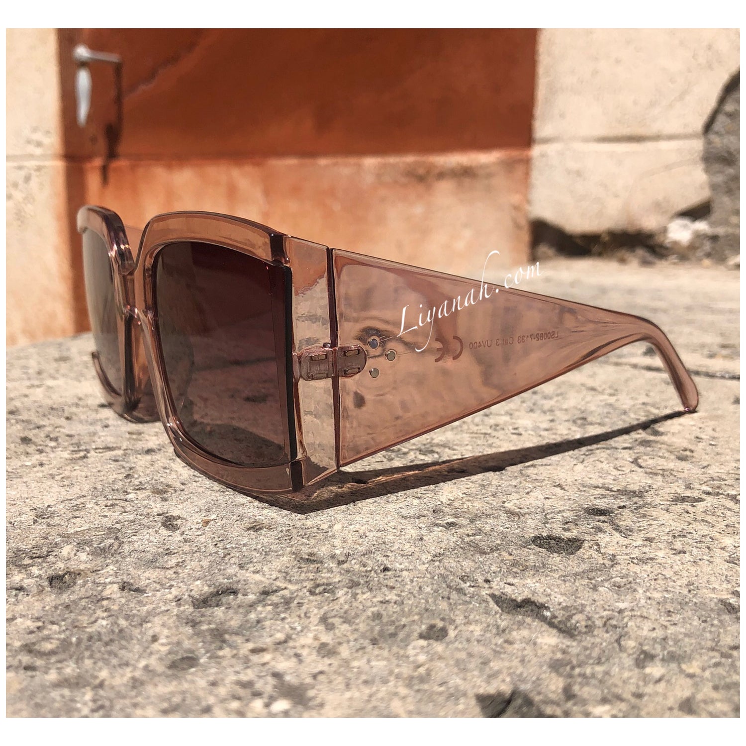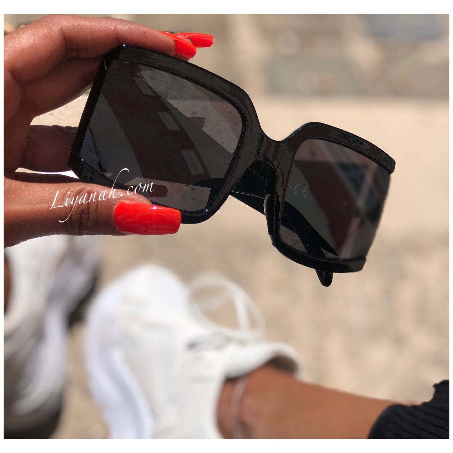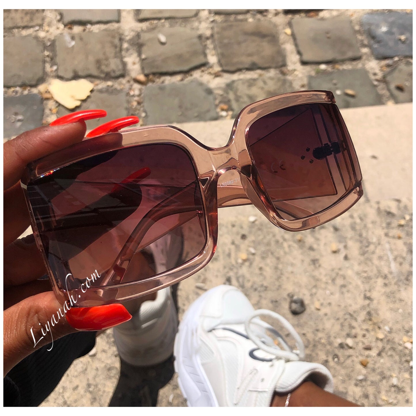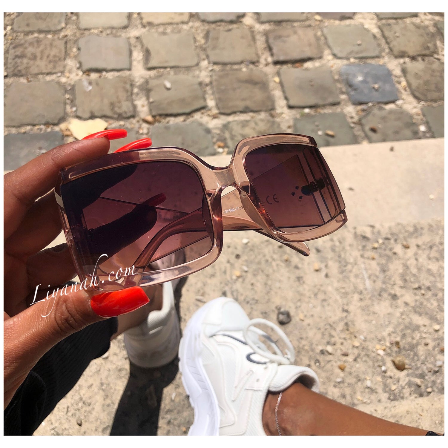 LUNETTES DE SOLEIL À MONTURE CARRÉE ET BORD SUPÉRIEUR Arrondie. Détails vice visible sur les côtes - GROSSE LUNETTE !!! Protection UV Longueur des branches : 15 cm Largeur des verres : 6,5 cm Longueur du Front : 14 cm - VENDUE AVEC UN ÉTUI Noir SOUPLE ET FLUIDE À NOEUDS *Ni repris ni échangé